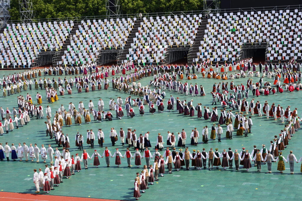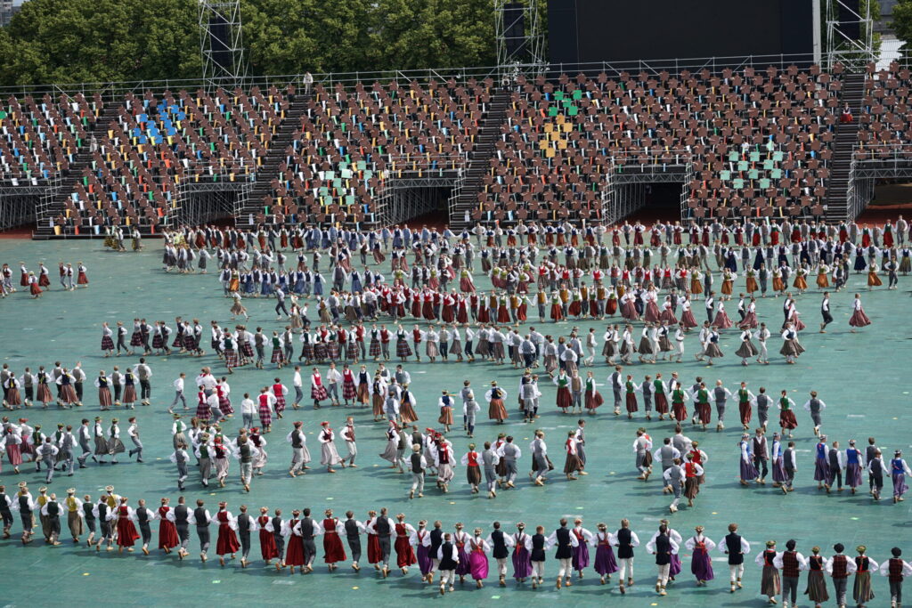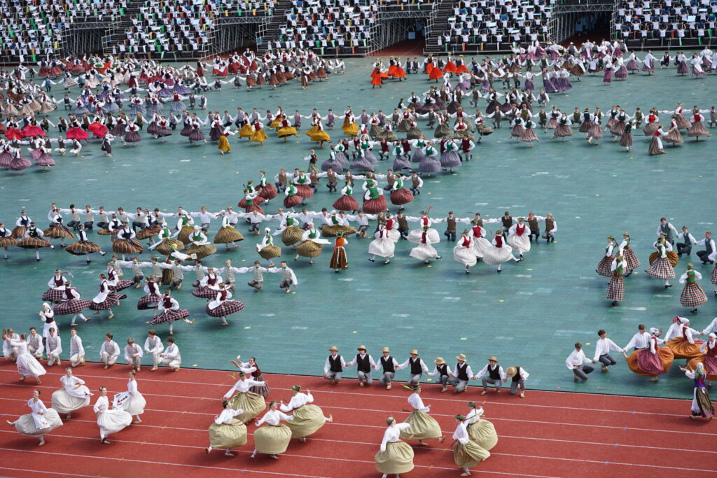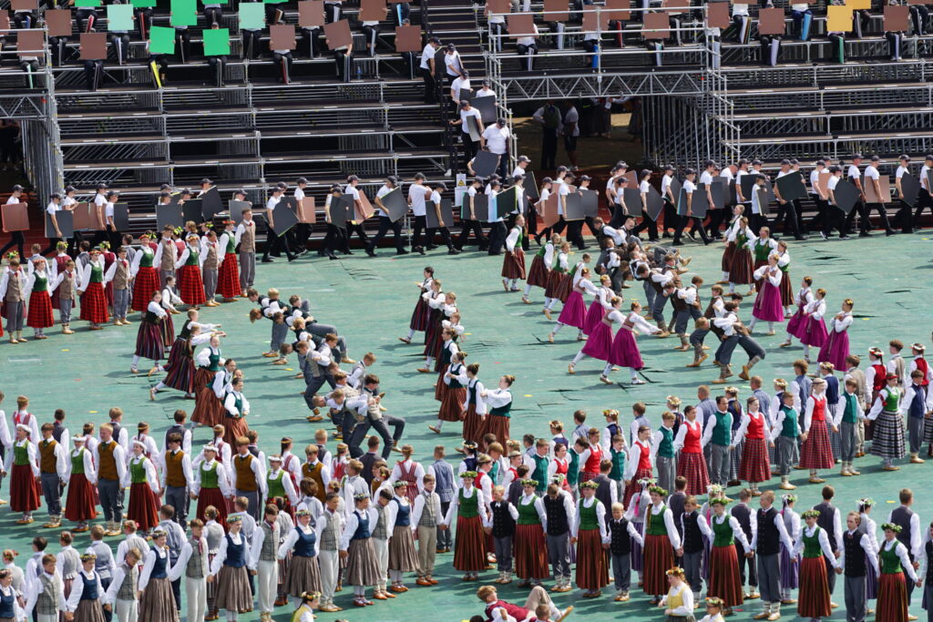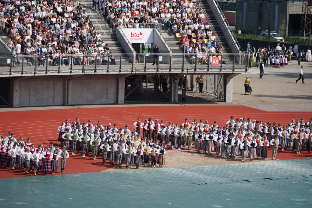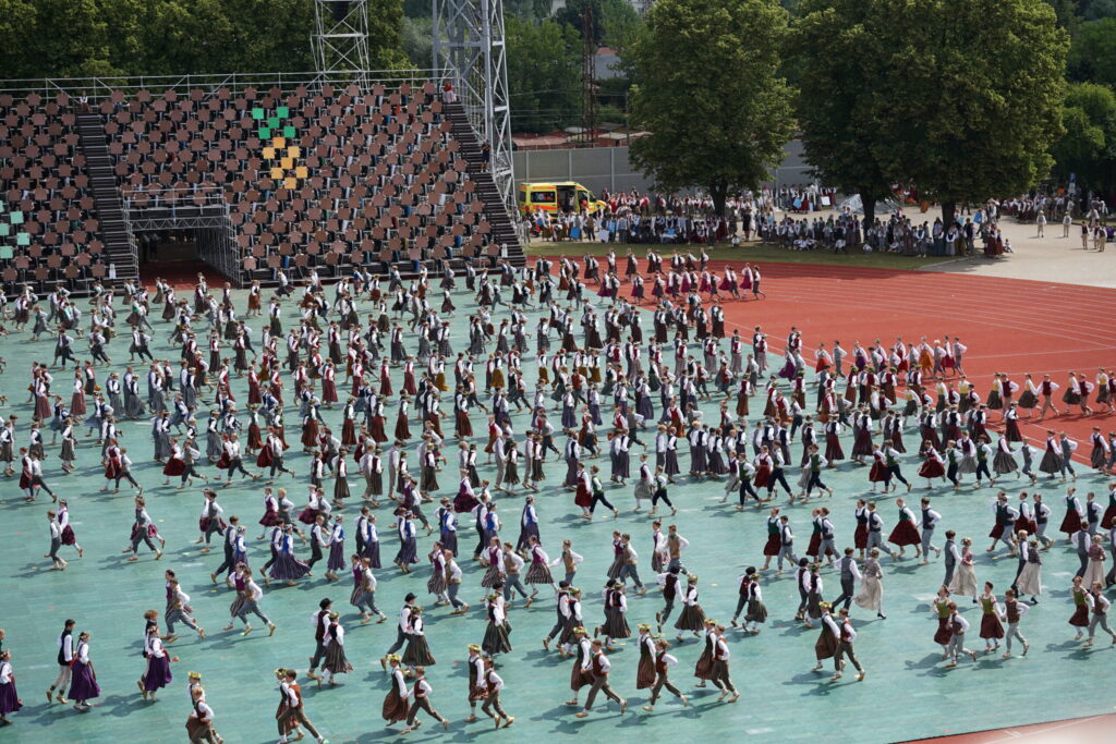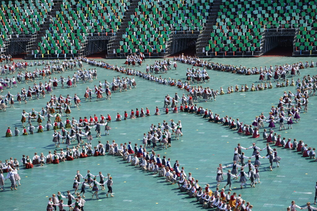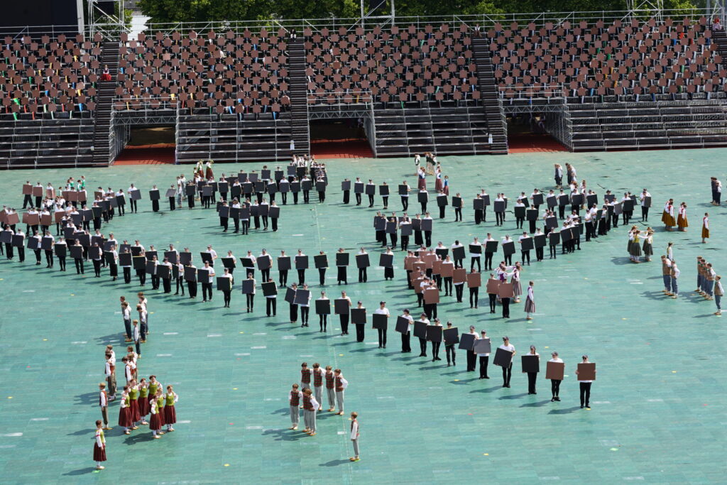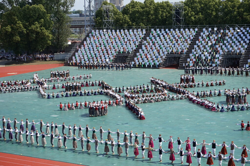 Deju lielkoncerta “Es atvēru Laimas dārzu” ģenerālmēģinājums Daugavas stadionā.