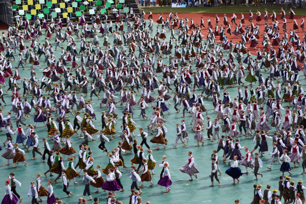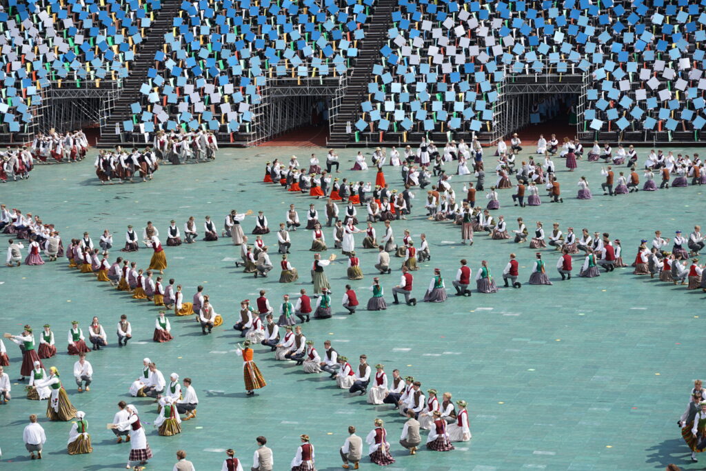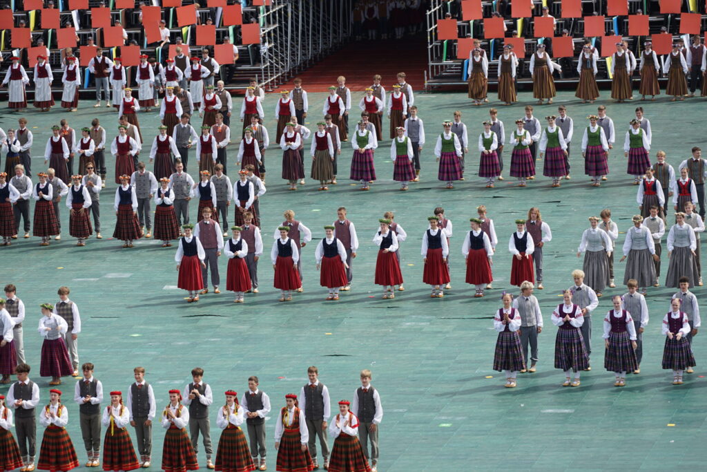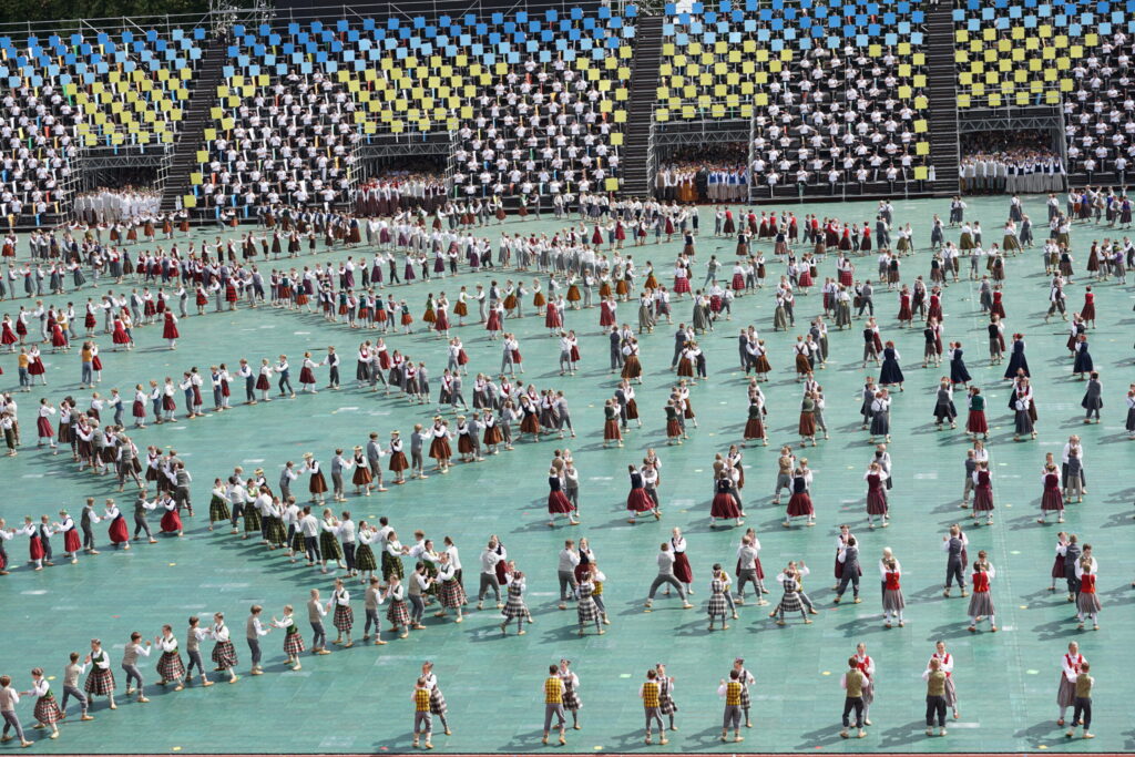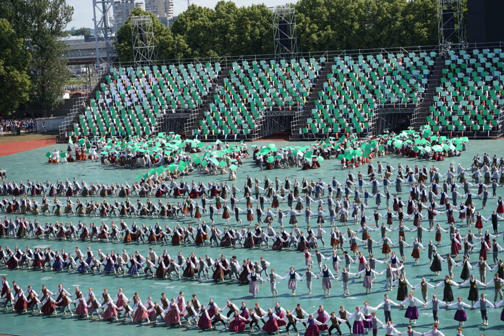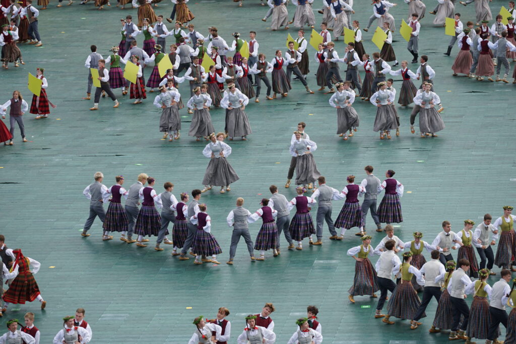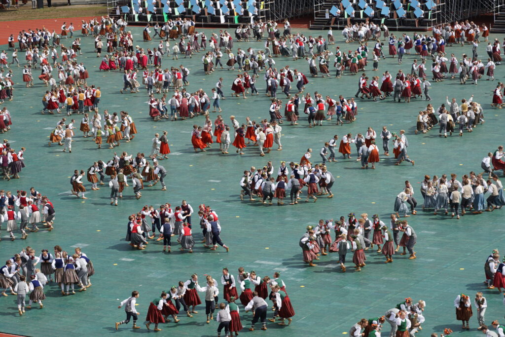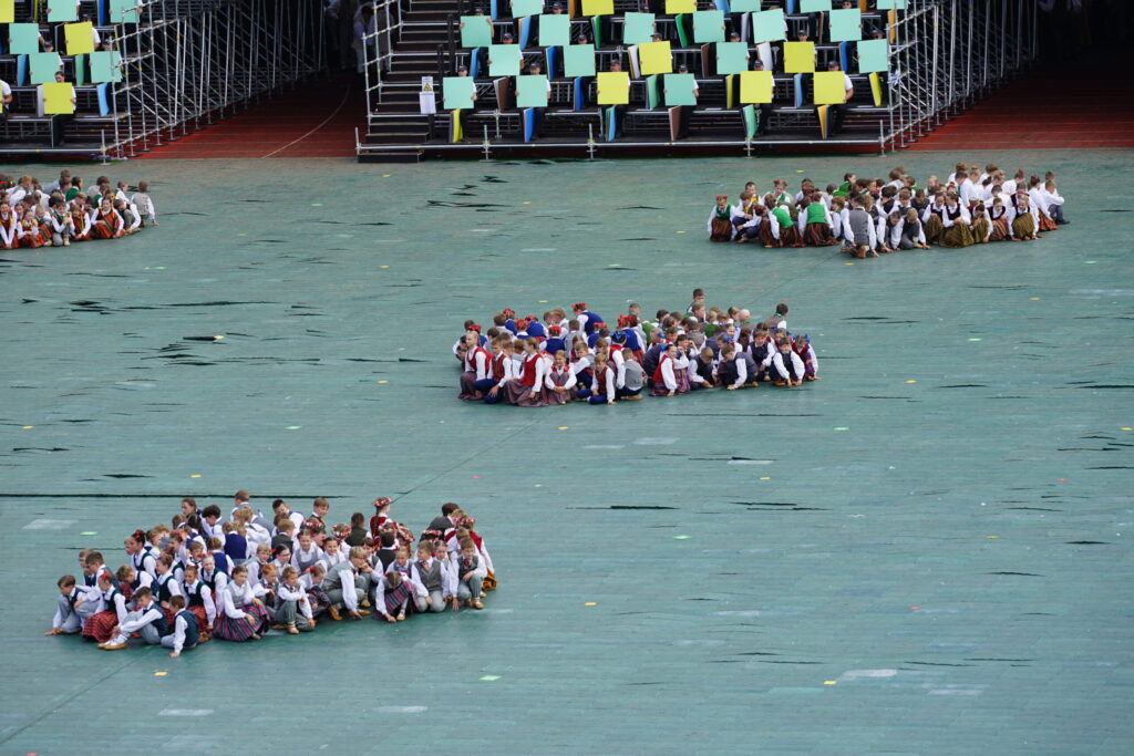 Deju lielkoncerta “Es atvēru Laimas dārzu” ģenerālmēģinājums Daugavas stadionā.