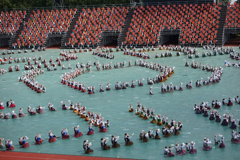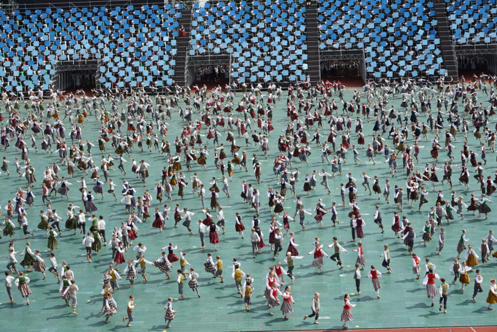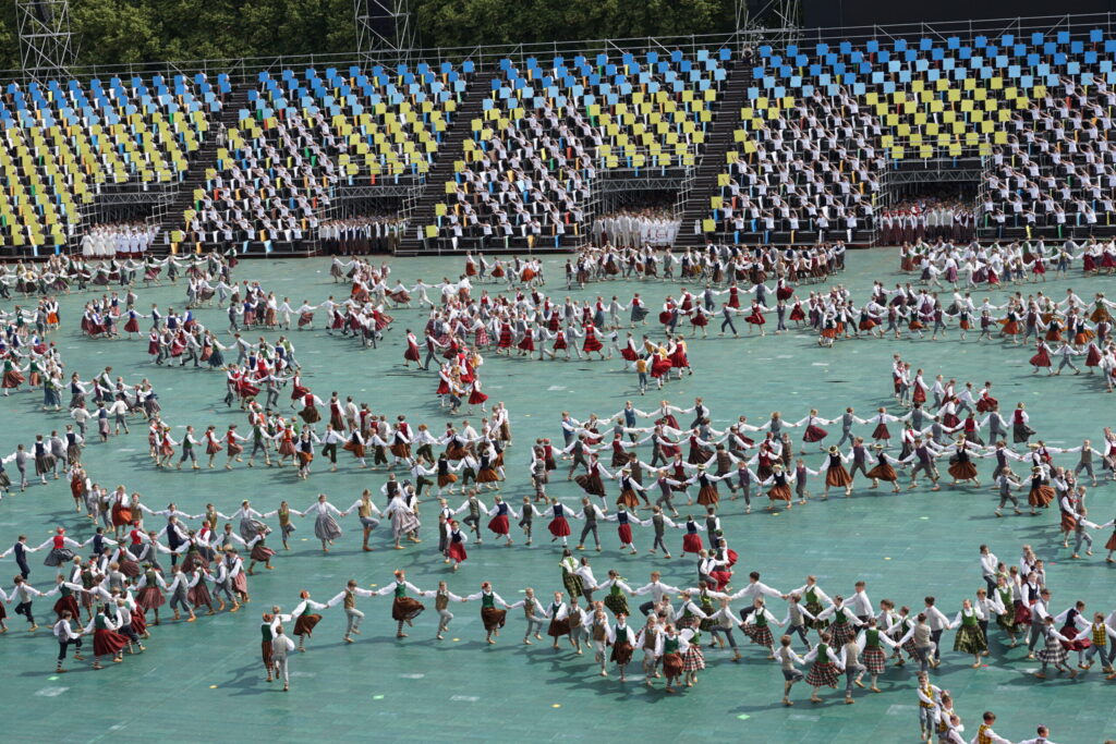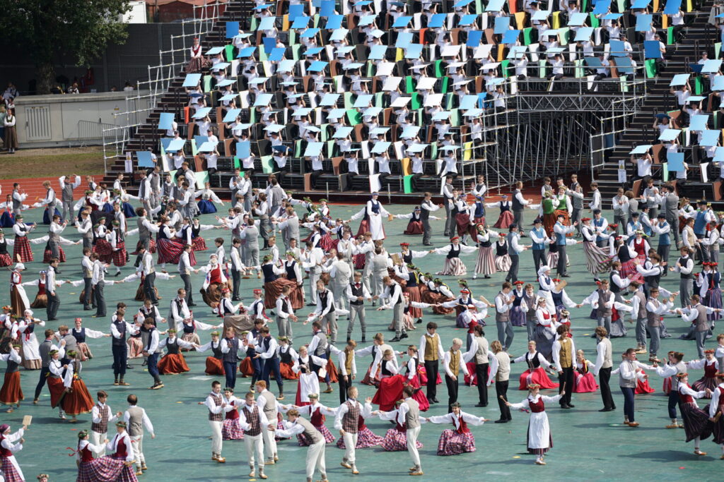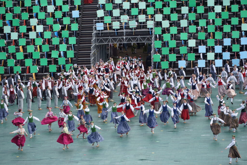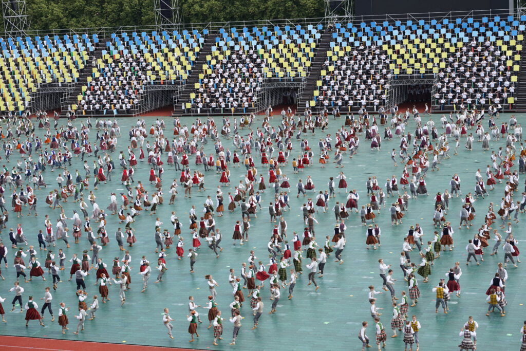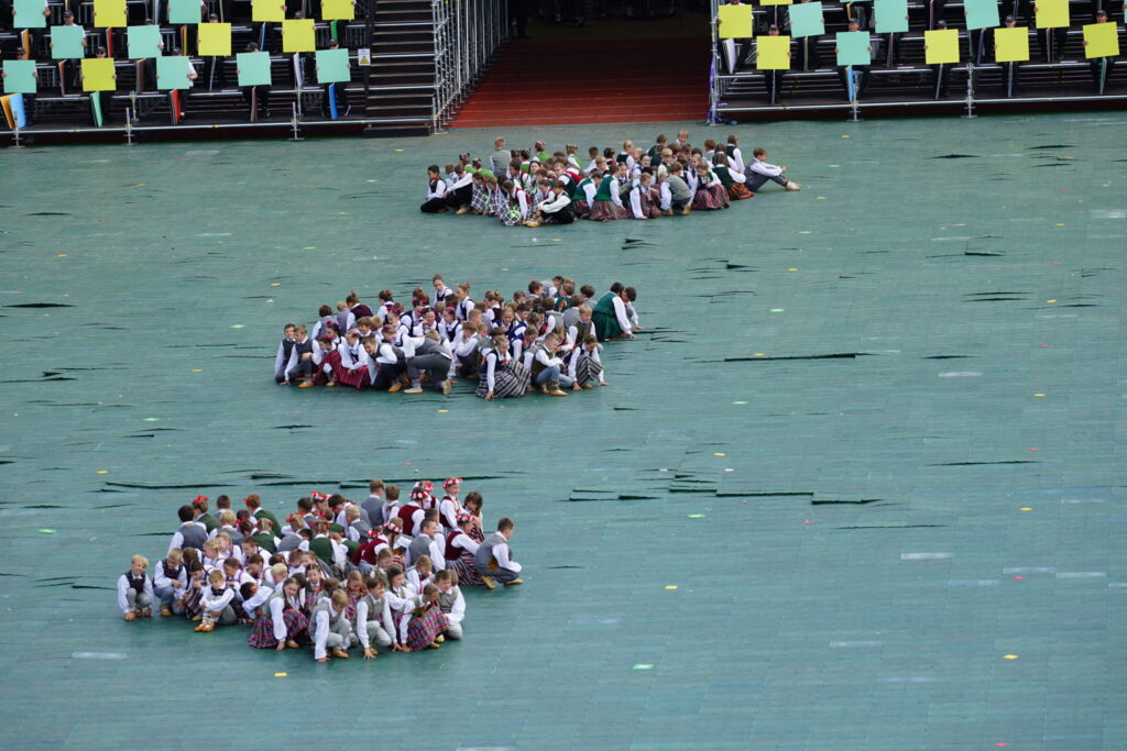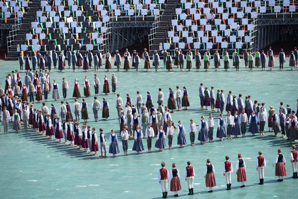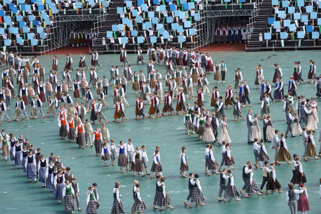 Deju lielkoncerta “Es atvēru Laimas dārzu” ģenerālmēģinājums Daugavas stadionā.