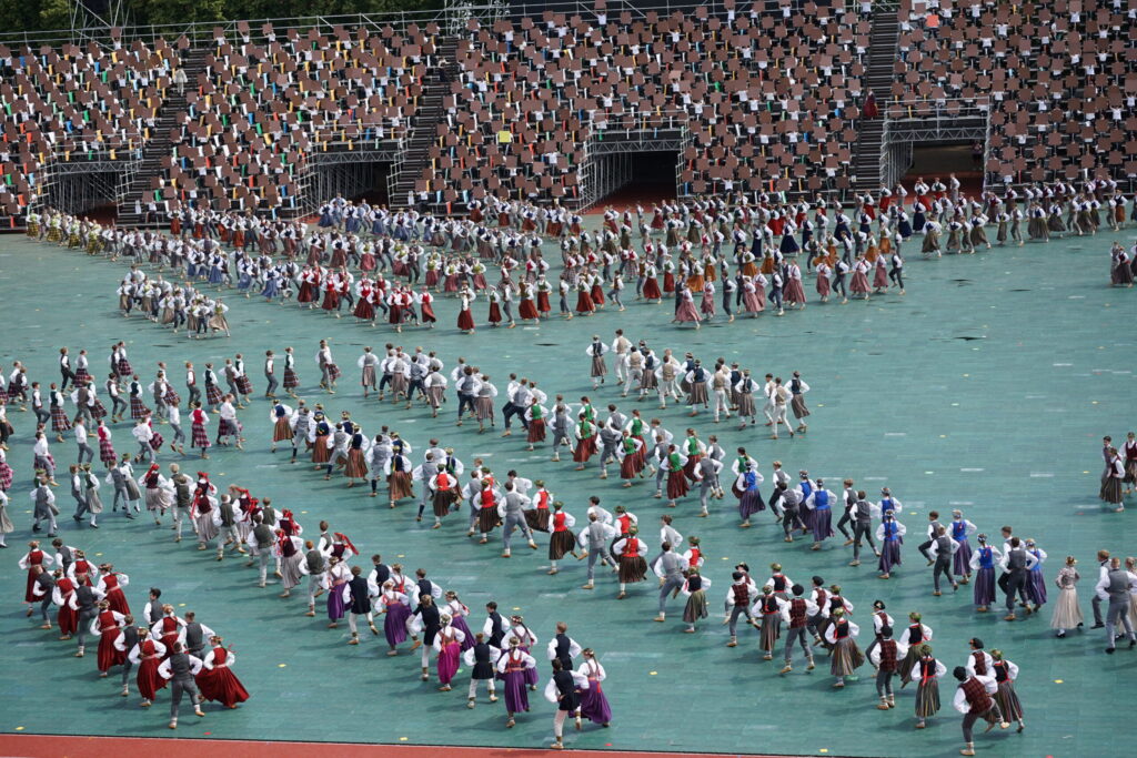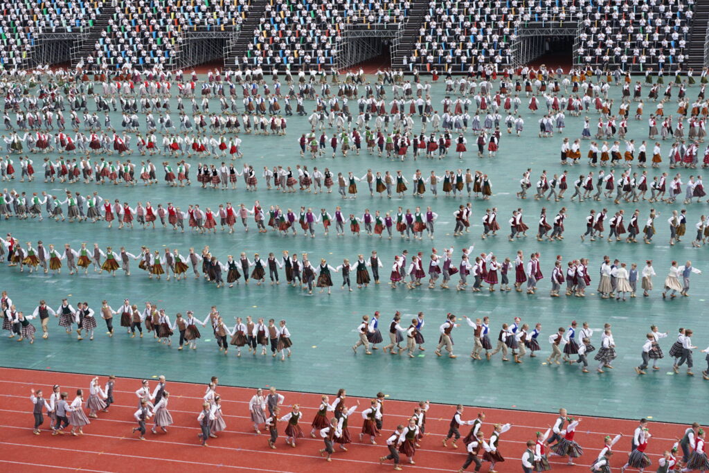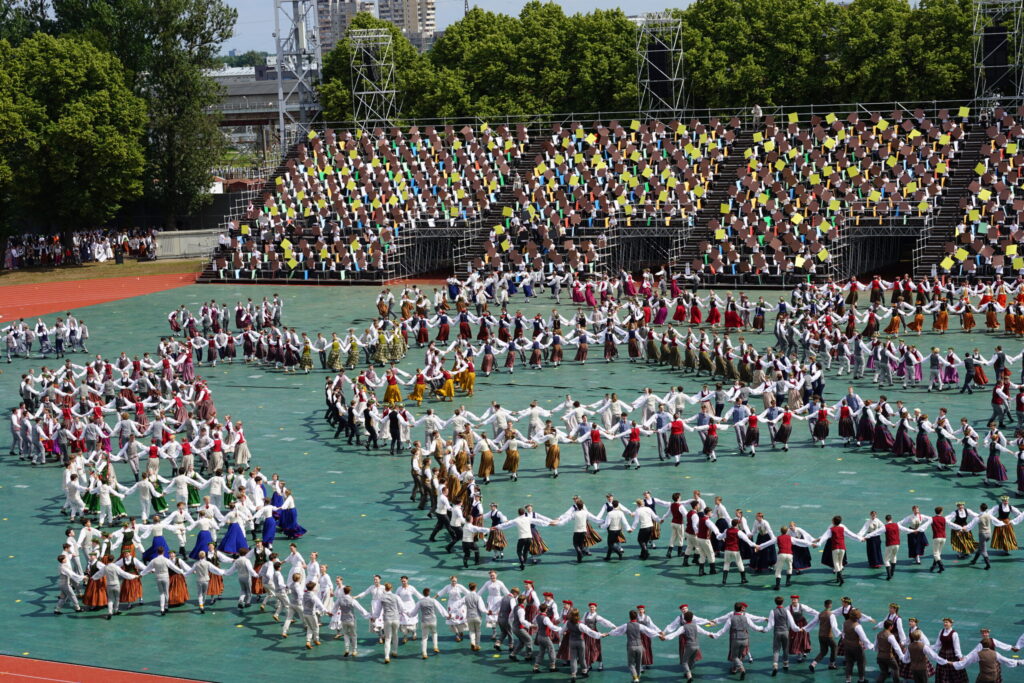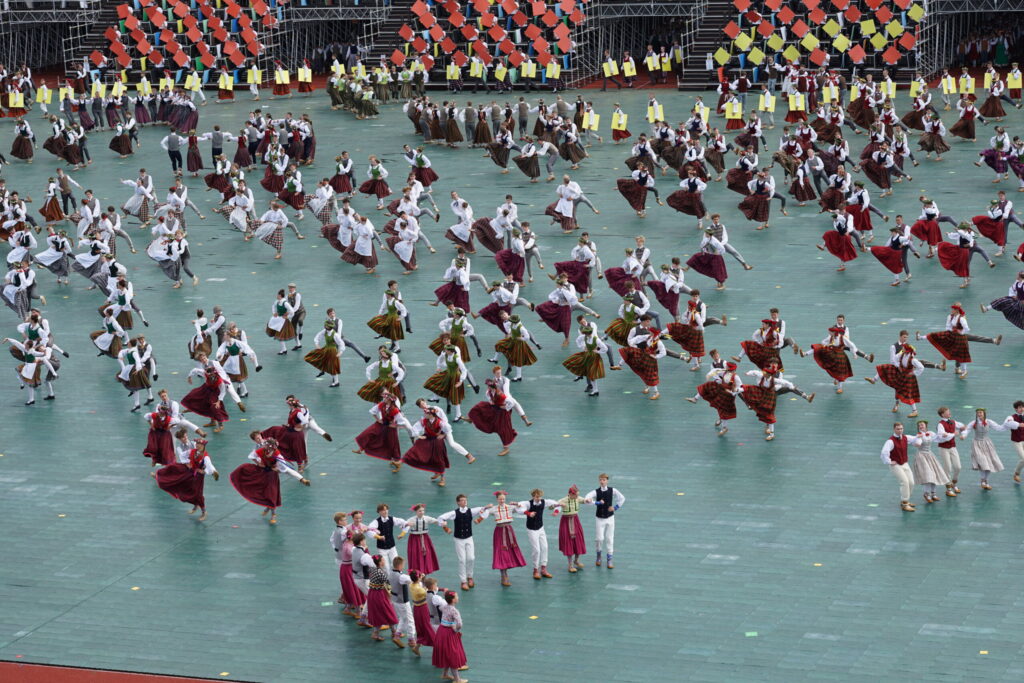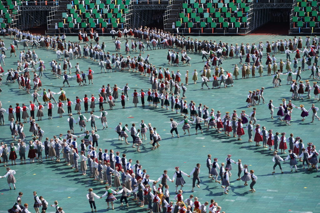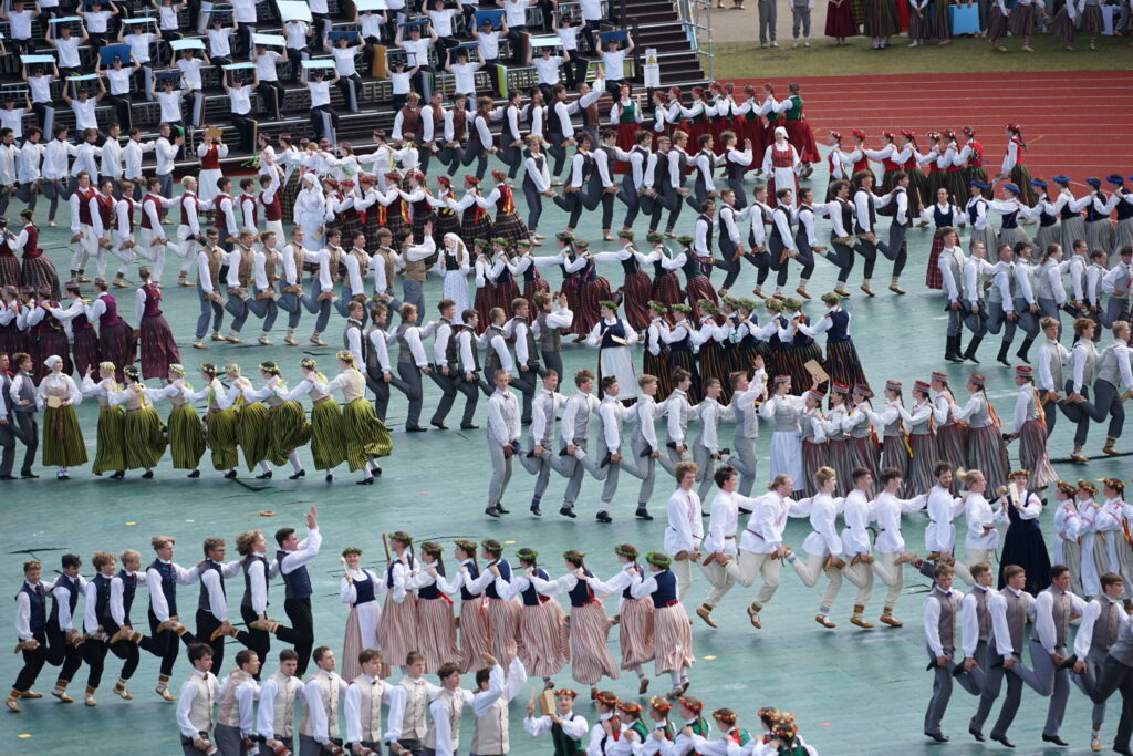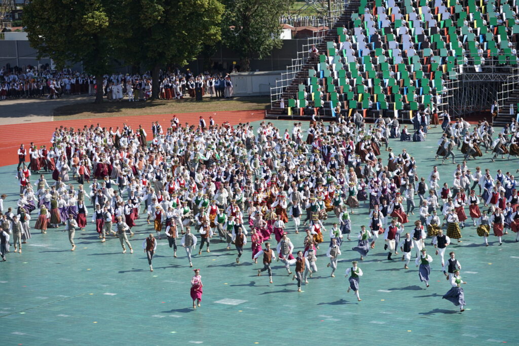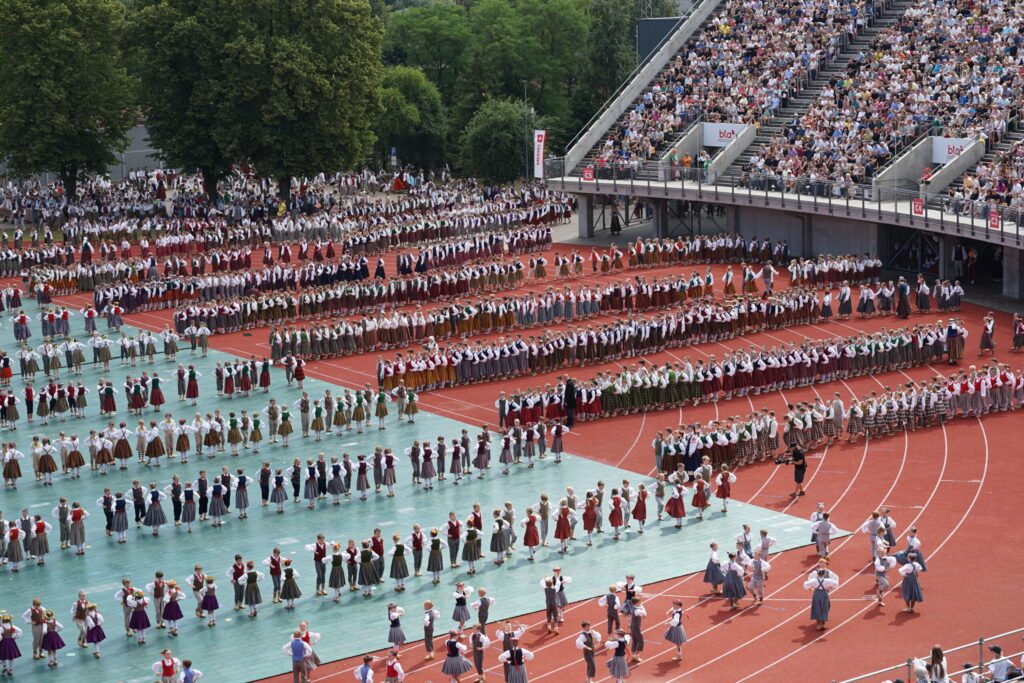 Deju lielkoncerta “Es atvēru Laimas dārzu” ģenerālmēģinājums Daugavas stadionā.