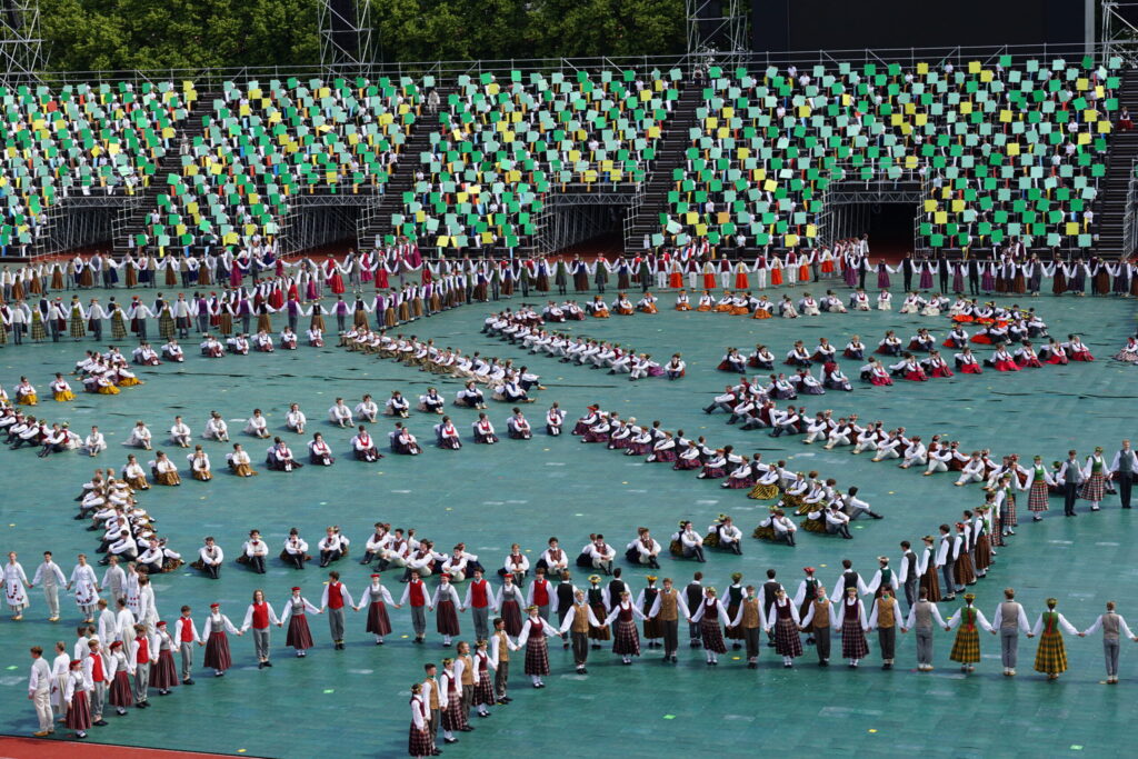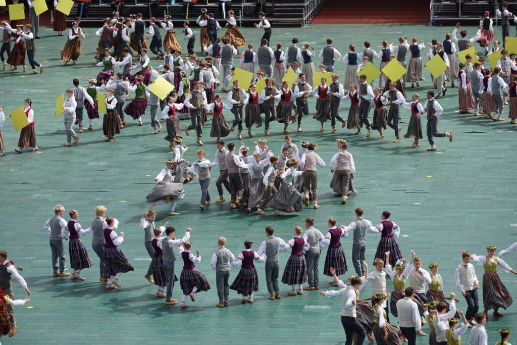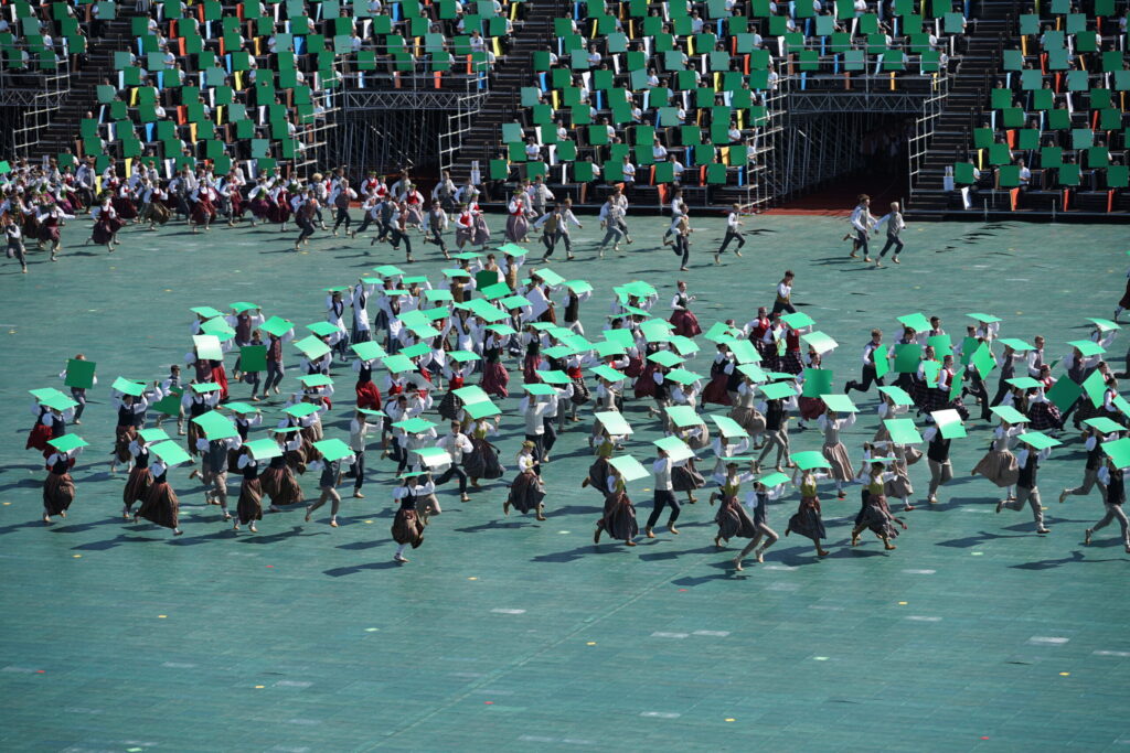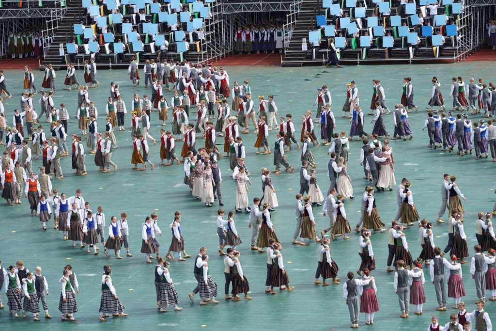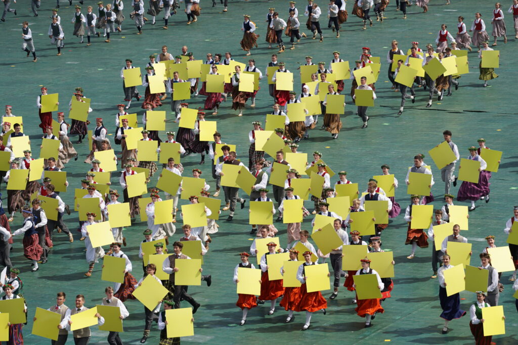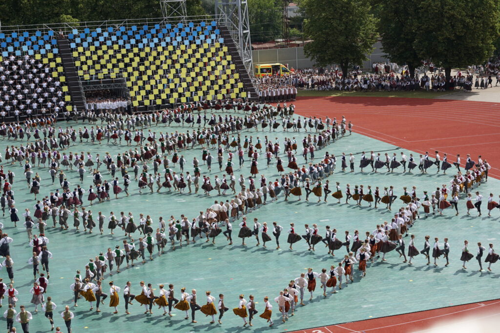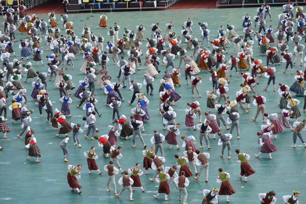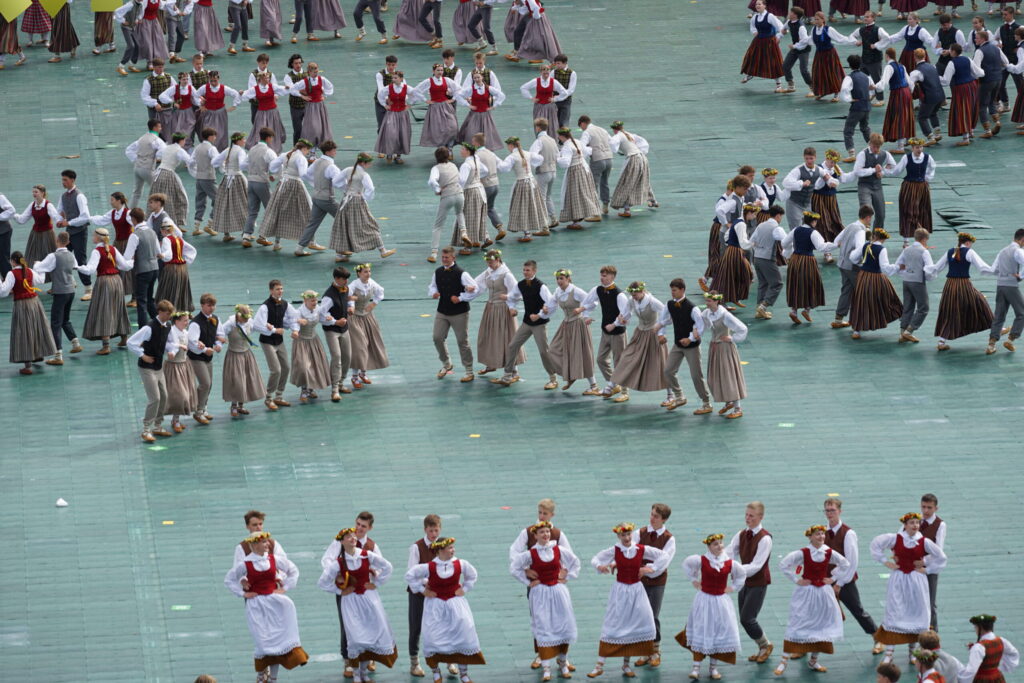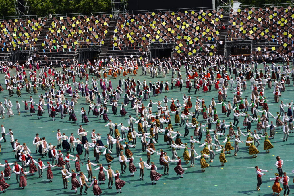 Deju lielkoncerta “Es atvēru Laimas dārzu” ģenerālmēģinājums Daugavas stadionā.