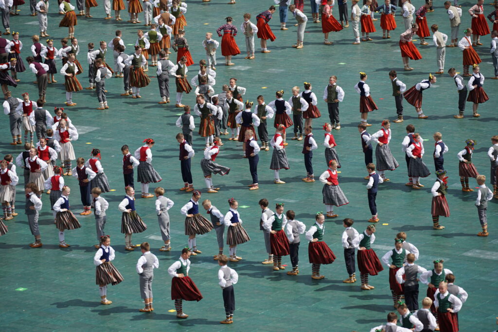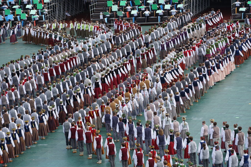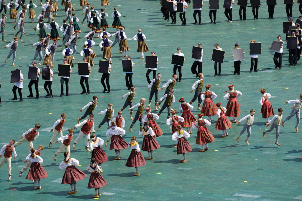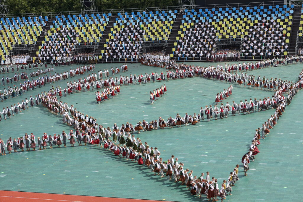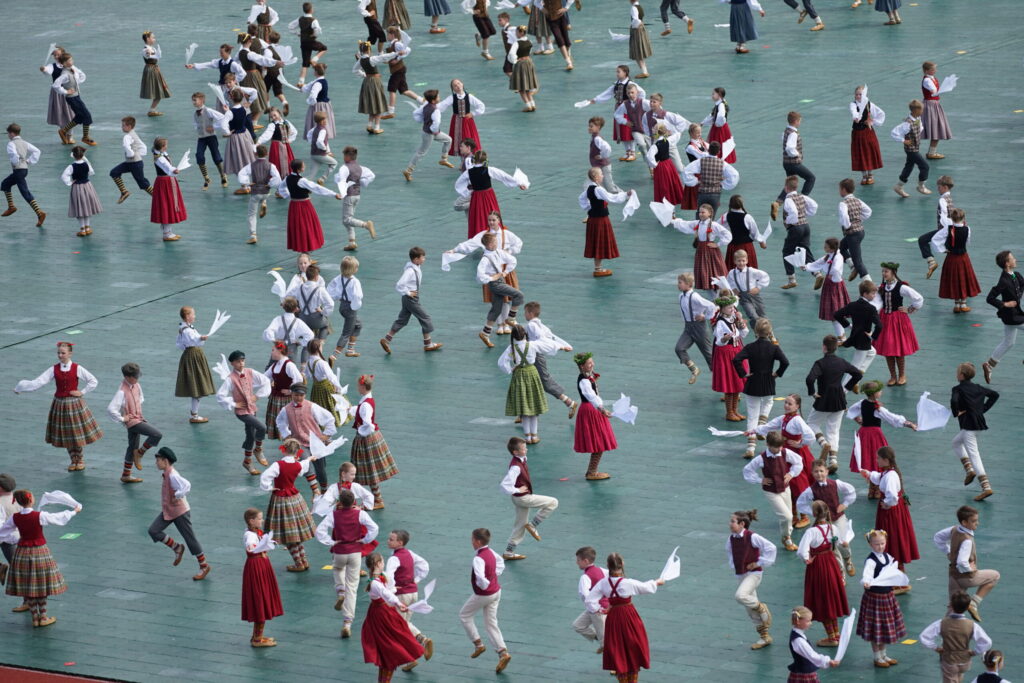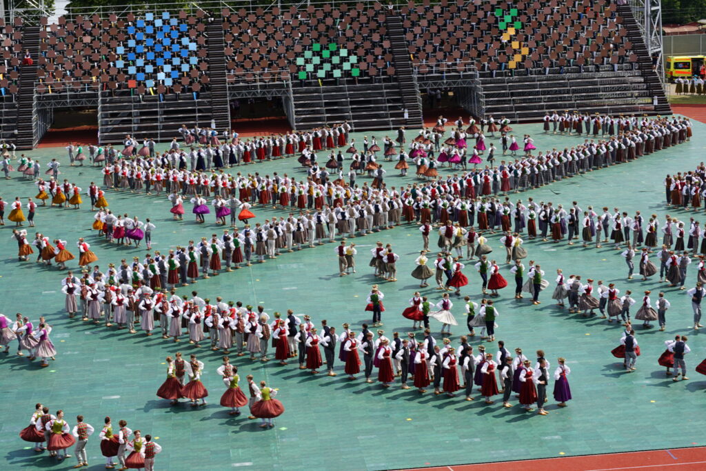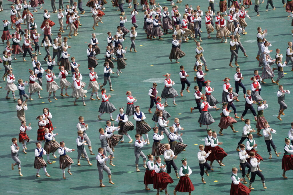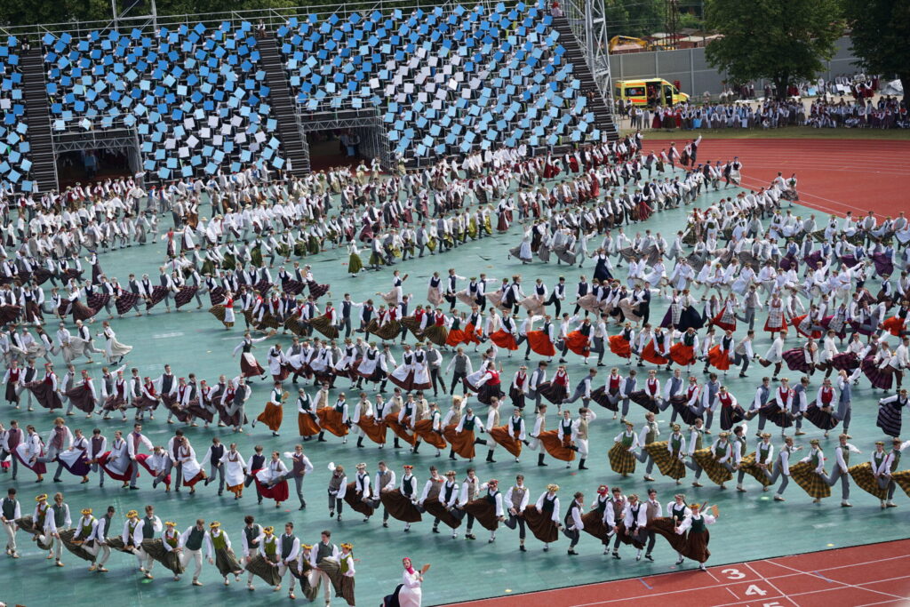 Deju lielkoncerta “Es atvēru Laimas dārzu” ģenerālmēģinājums Daugavas stadionā.