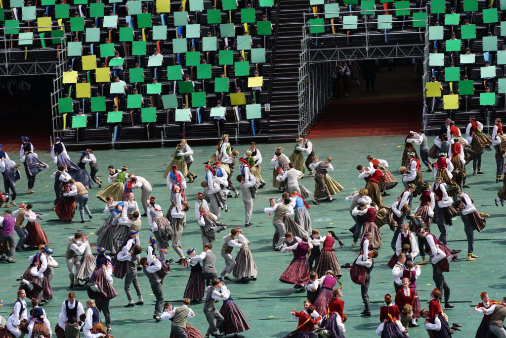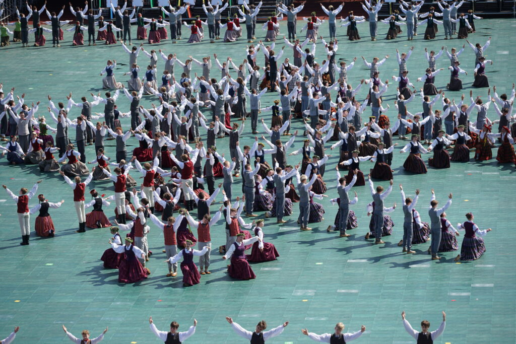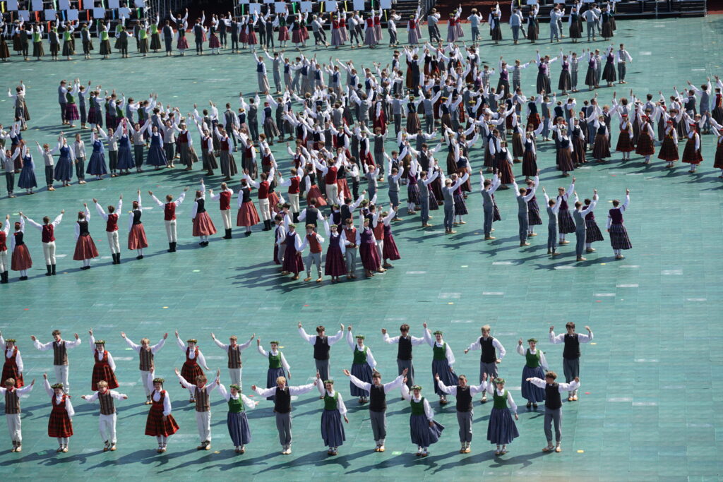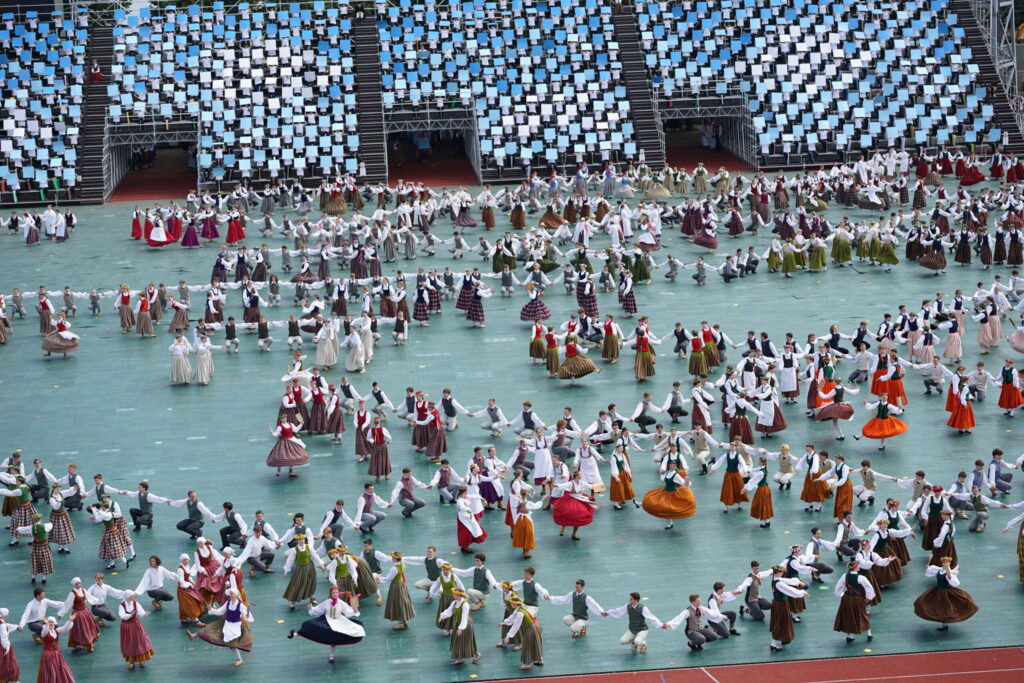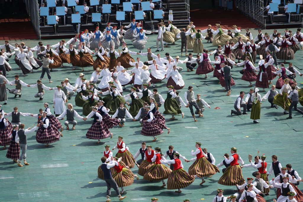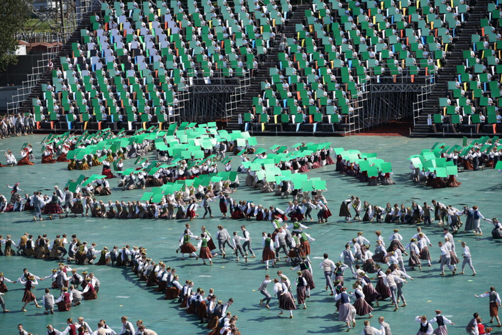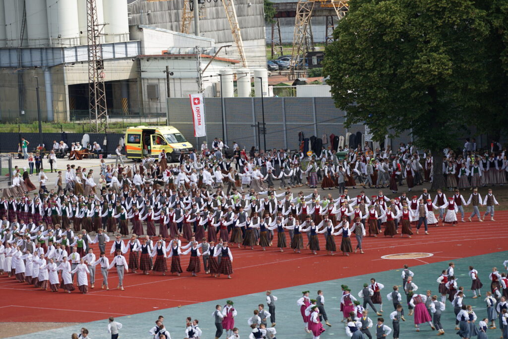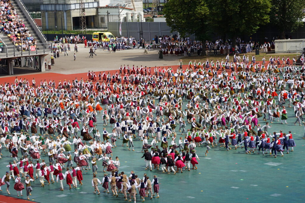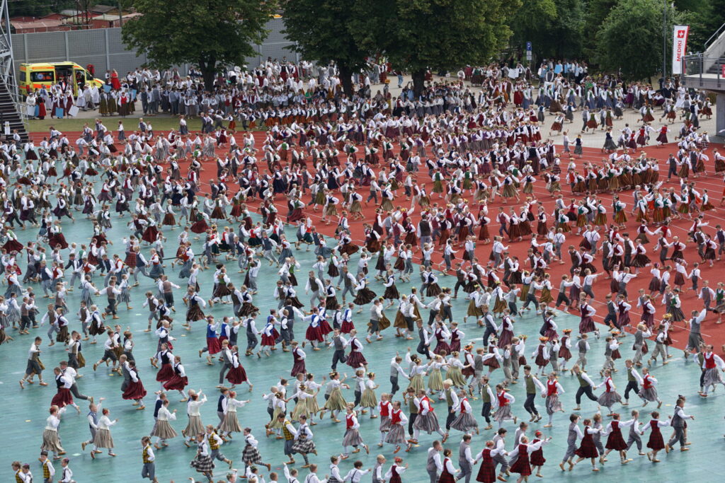 Deju lielkoncerta “Es atvēru Laimas dārzu” ģenerālmēģinājums Daugavas stadionā.