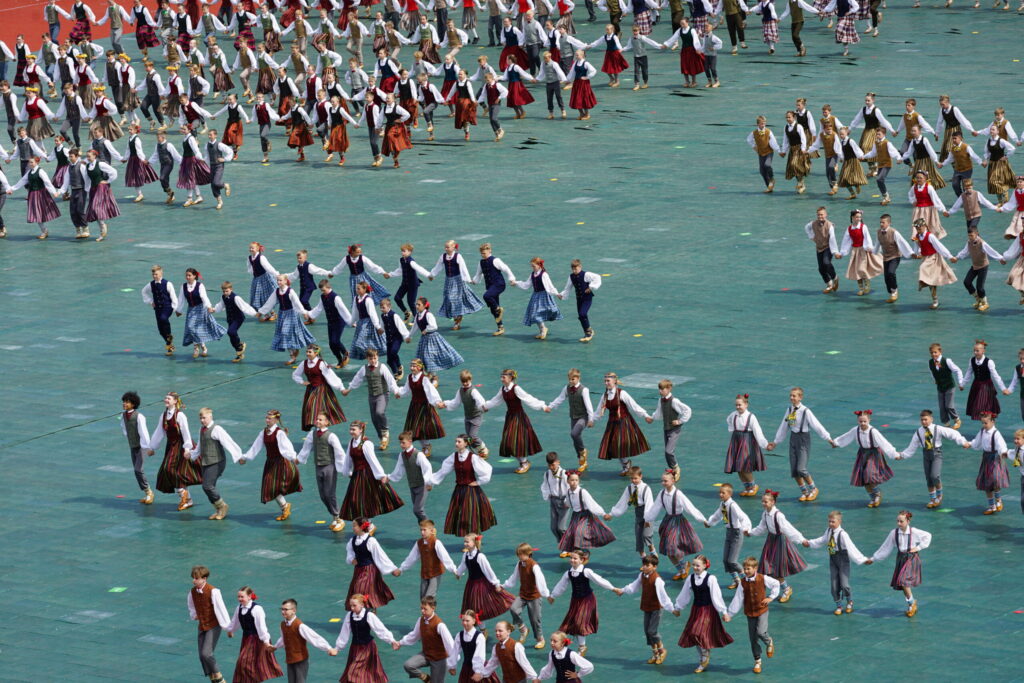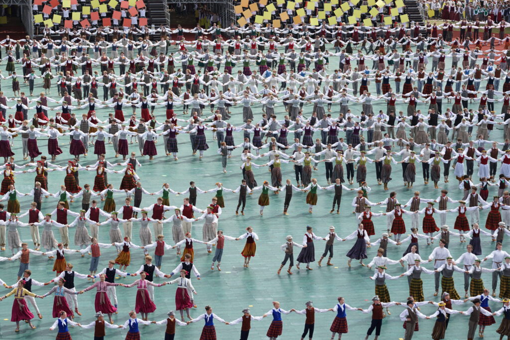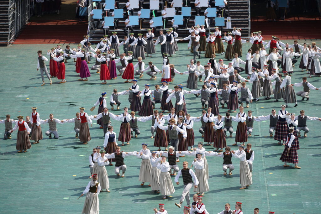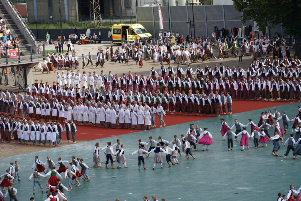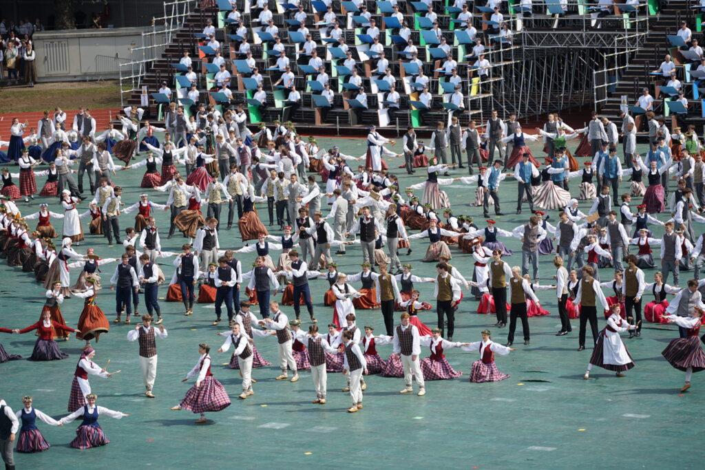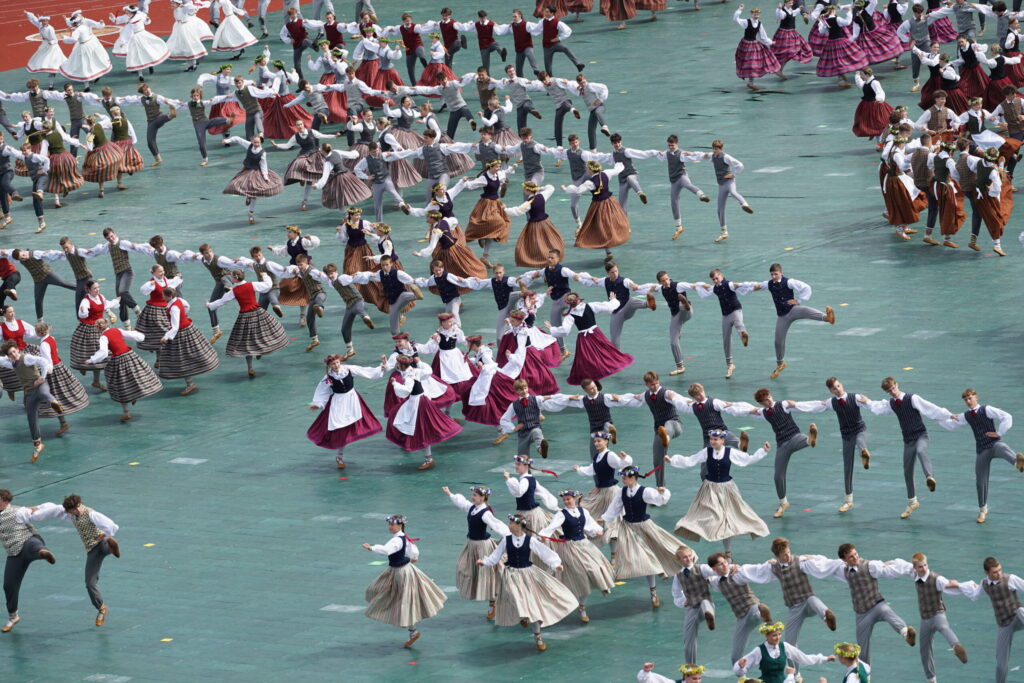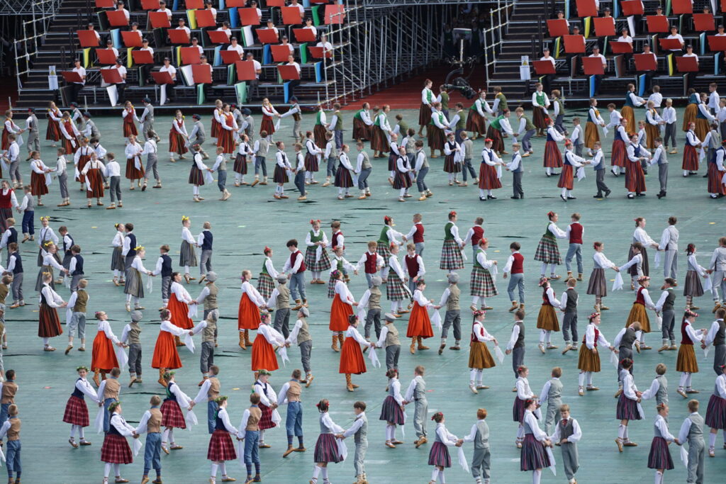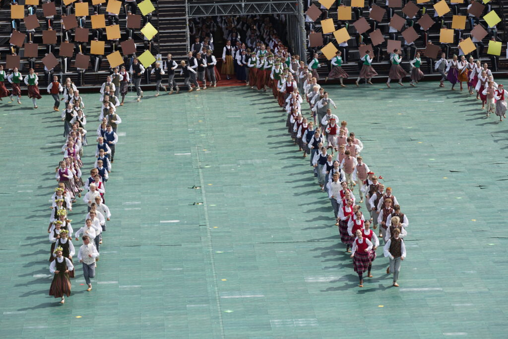 Deju lielkoncerta “Es atvēru Laimas dārzu” ģenerālmēģinājums Daugavas stadionā.