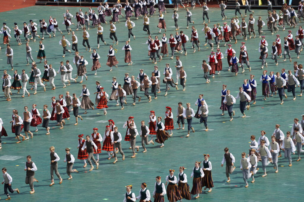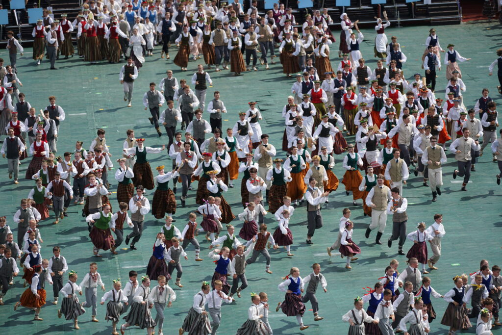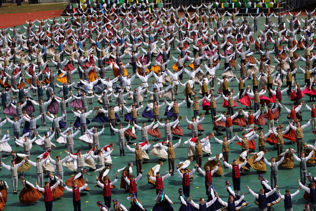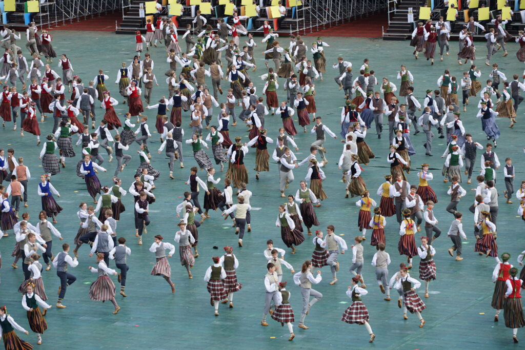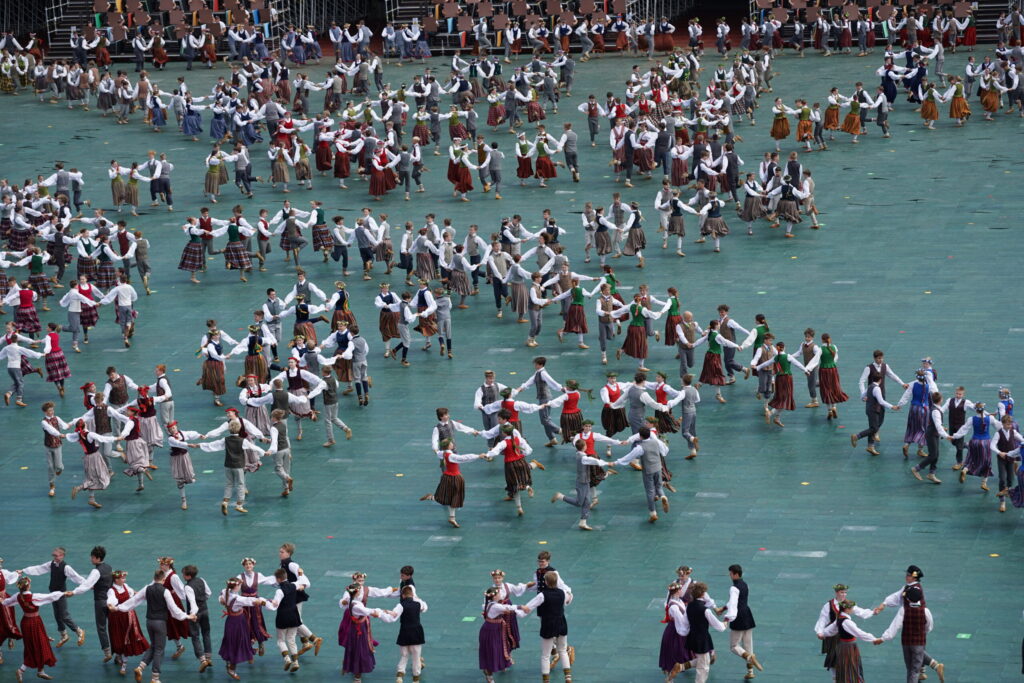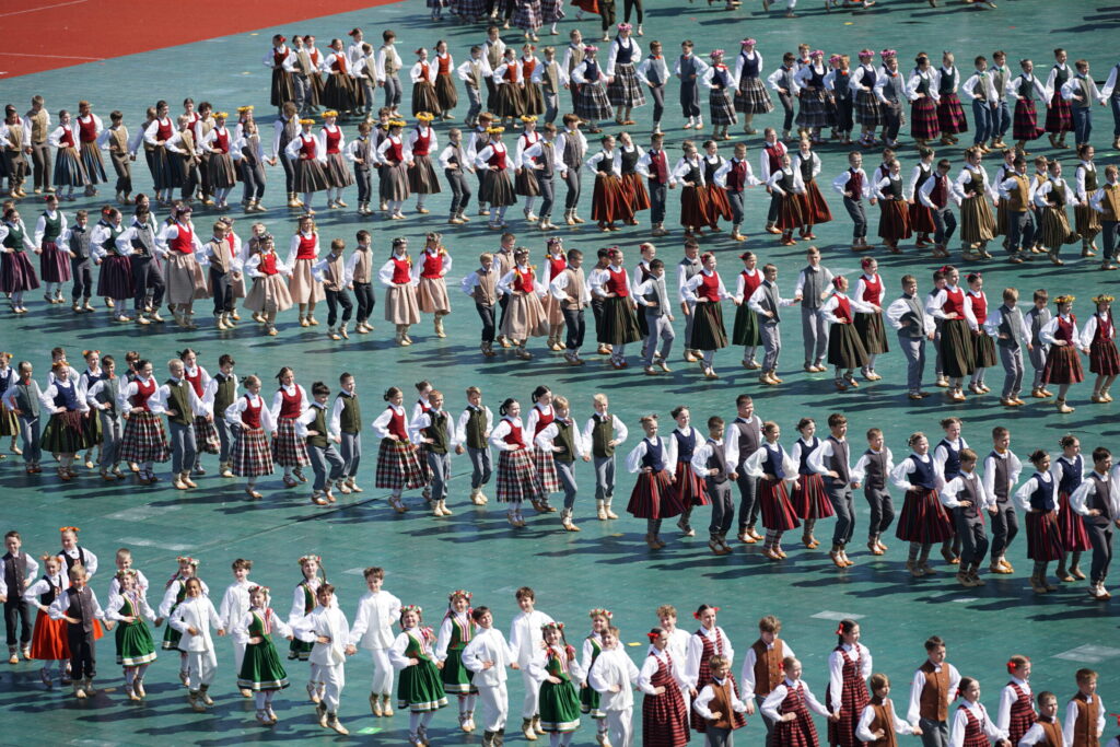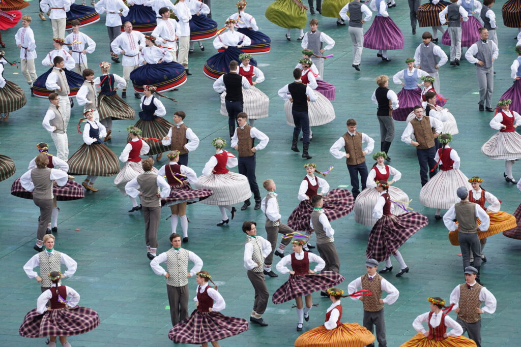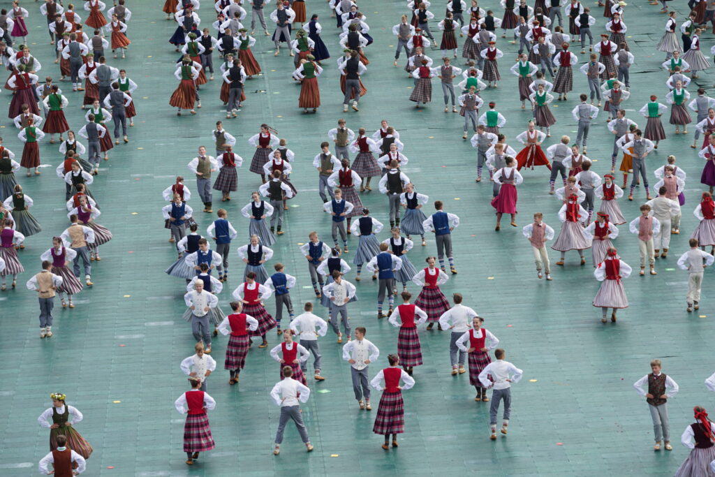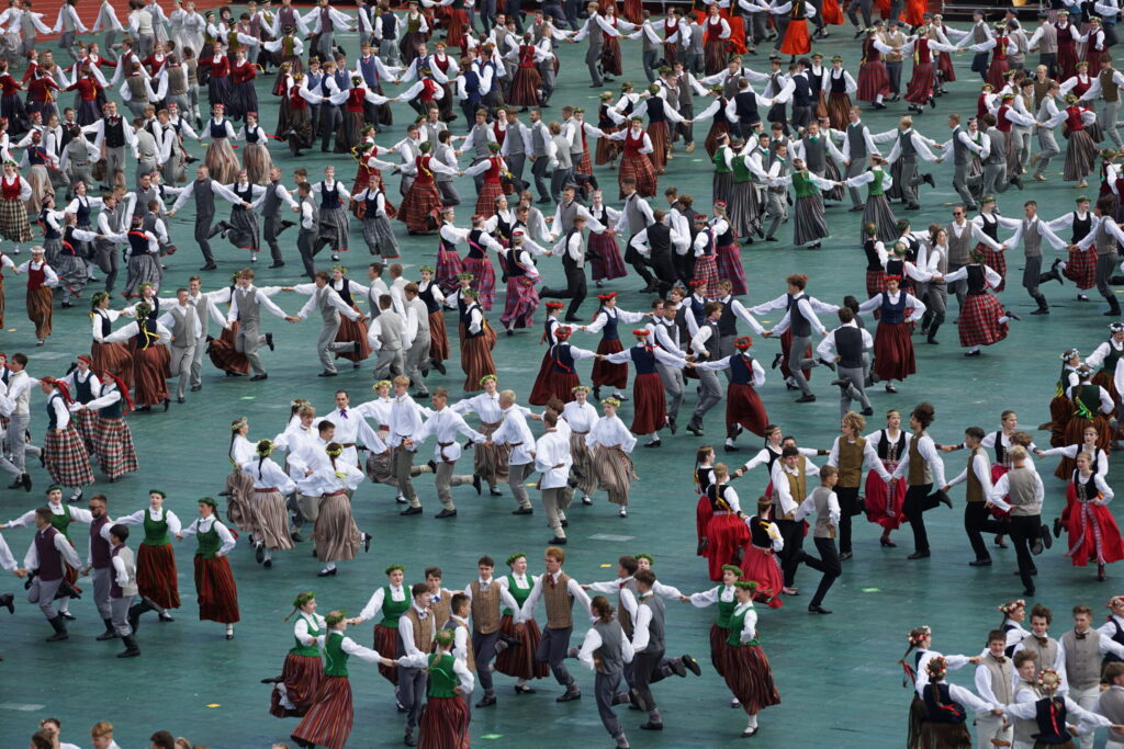 Deju lielkoncerta “Es atvēru Laimas dārzu” ģenerālmēģinājums Daugavas stadionā.