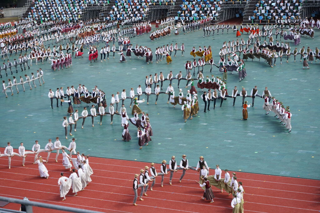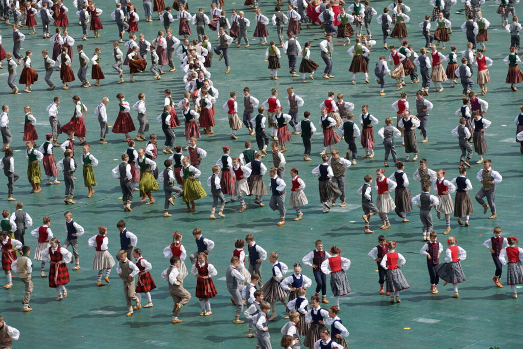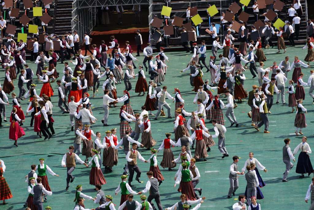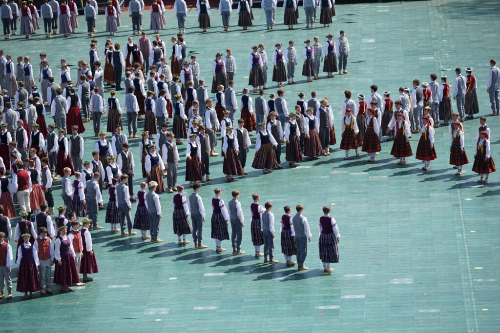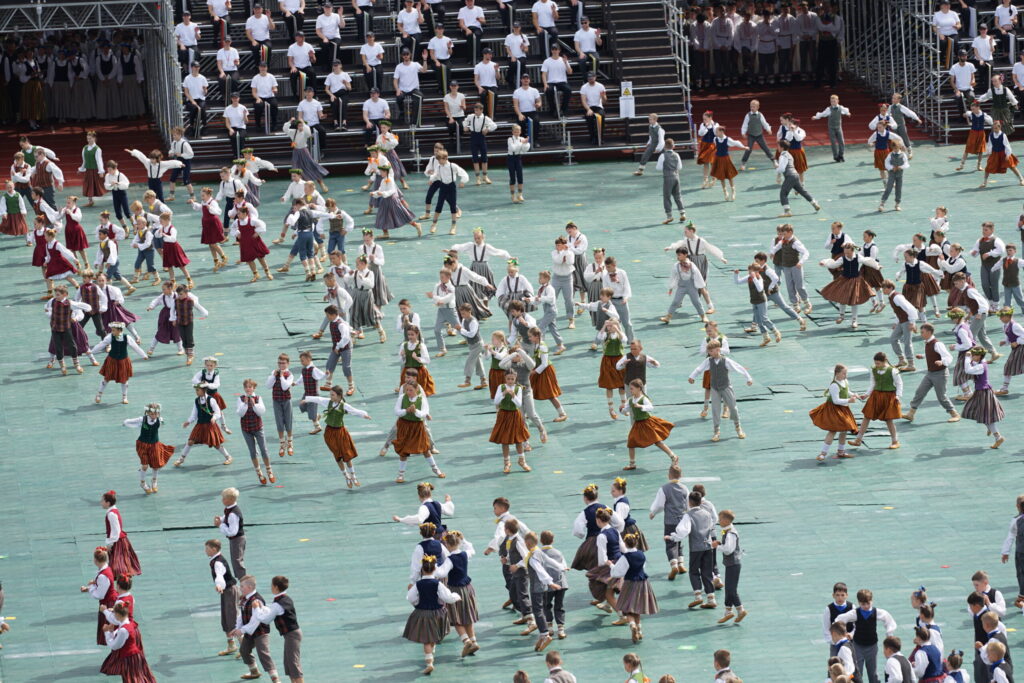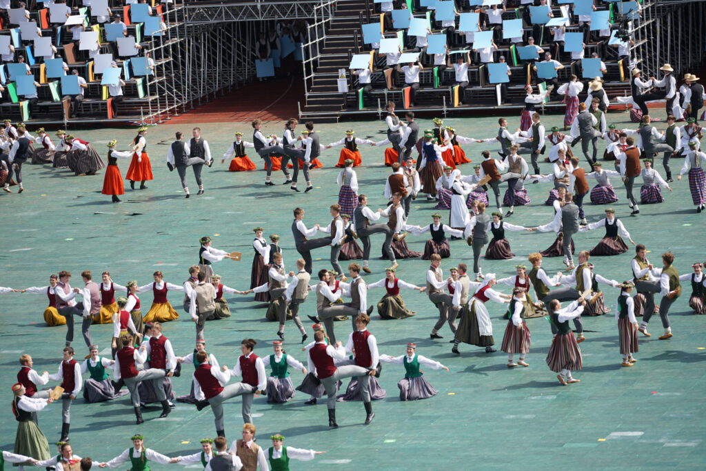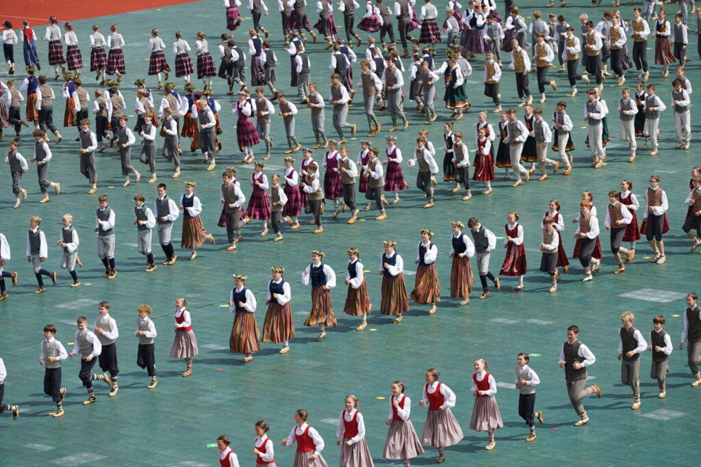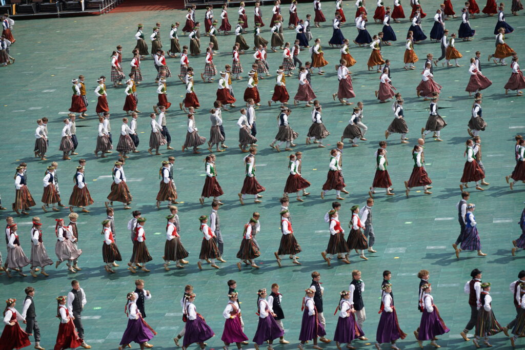 Deju lielkoncerta “Es atvēru Laimas dārzu” ģenerālmēģinājums Daugavas stadionā.