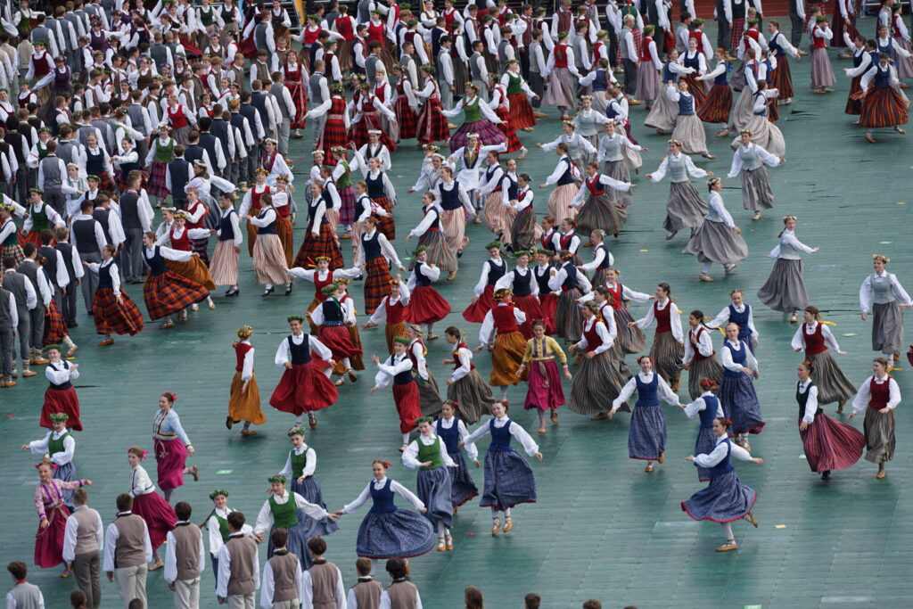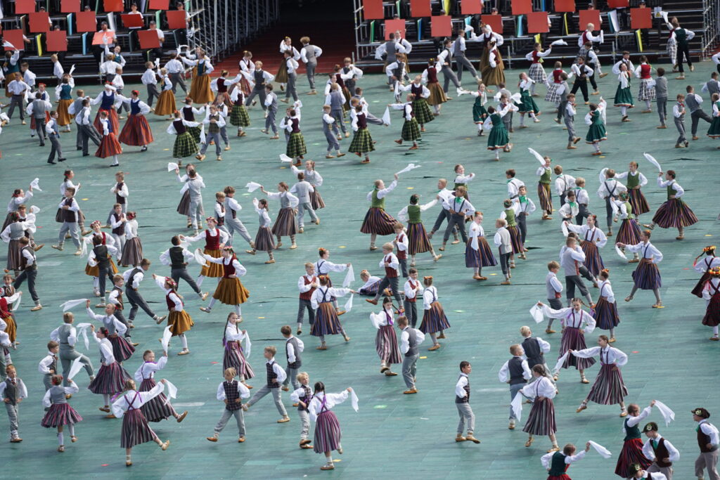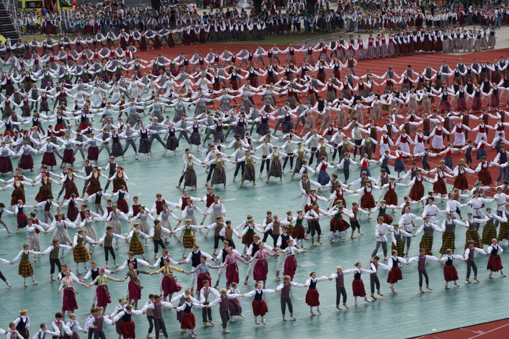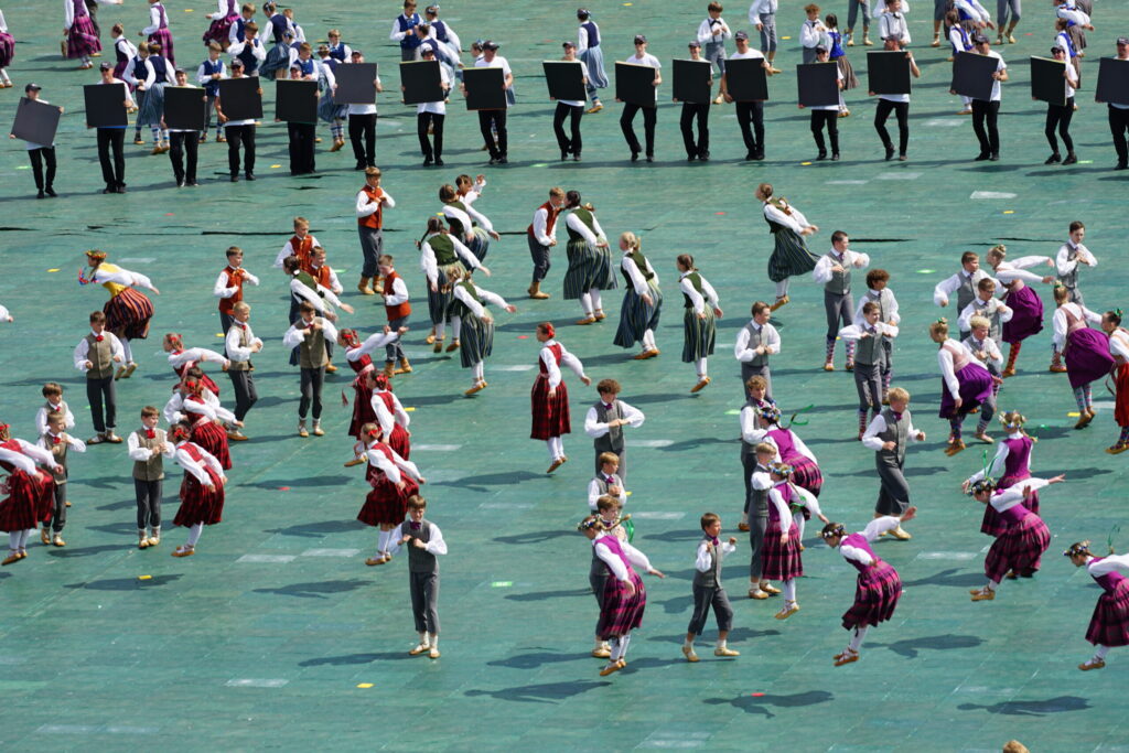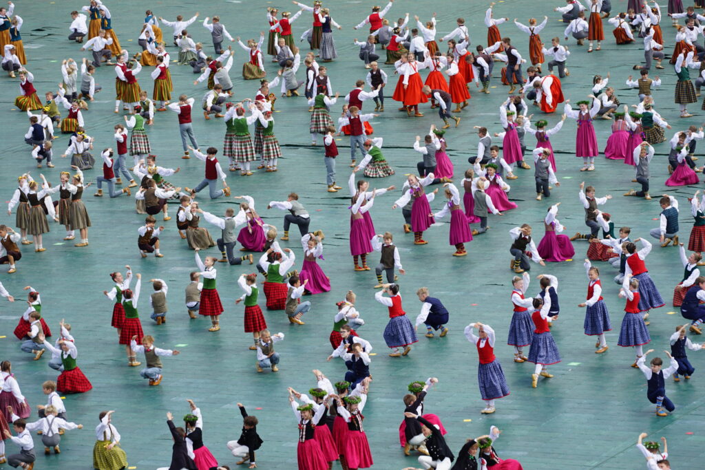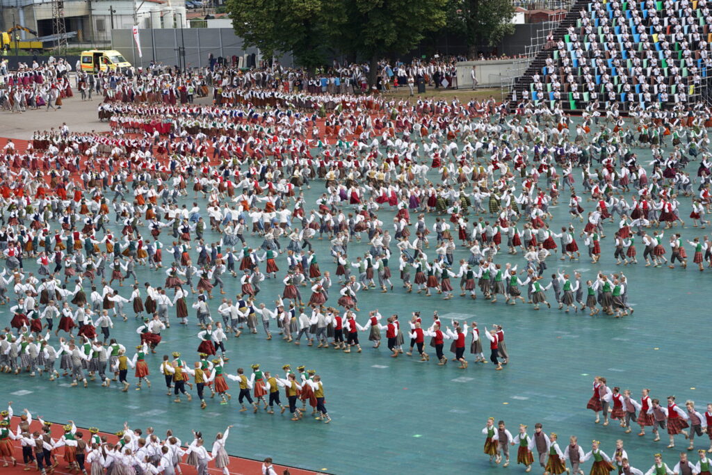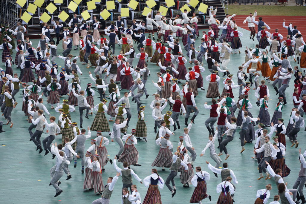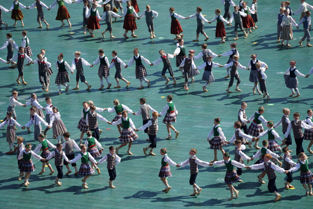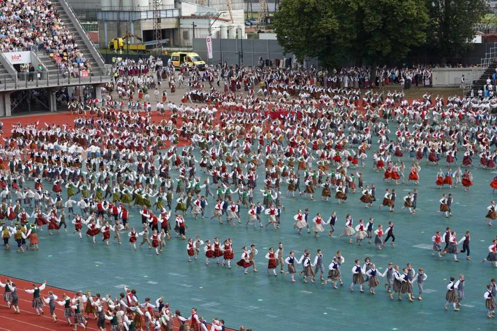 Deju lielkoncerta “Es atvēru Laimas dārzu” ģenerālmēģinājums Daugavas stadionā.