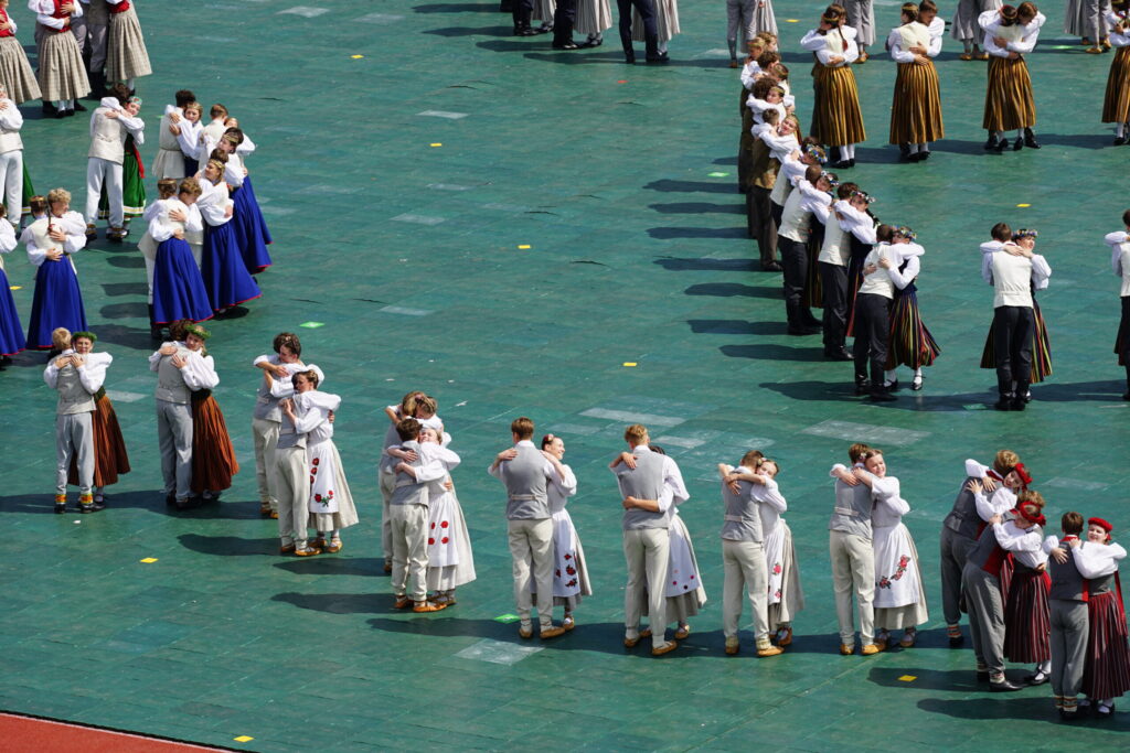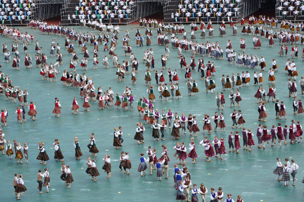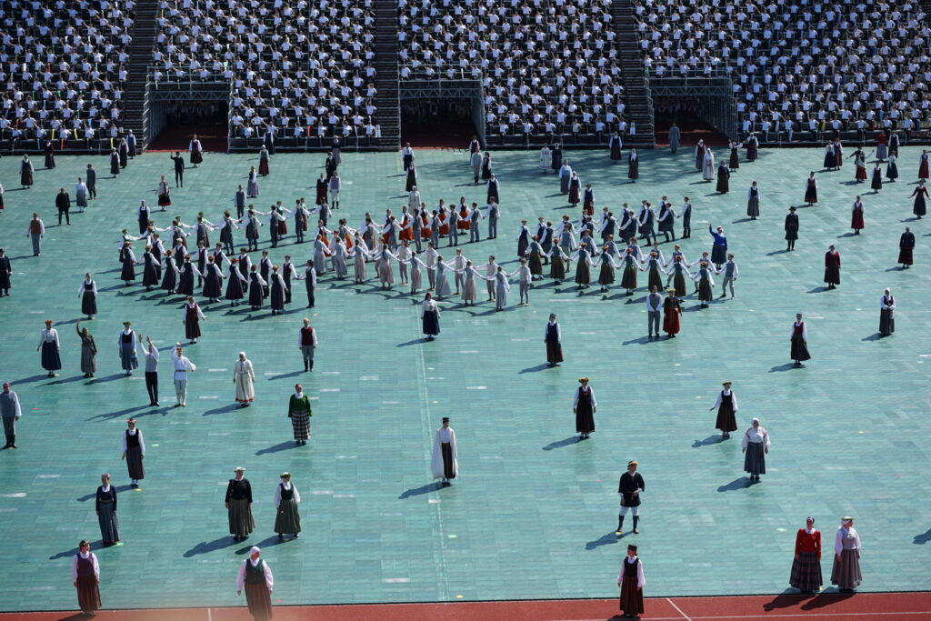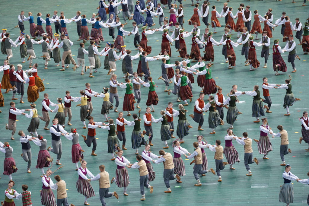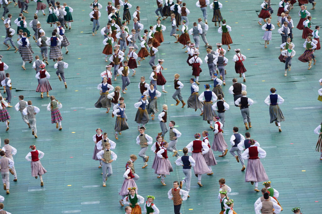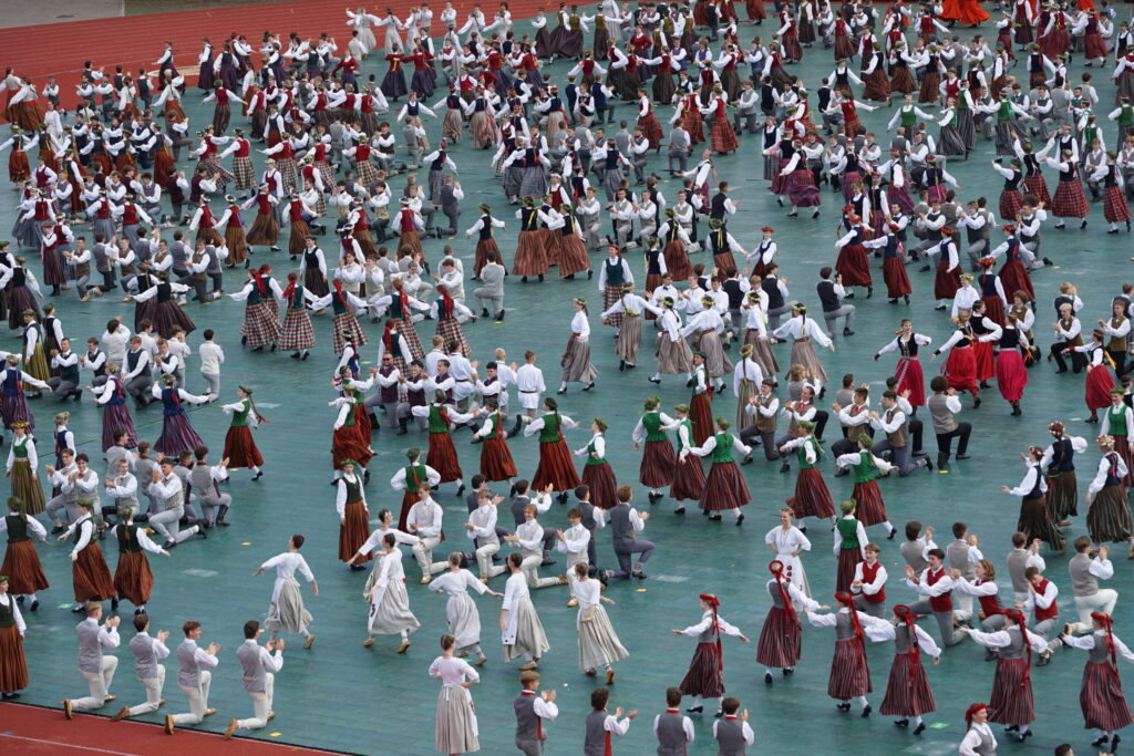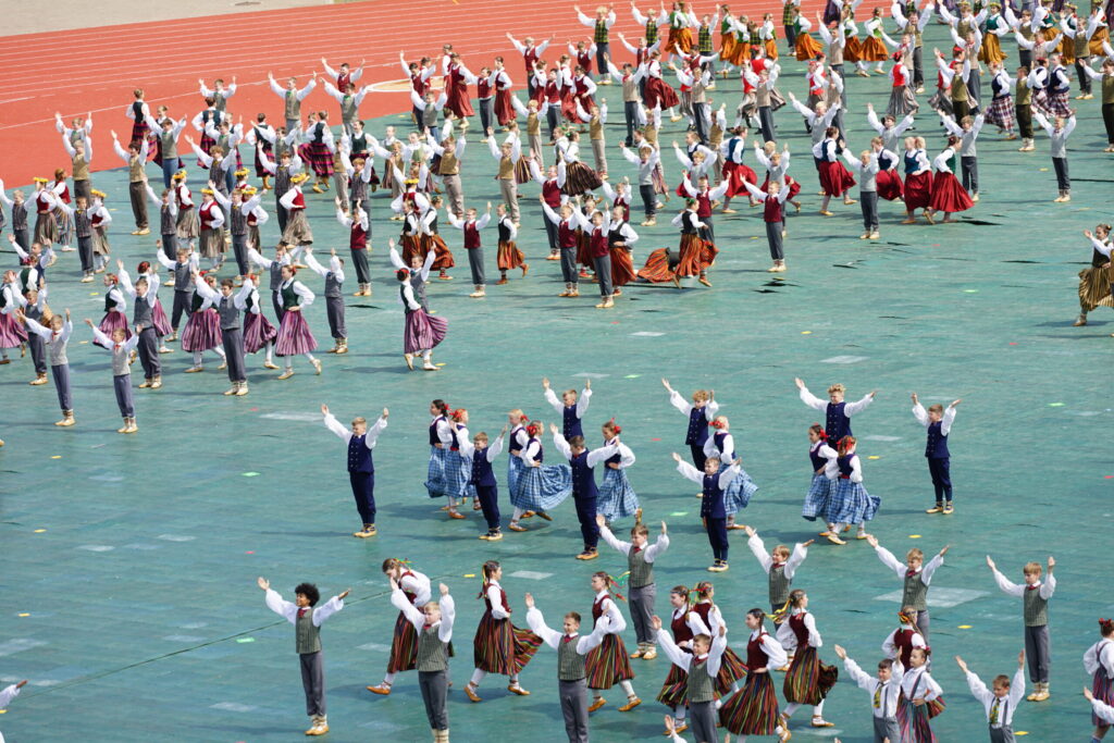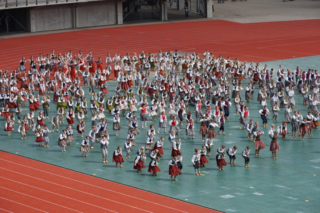 Deju lielkoncerta “Es atvēru Laimas dārzu” ģenerālmēģinājums Daugavas stadionā.