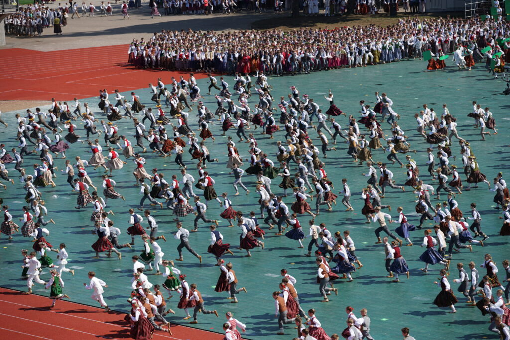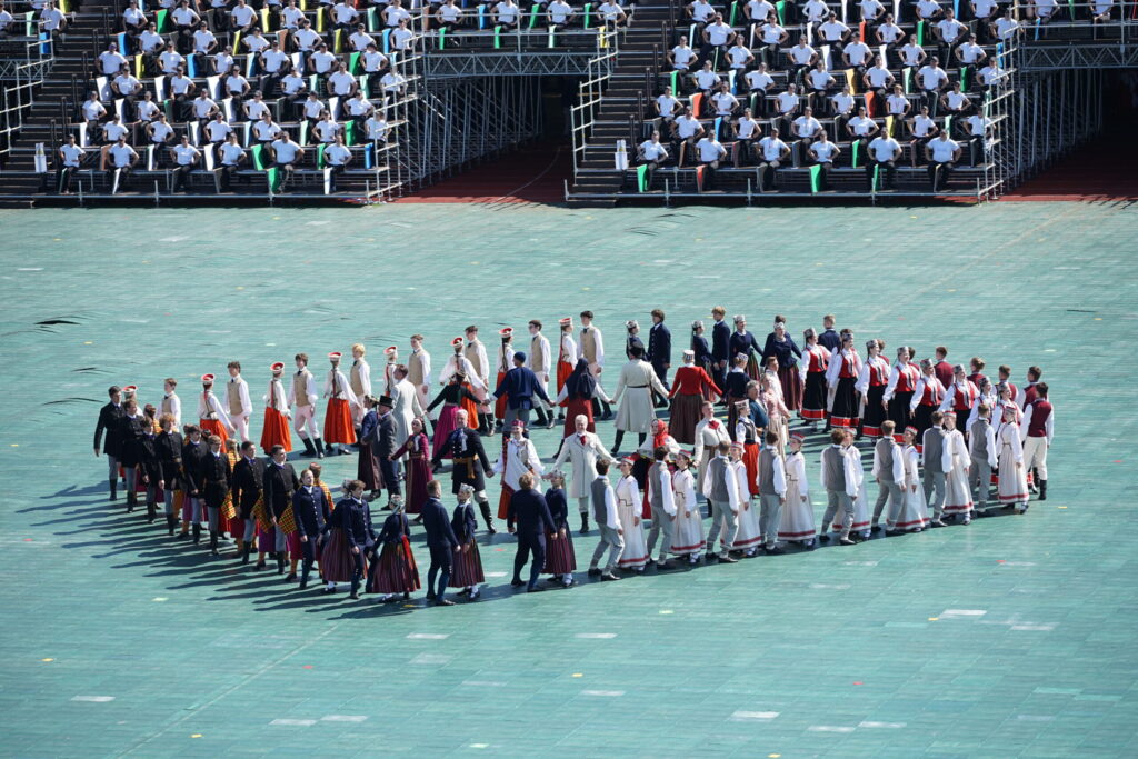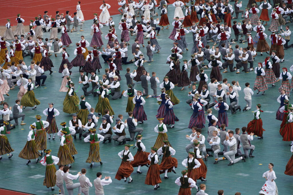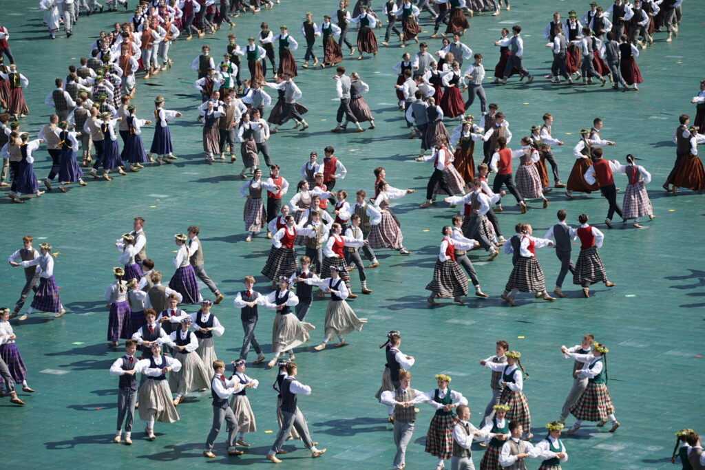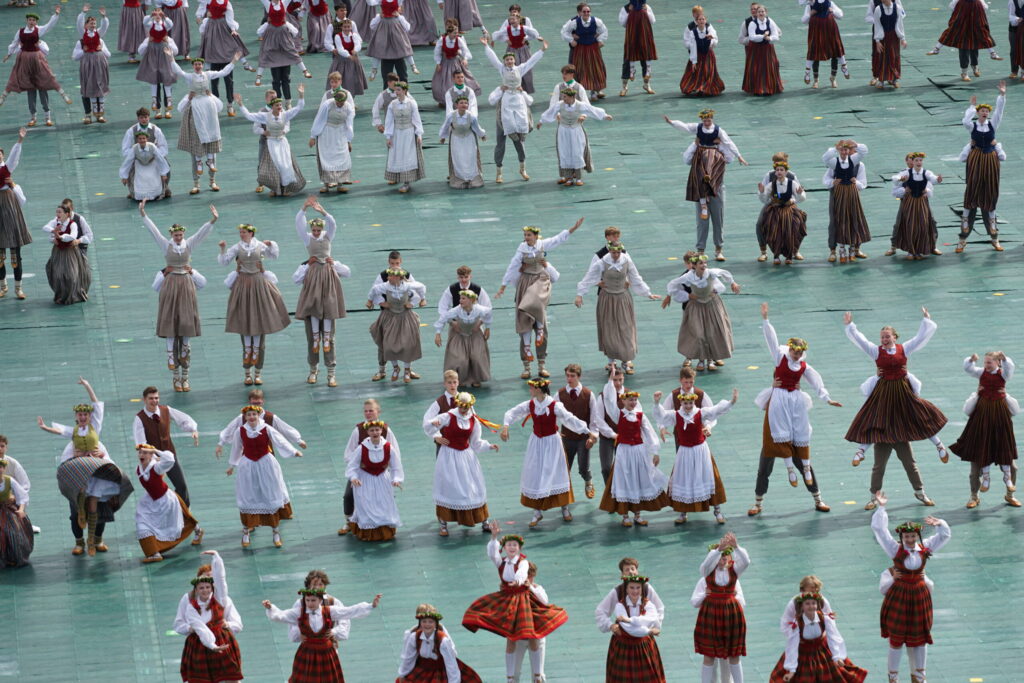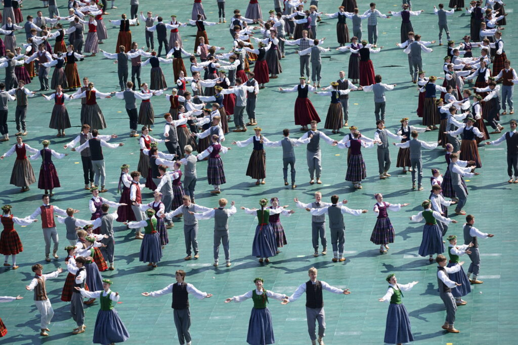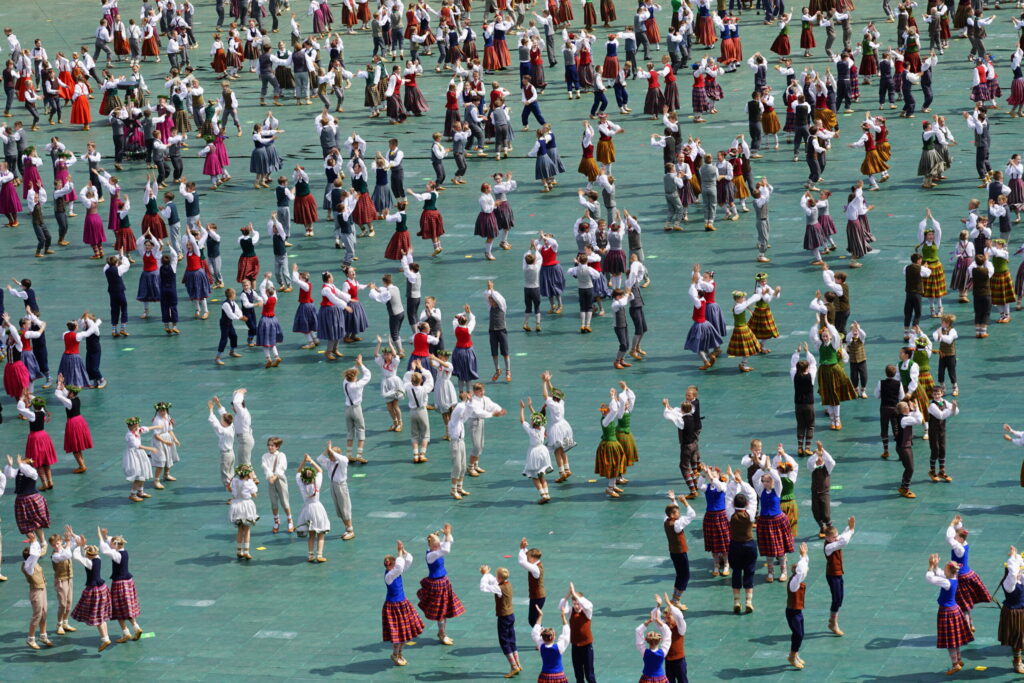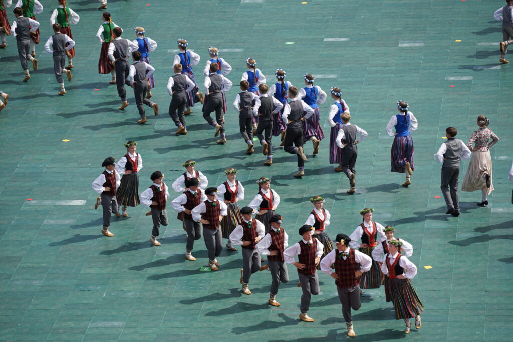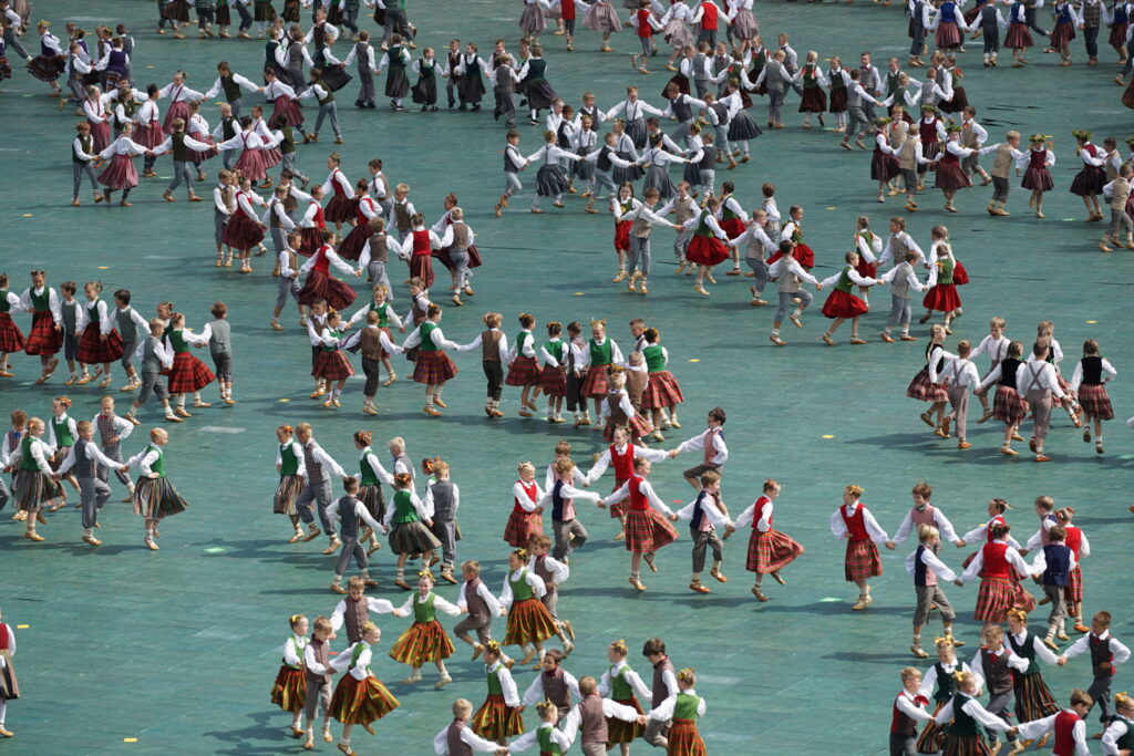 Deju lielkoncerta “Es atvēru Laimas dārzu” ģenerālmēģinājums Daugavas stadionā.