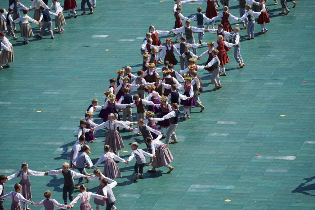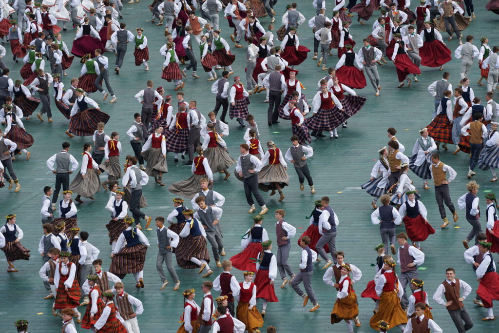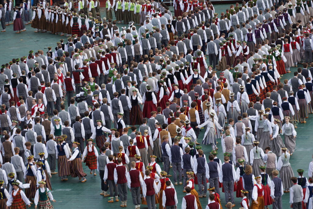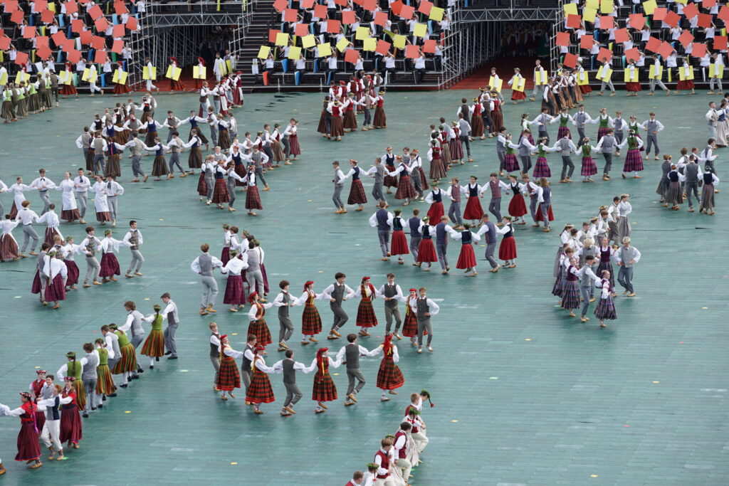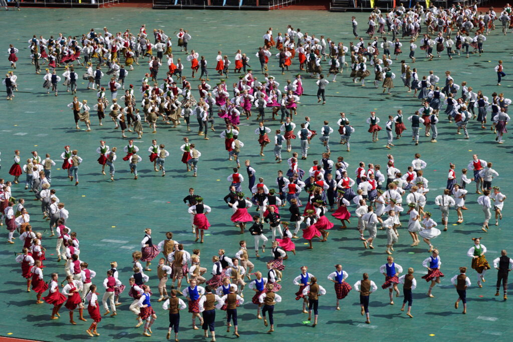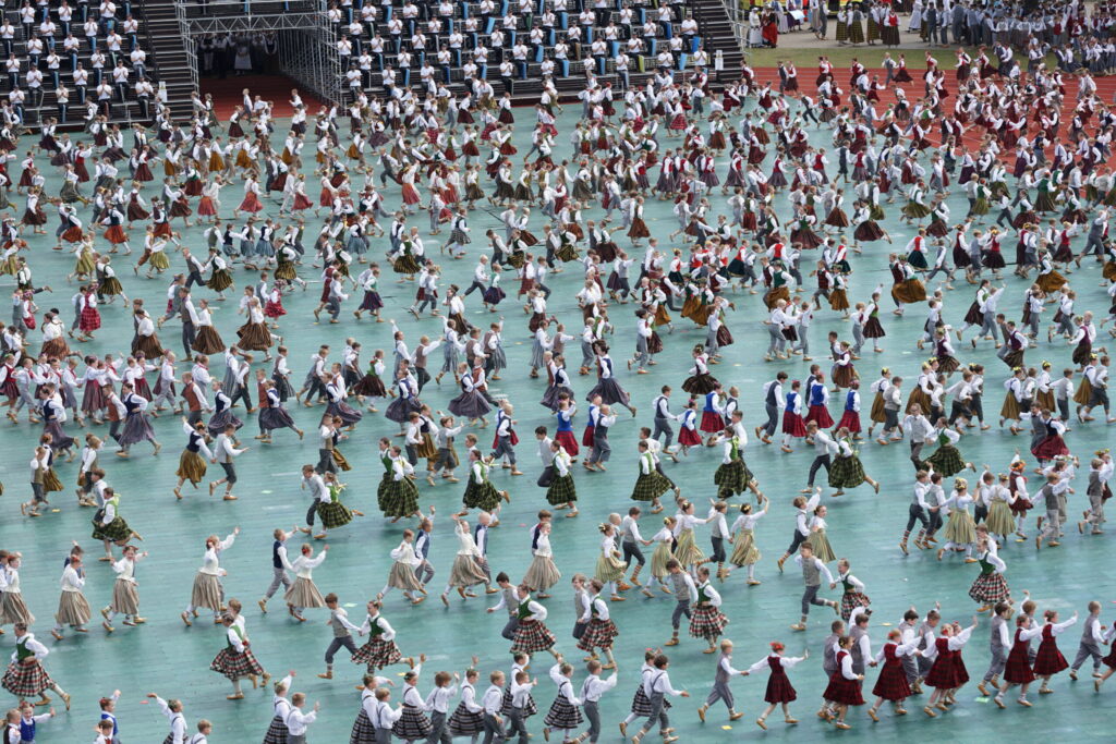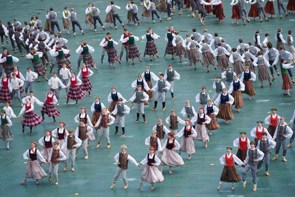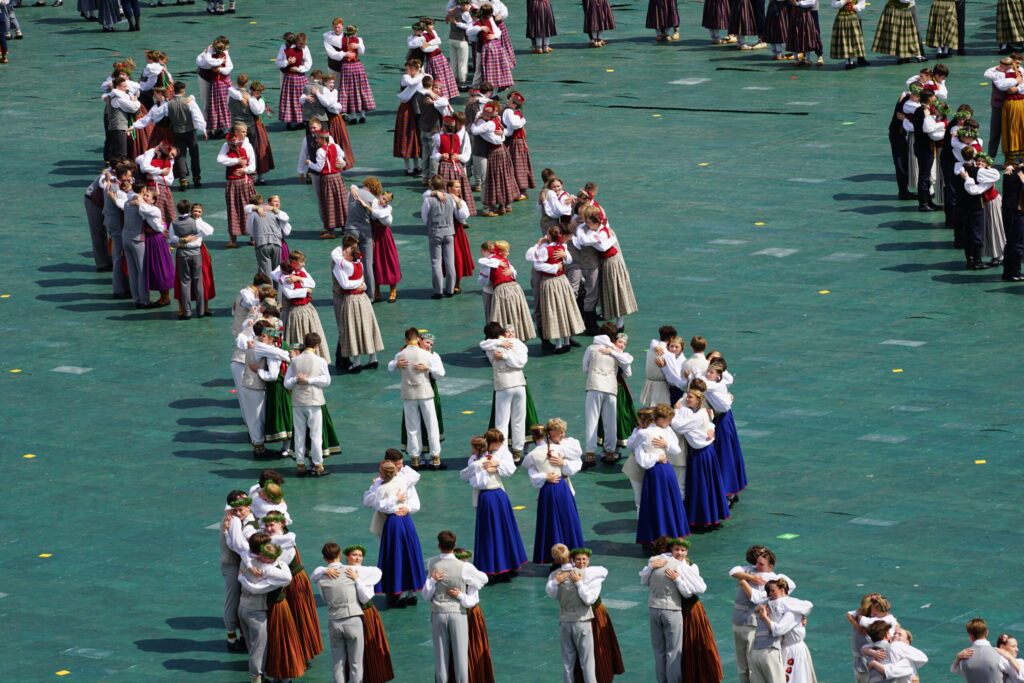 Deju lielkoncerta “Es atvēru Laimas dārzu” ģenerālmēģinājums Daugavas stadionā.
