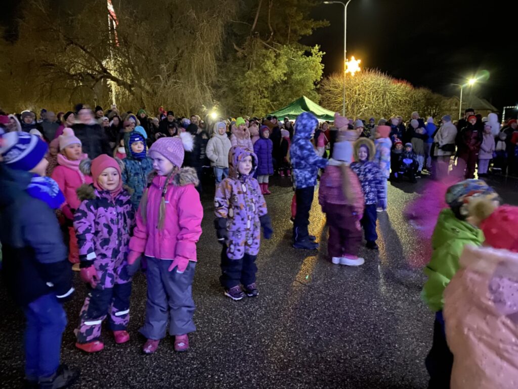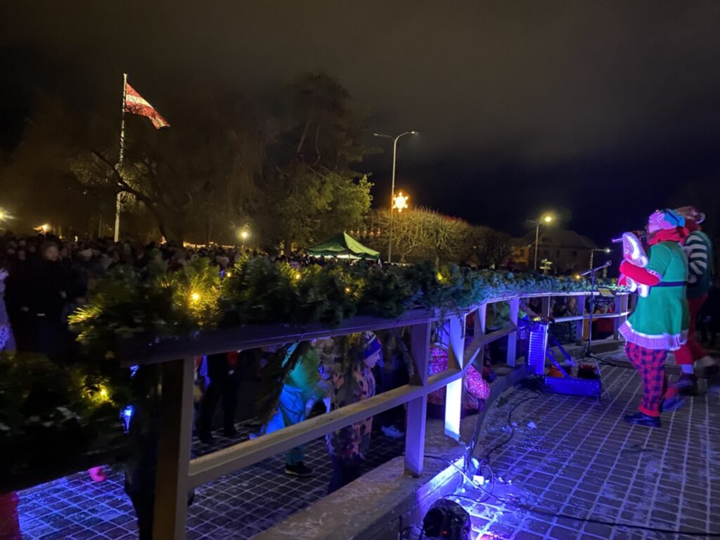 Ceturtdienas vakarā pulksten 19 Valkā, Lugažu laukumā, sapulcējās kupls skaits ģimeņu ar bērniem, lai kopā ar Rūķiem izdziedātos, izdejotos un svinīgi iedegtu Ziemassvētku skaisto egli. Atnākušie atzinīgus vārdus veltīja mūziķiem Atim Auzānam un Elizabetei Zagorskai par visiem labi zināmu bērnu dziesmu izpildīšanu. Bērni labprāt pievienojās dziedāšanai. Kultūras nama direktora vietniece Līga Pandalone bija sarūpējusi karstu tēju un piparkūkas.