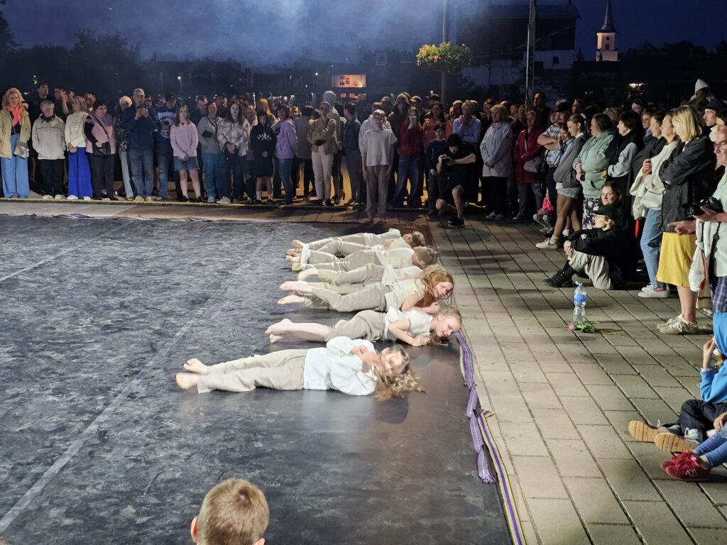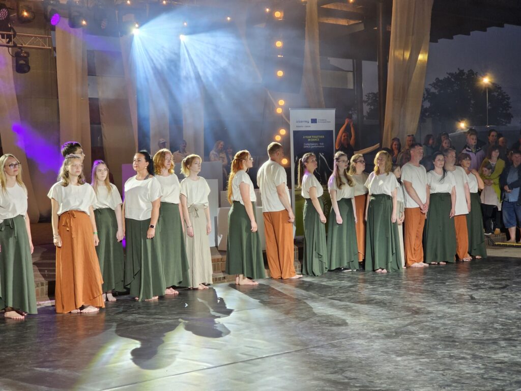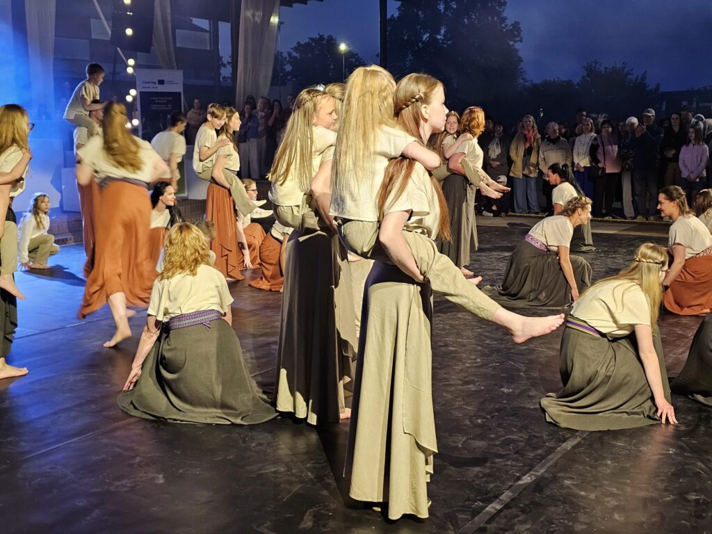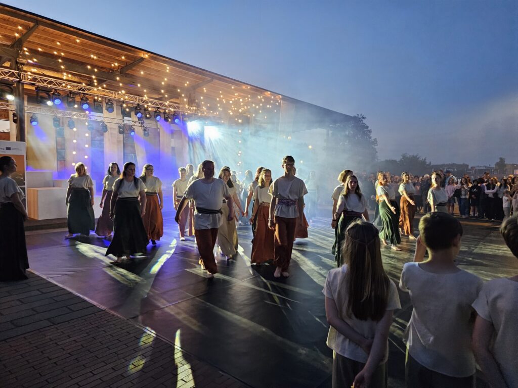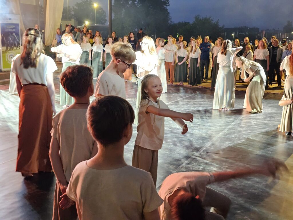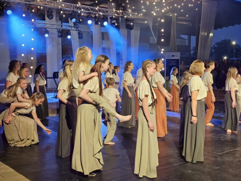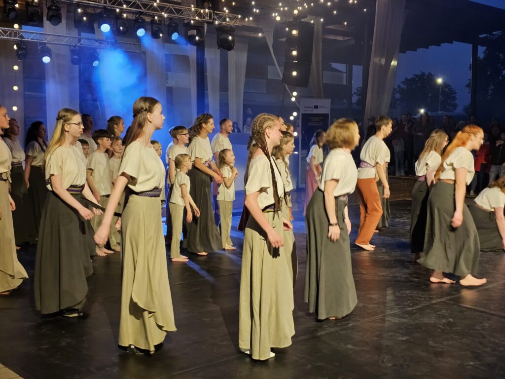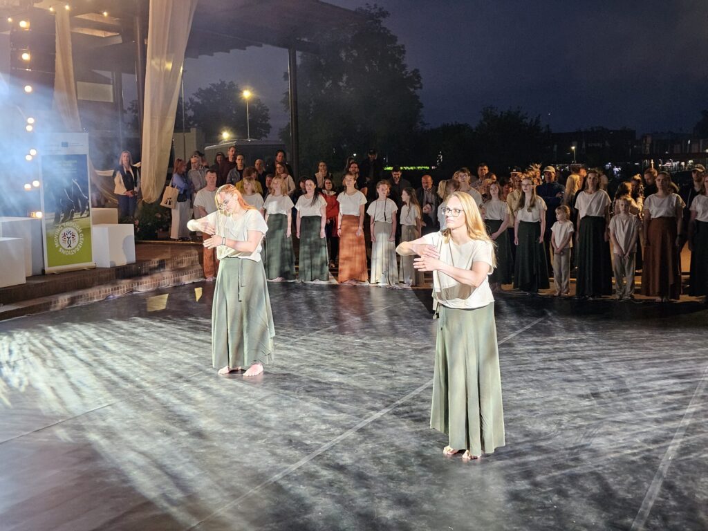Pēc tam bija laikmetīgi – tautiska deju uzveduma “Kustība caur paaudzēm” izrāde, kurā dejoja dažāda vecuma cilvēki no Valkas un Valgas.