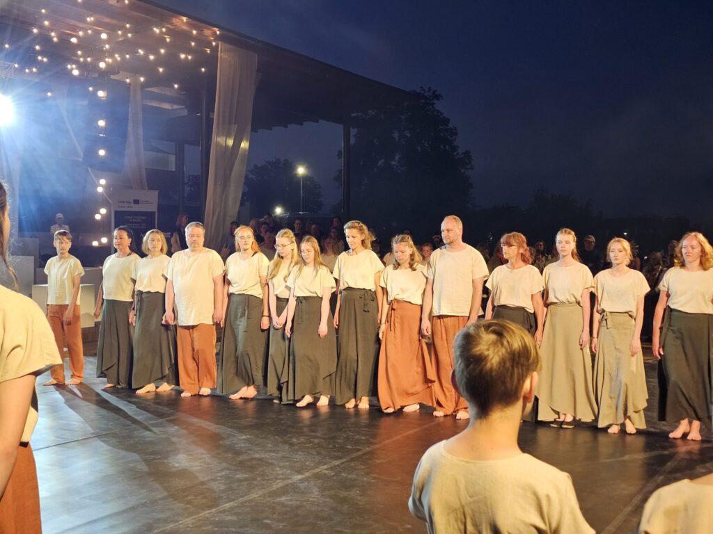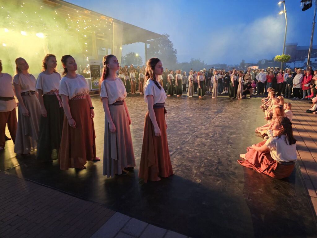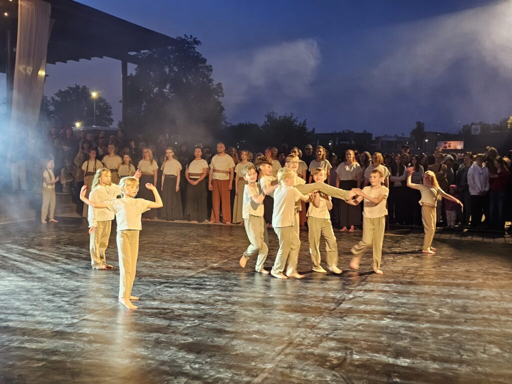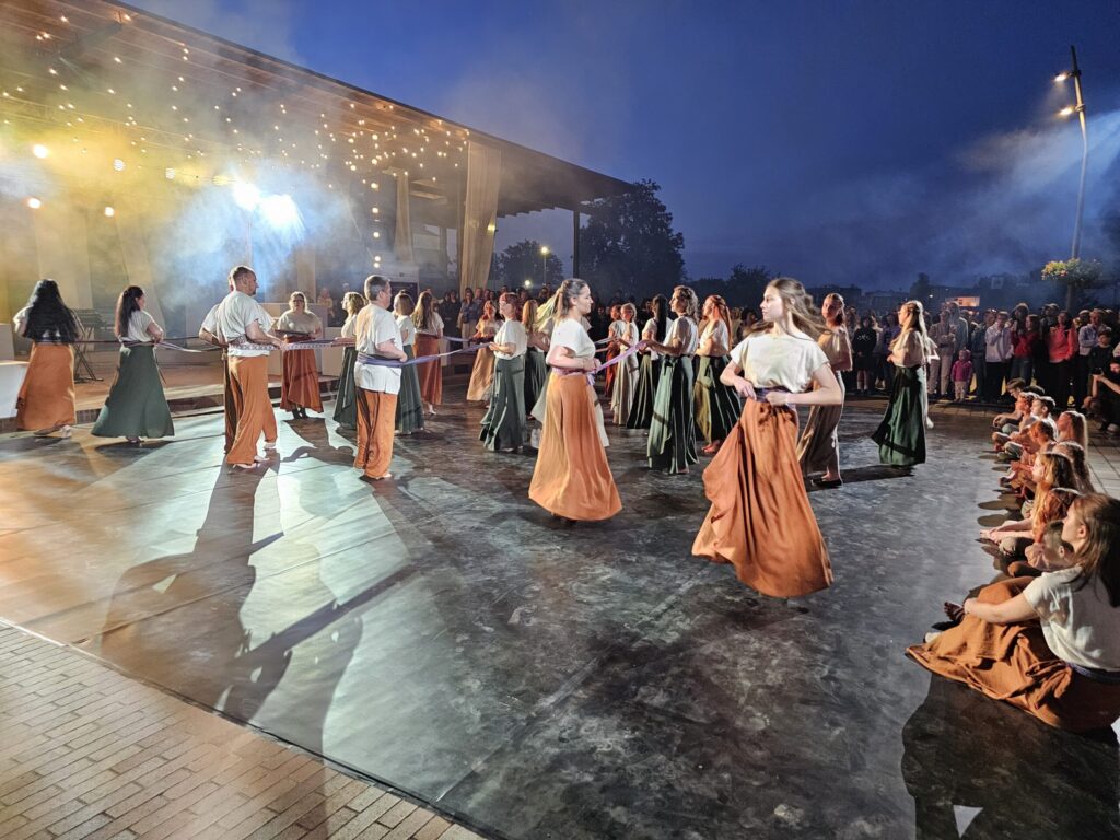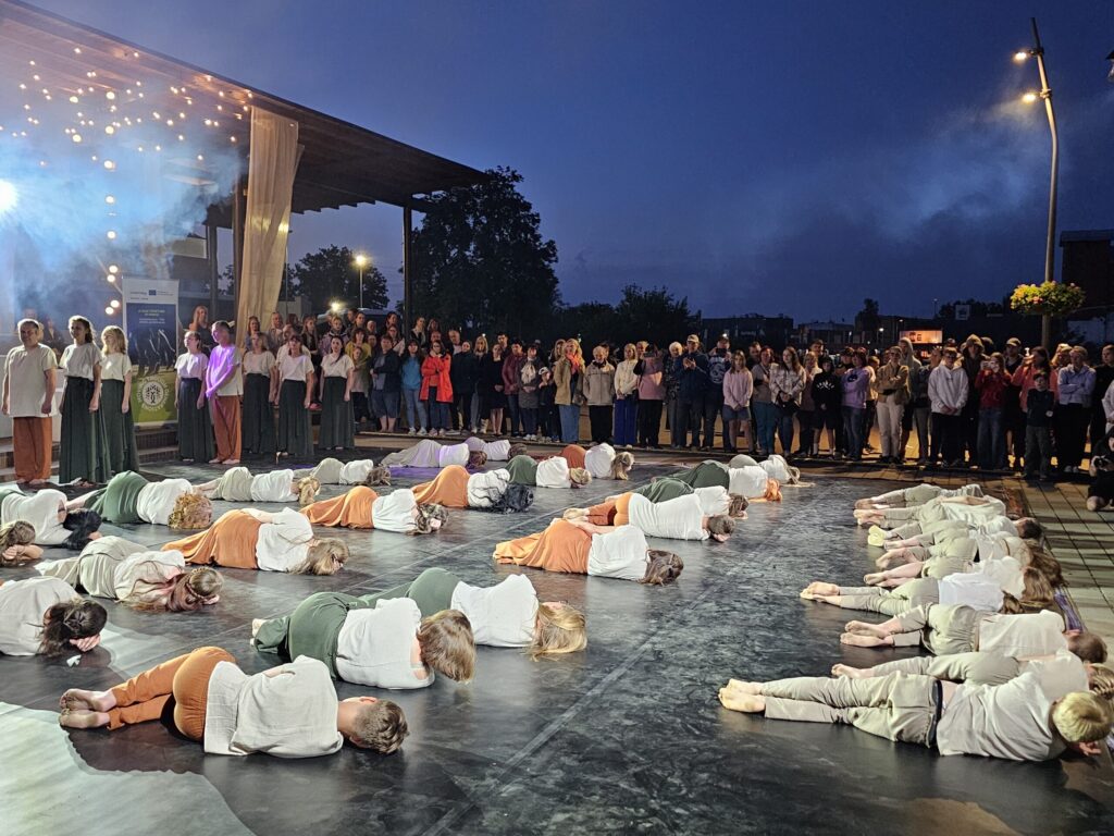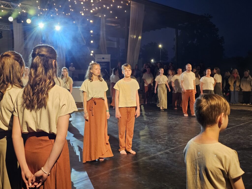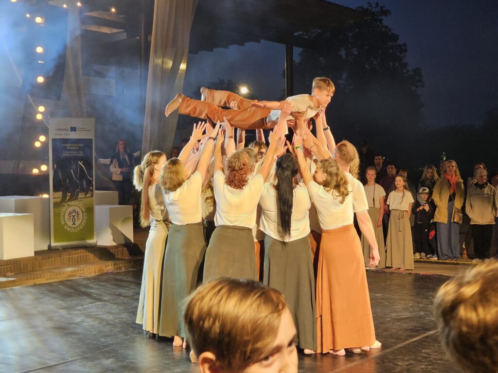 Pēc tam bija laikmetīgi – tautiska deju uzveduma “Kustība caur paaudzēm” izrāde, kurā dejoja dažāda vecuma cilvēki no Valkas un Valgas.