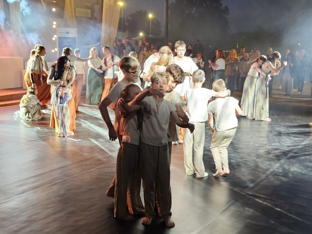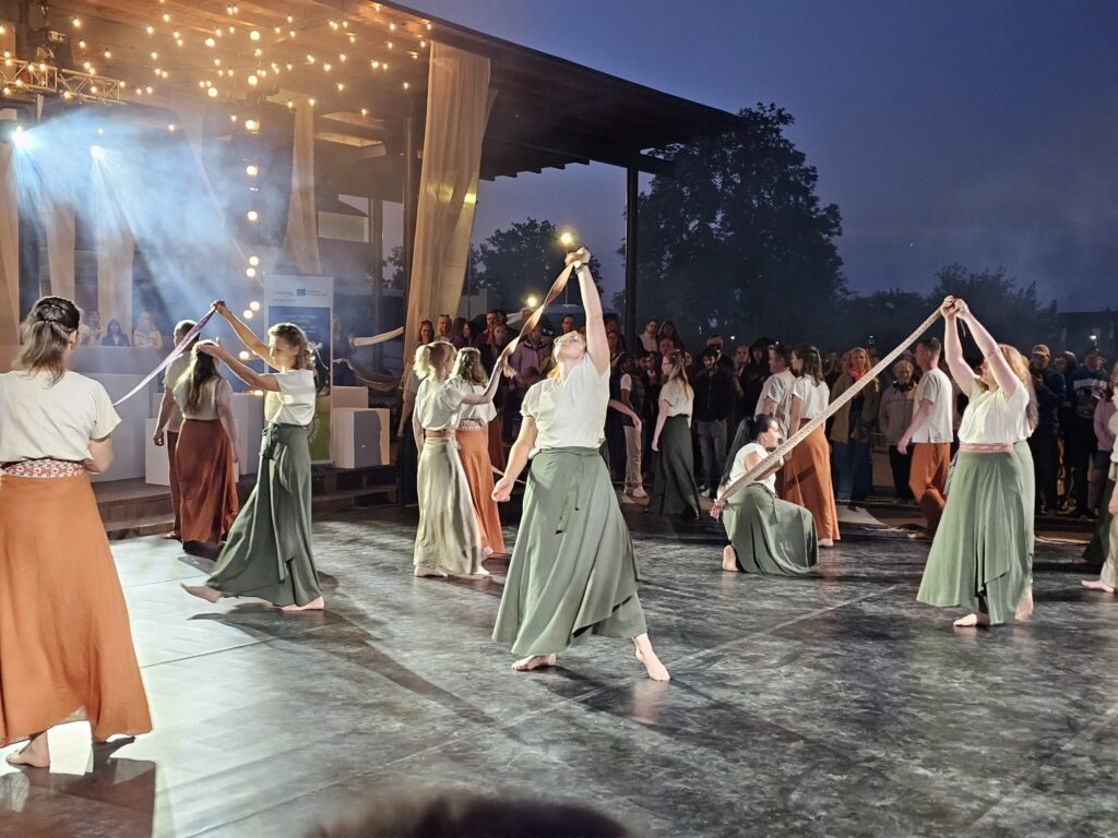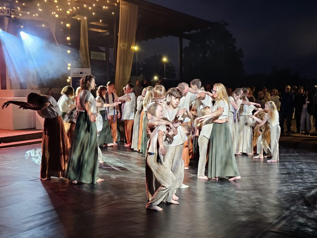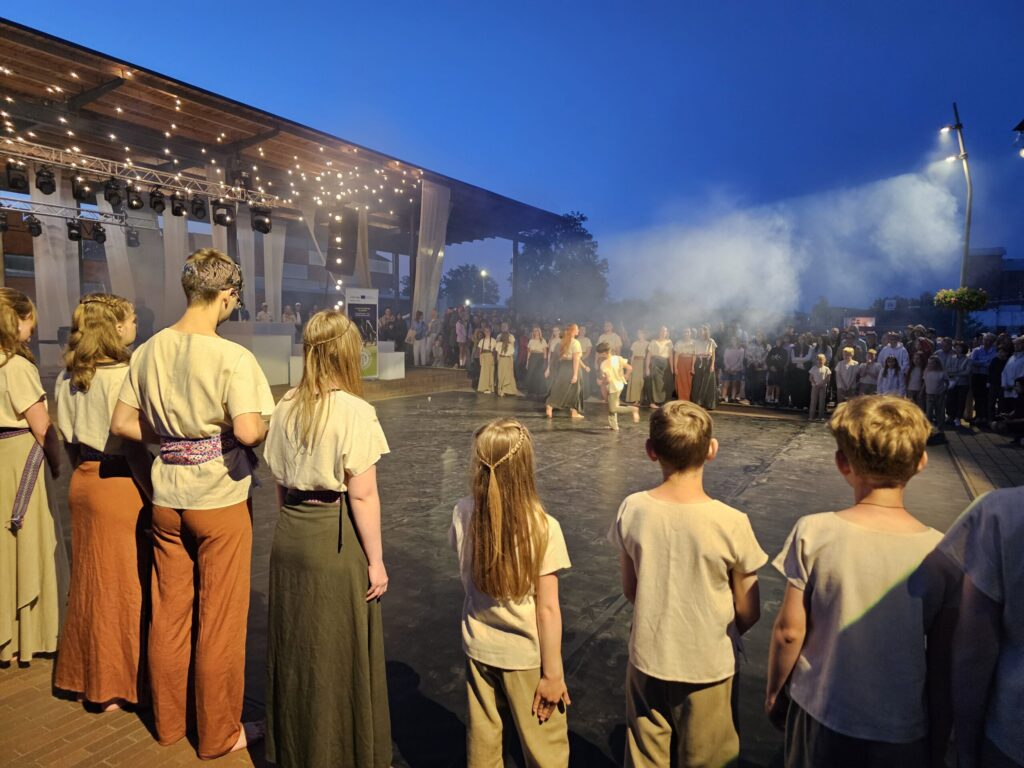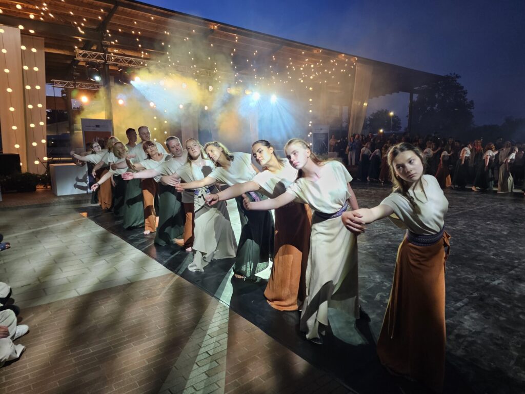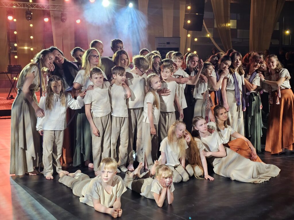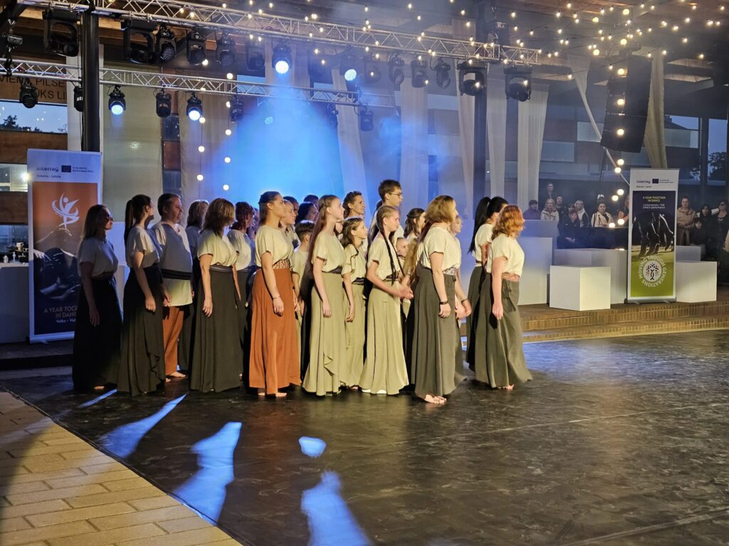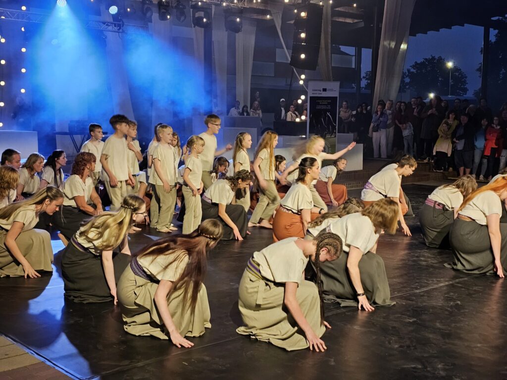 Pēc tam bija laikmetīgi – tautiska deju uzveduma “Kustība caur paaudzēm” izrāde, kurā dejoja dažāda vecuma cilvēki no Valkas un Valgas.