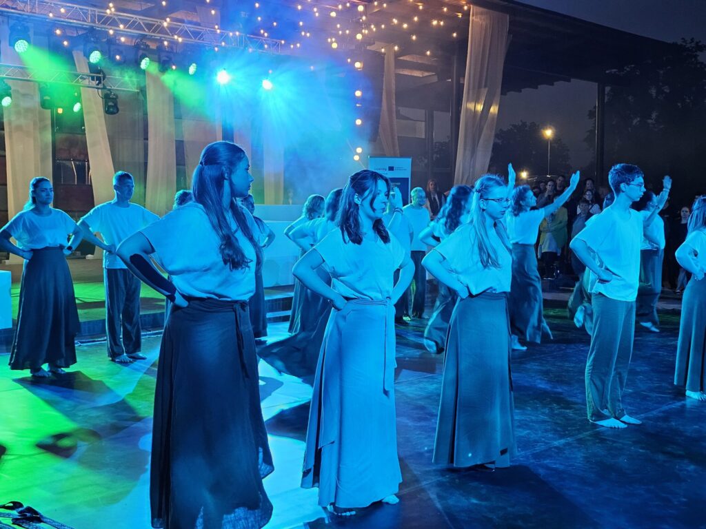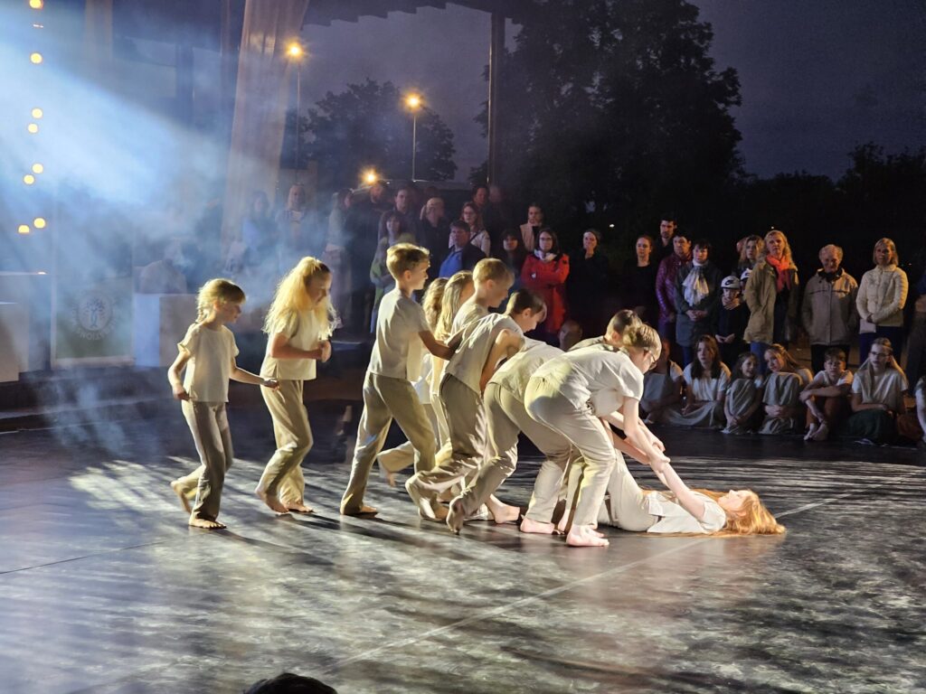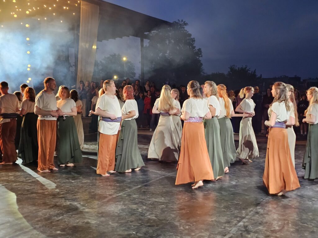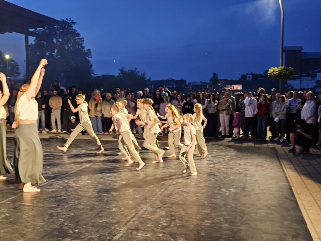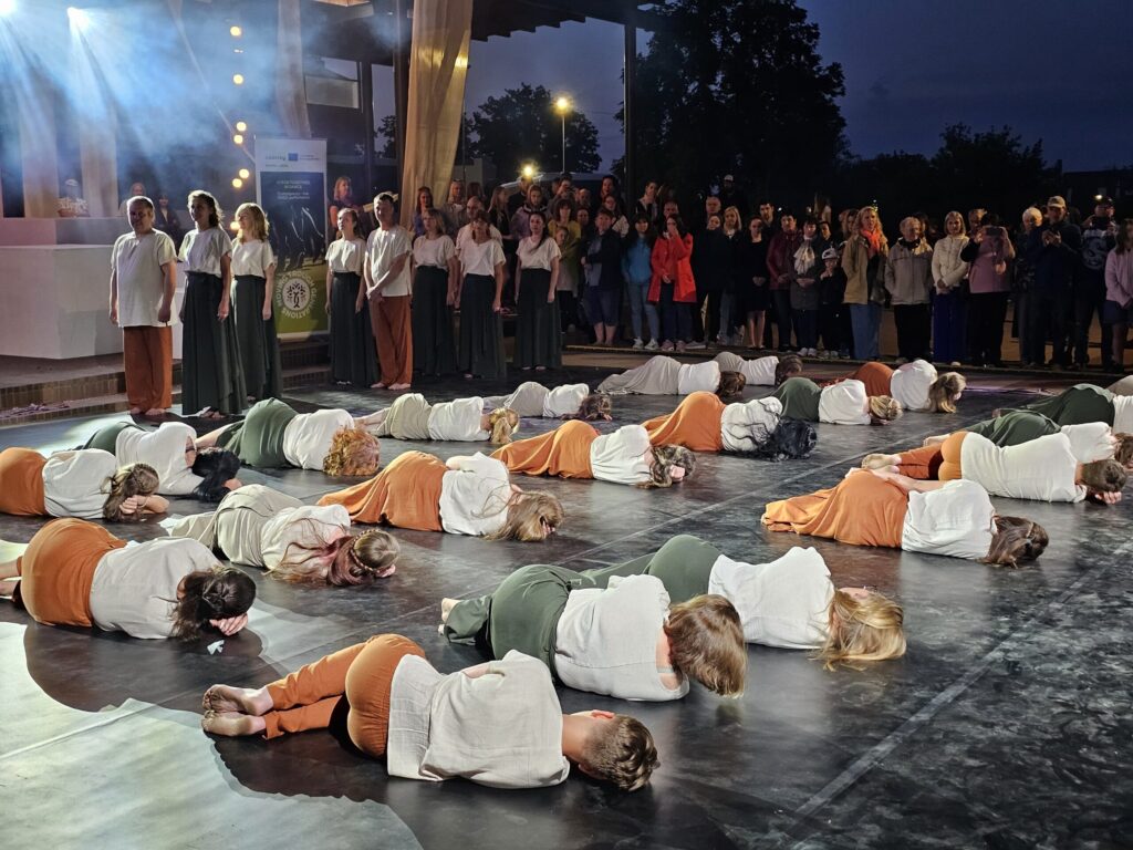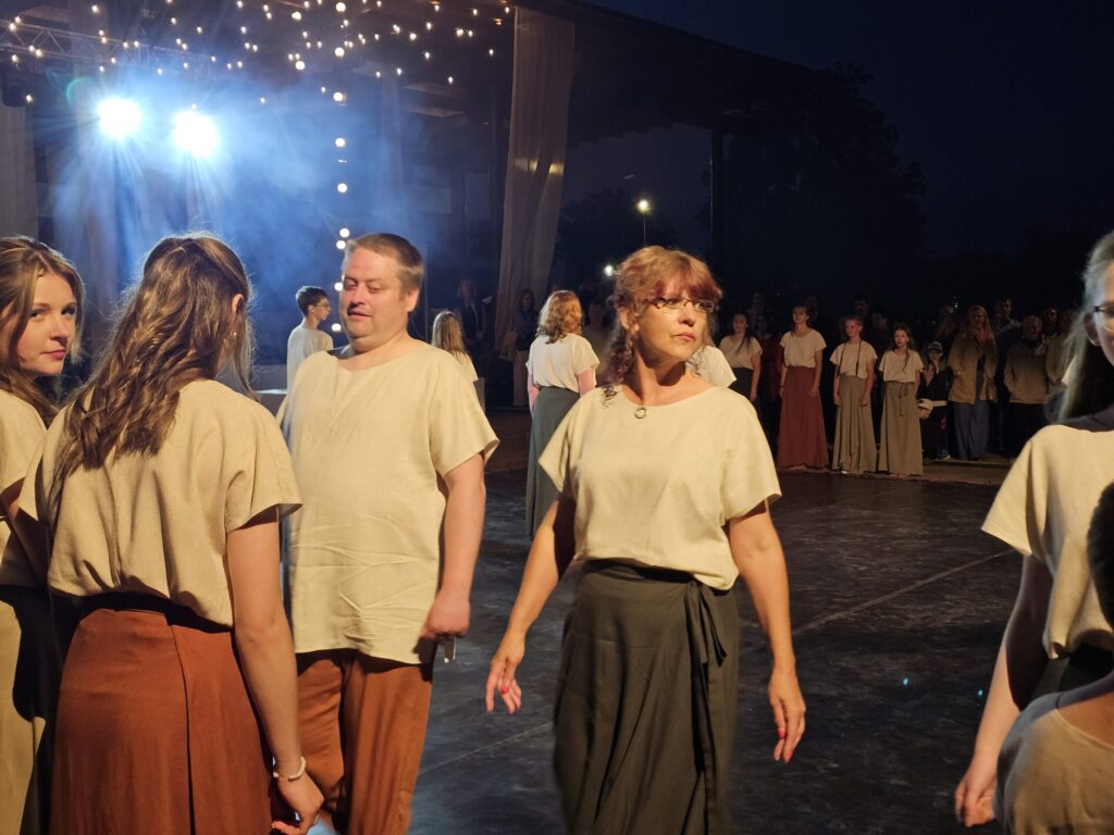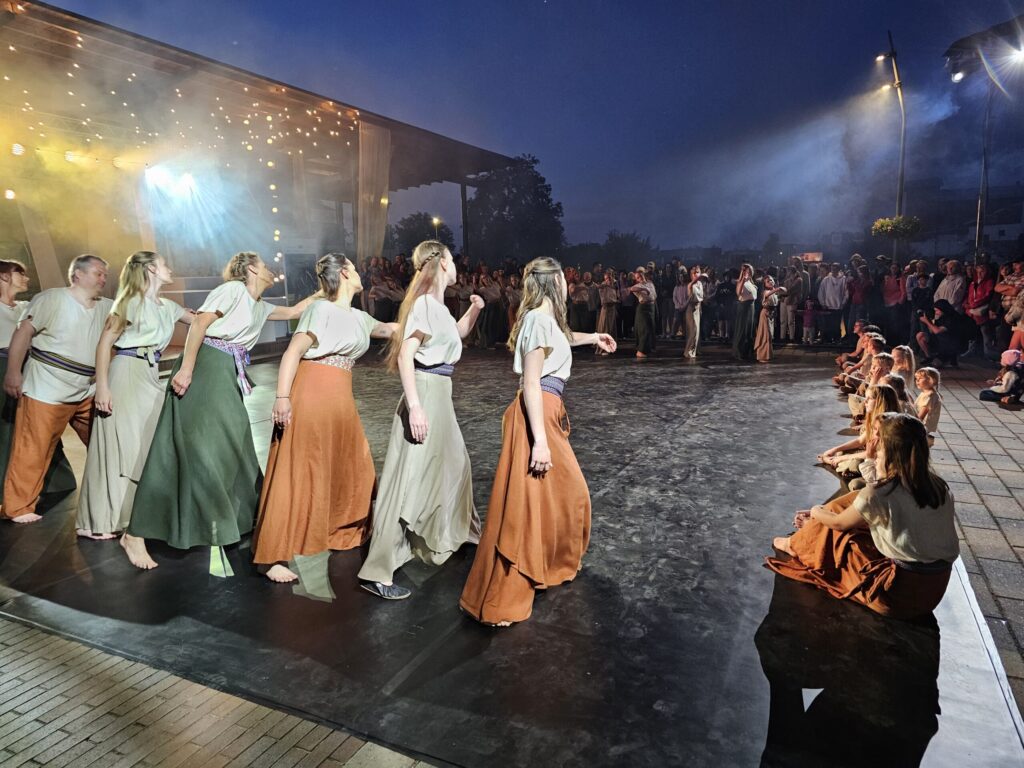 Pēc tam bija laikmetīgi – tautiska deju uzveduma “Kustība caur paaudzēm” izrāde, kurā dejoja dažāda vecuma cilvēki no Valkas un Valgas.