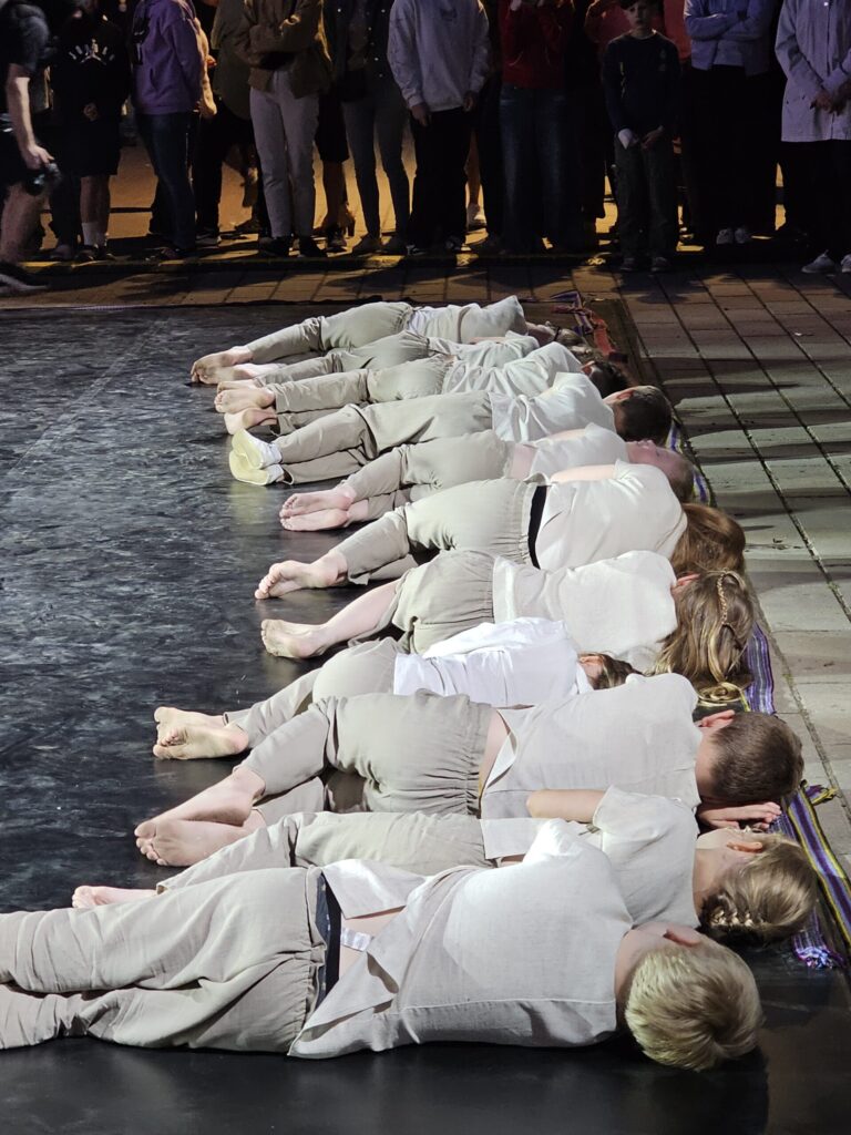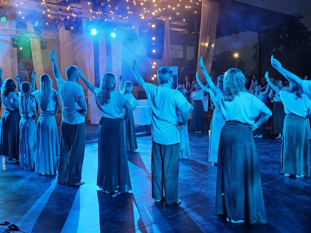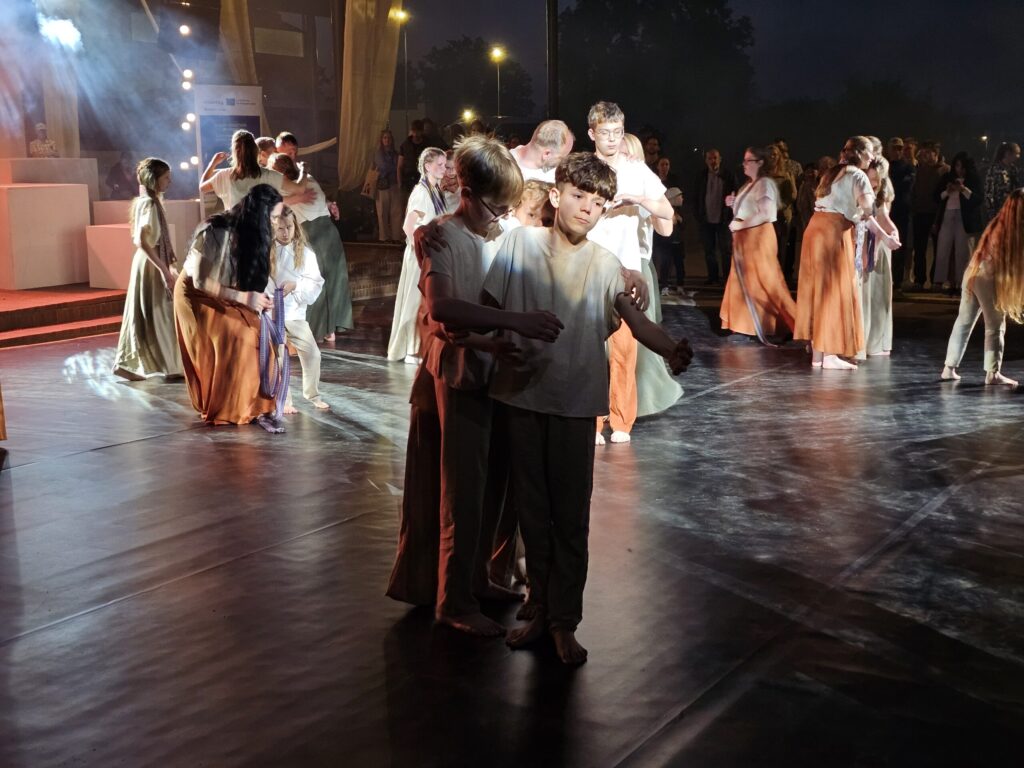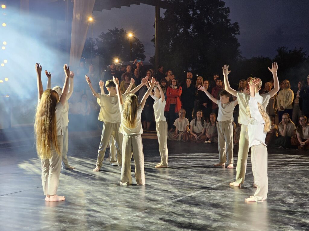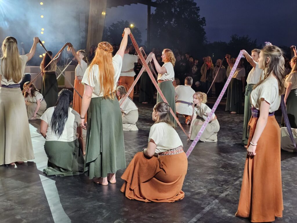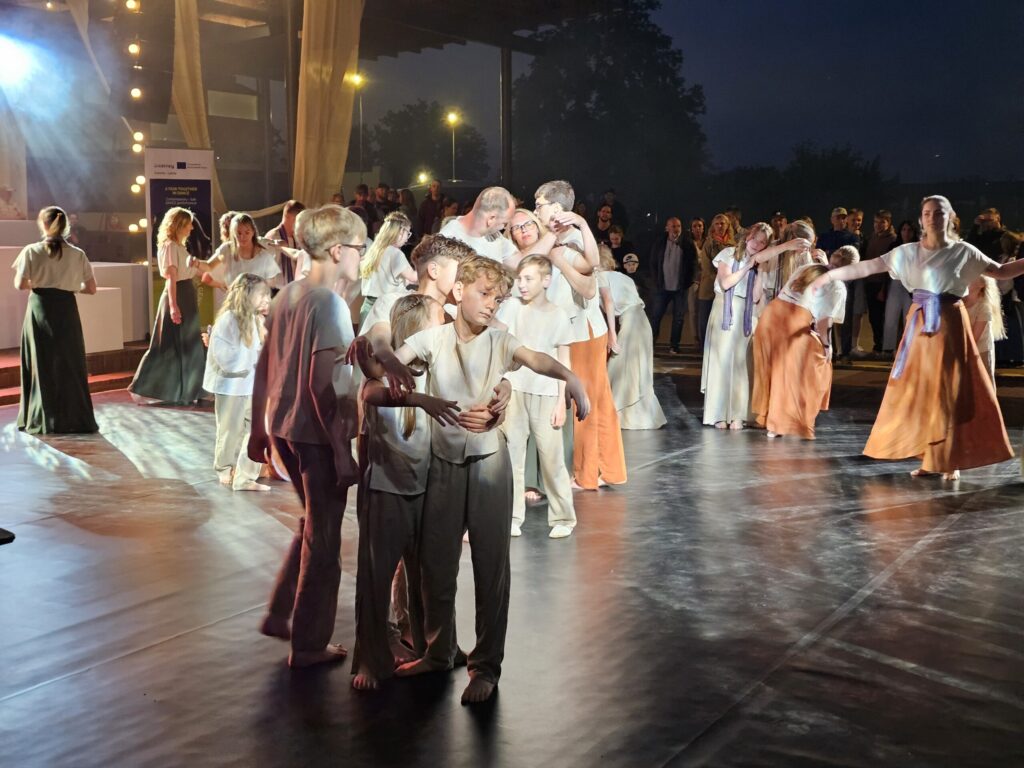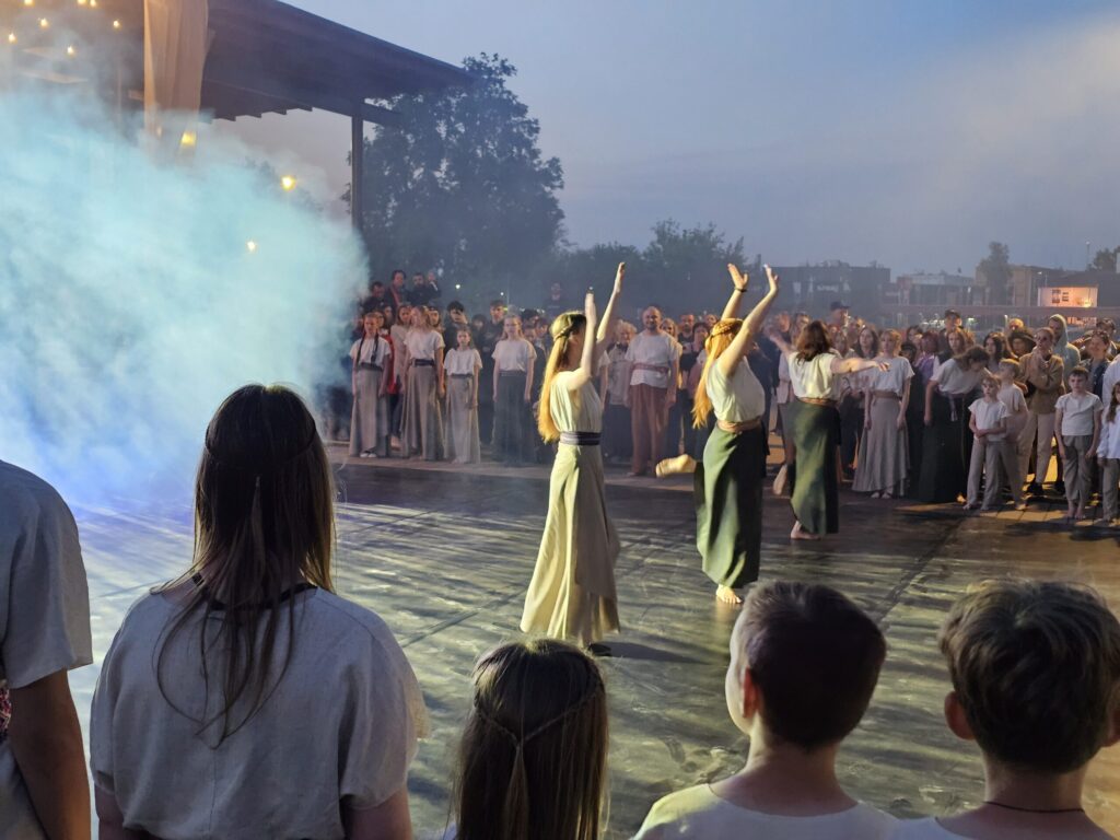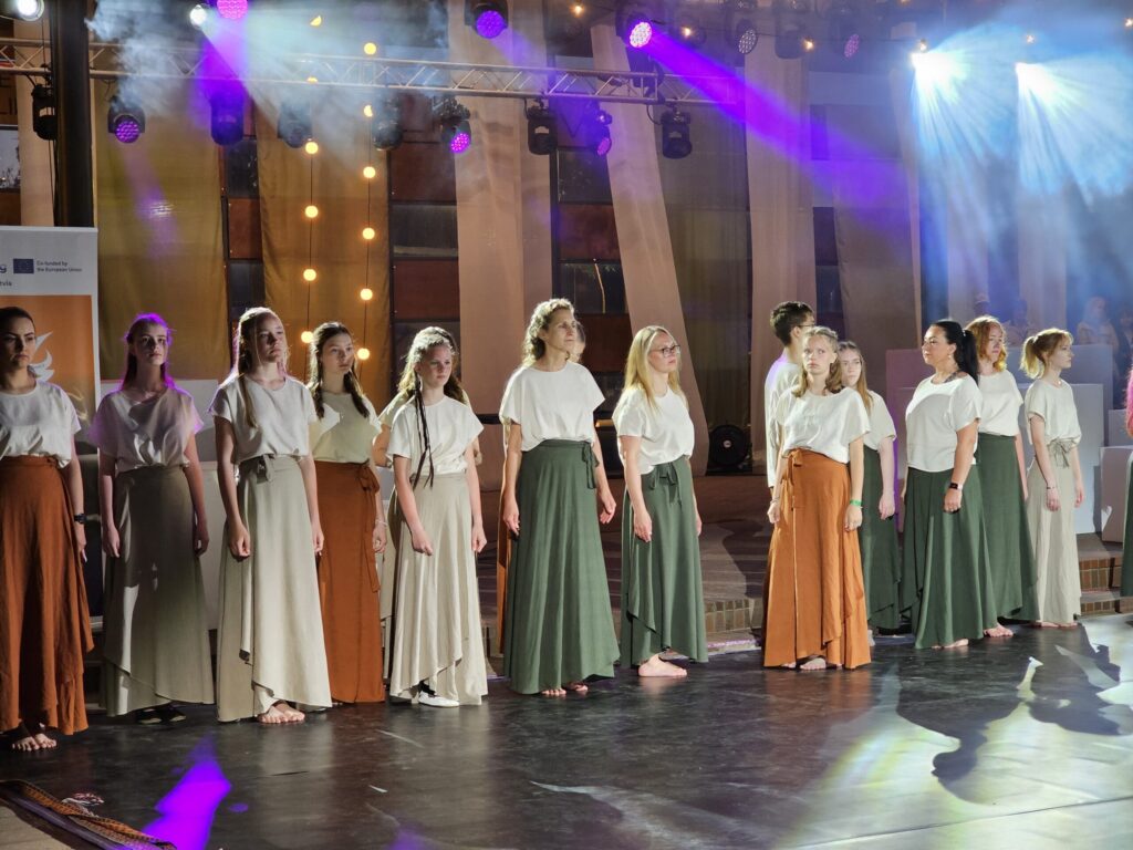 Pēc tam bija laikmetīgi – tautiska deju uzveduma “Kustība caur paaudzēm” izrāde, kurā dejoja dažāda vecuma cilvēki no Valkas un Valgas.