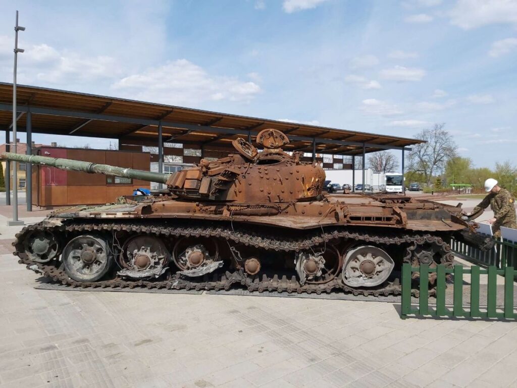 Trešdien, 10.maijā, Valkā, dvīņupilsētu kopējā centrā, novietots cilvēku apskatei Ukrainas bruņoto spēku iznīcināts Krievijas okupantu tanks “T-72B”.