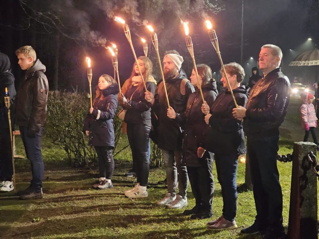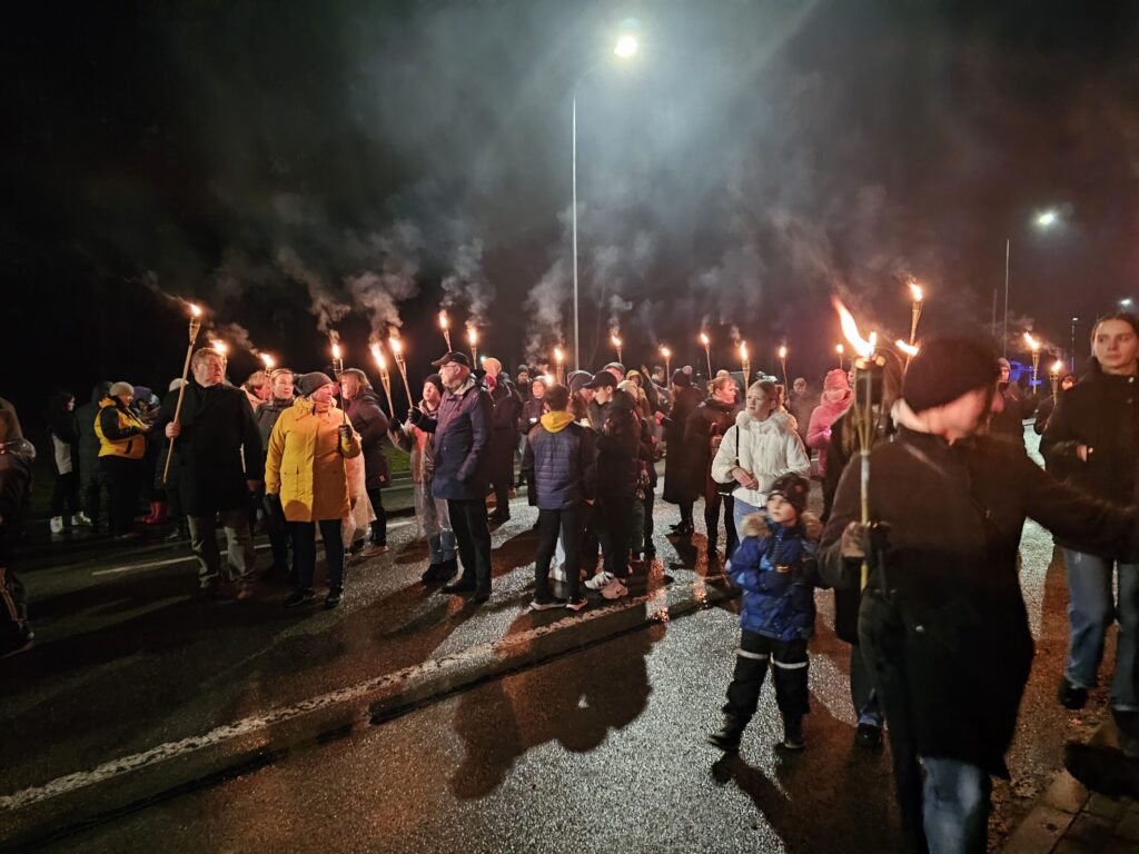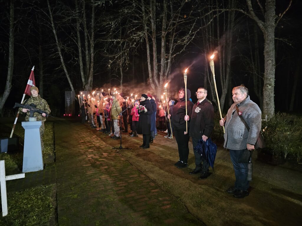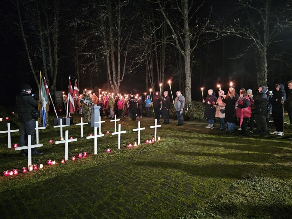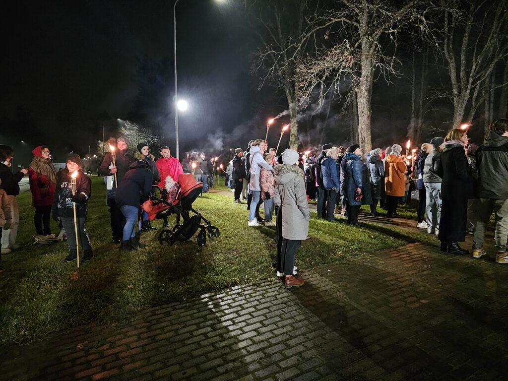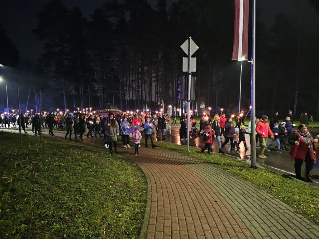 Ļaudis kuplā pulkā virzījās no baznīcas pa Raiņa un Rīgas ielām, uz brīdi apstājoties pie monumentālā Latvijas karoga Lugažu laukumā un Kārļa Ulmaņa pieminekļa. Pēc tam gājiena dalībnieki devās uz Latvijas atbrīvošanas cīņās kritušo Ziemeļvidzemes karavīru Brāļu kapiem.