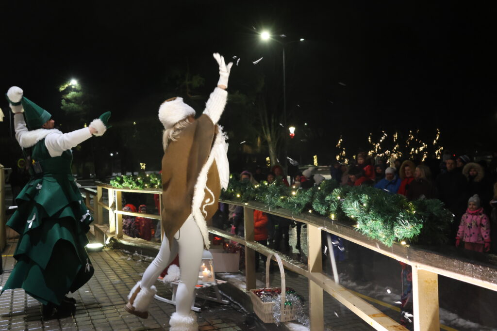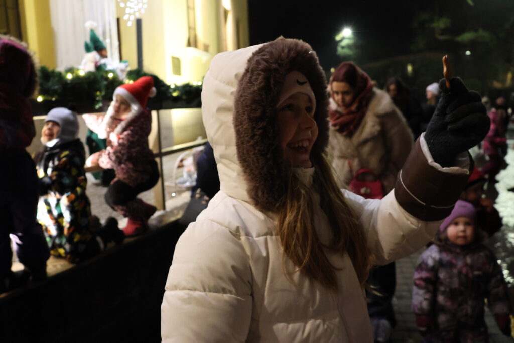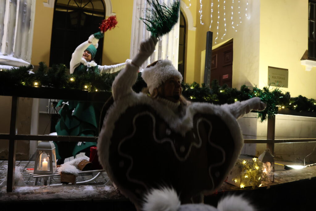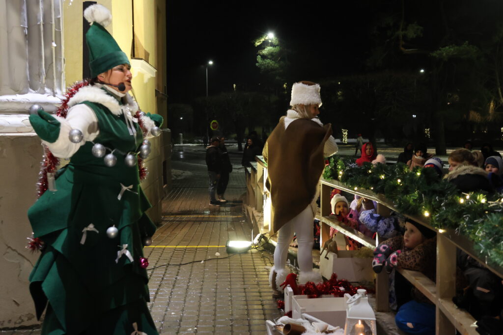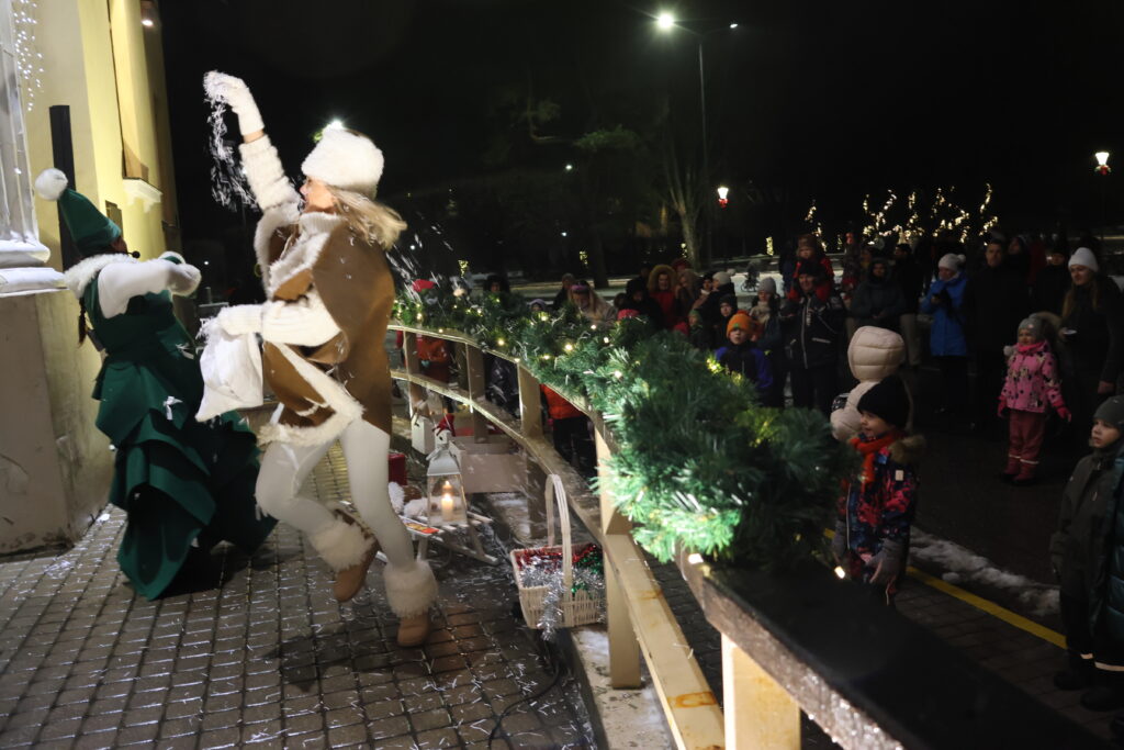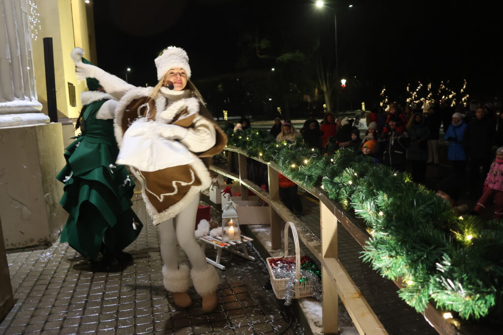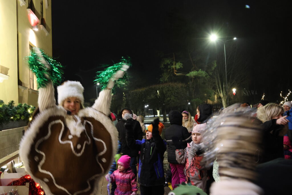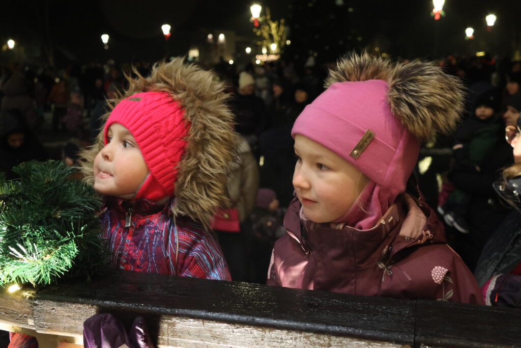 Piektdienas, 28. novembra, vakarā Valkā, Lugažu laukumā, notika pilsētas galvenās egles iedegšanas pasākums kopā ar divām pasakas varonēm ‒ Niķīgo eglīti un Svētku piparkūku.