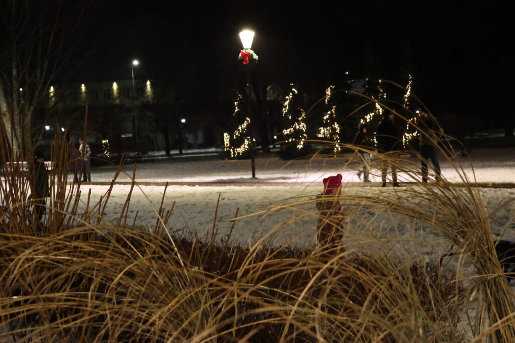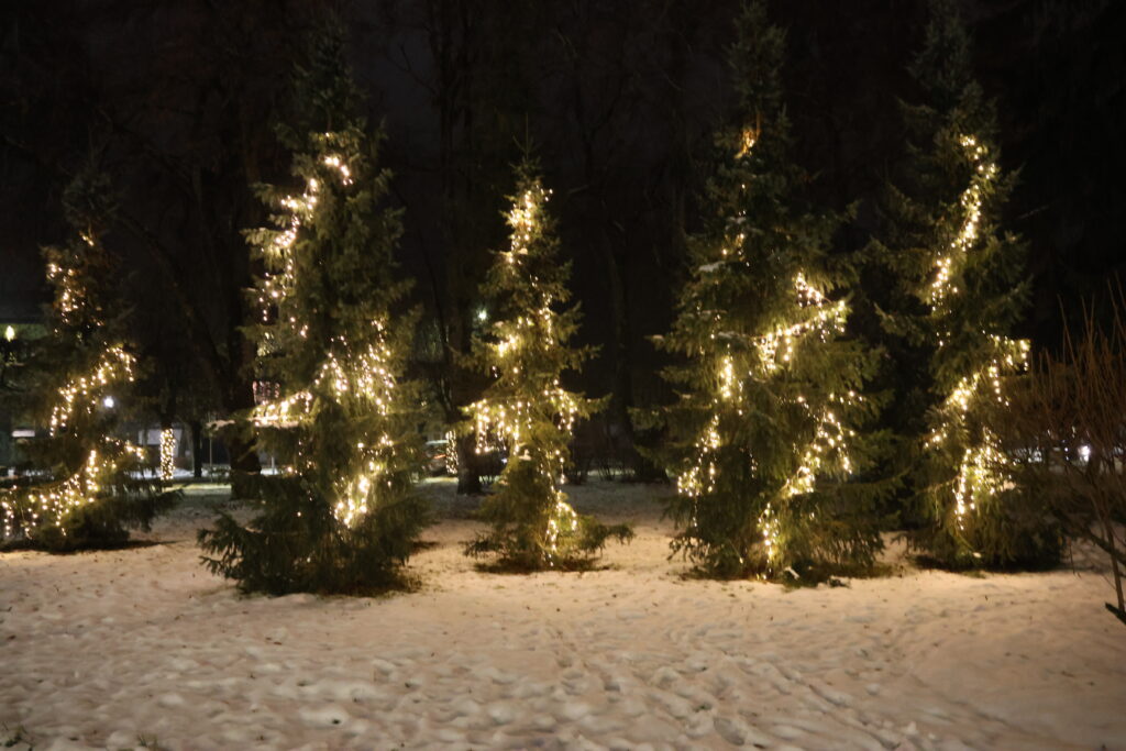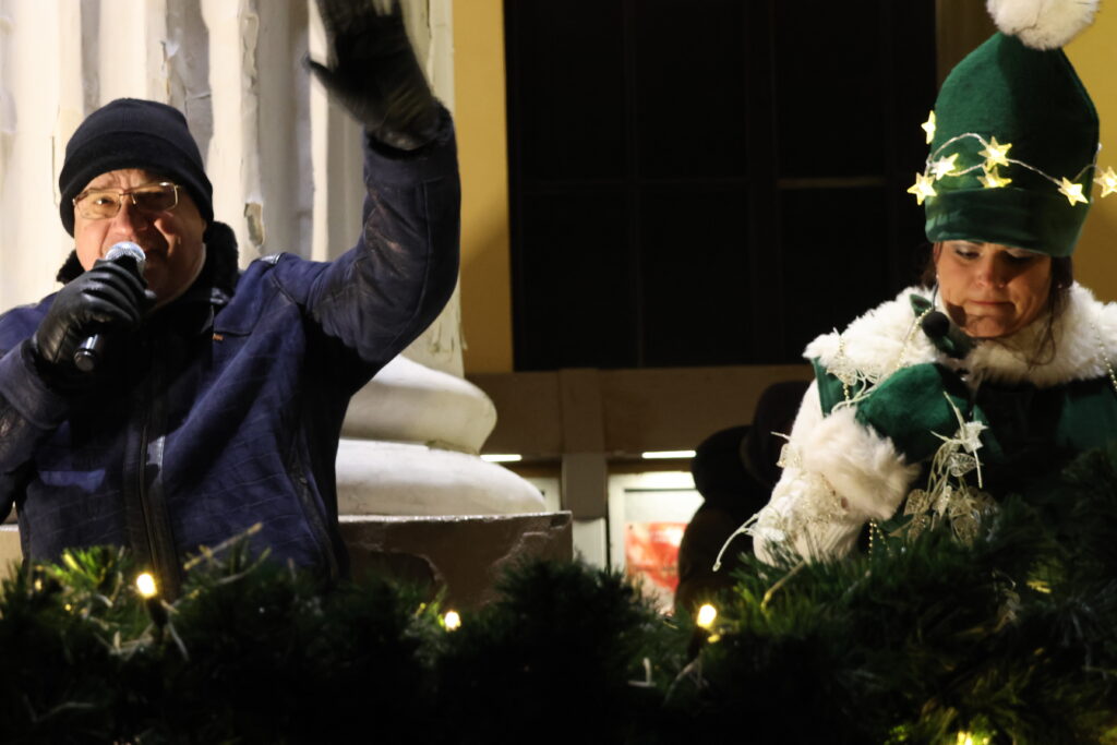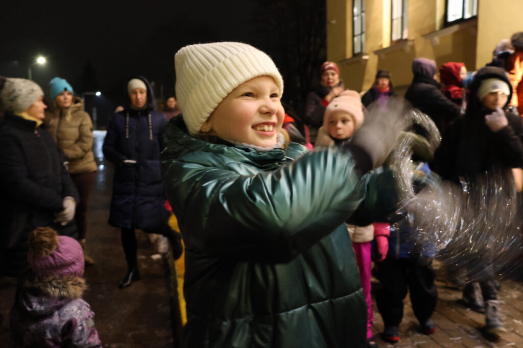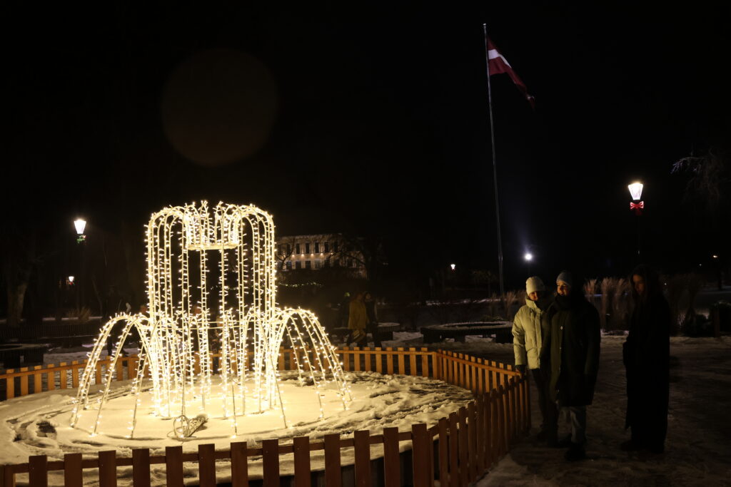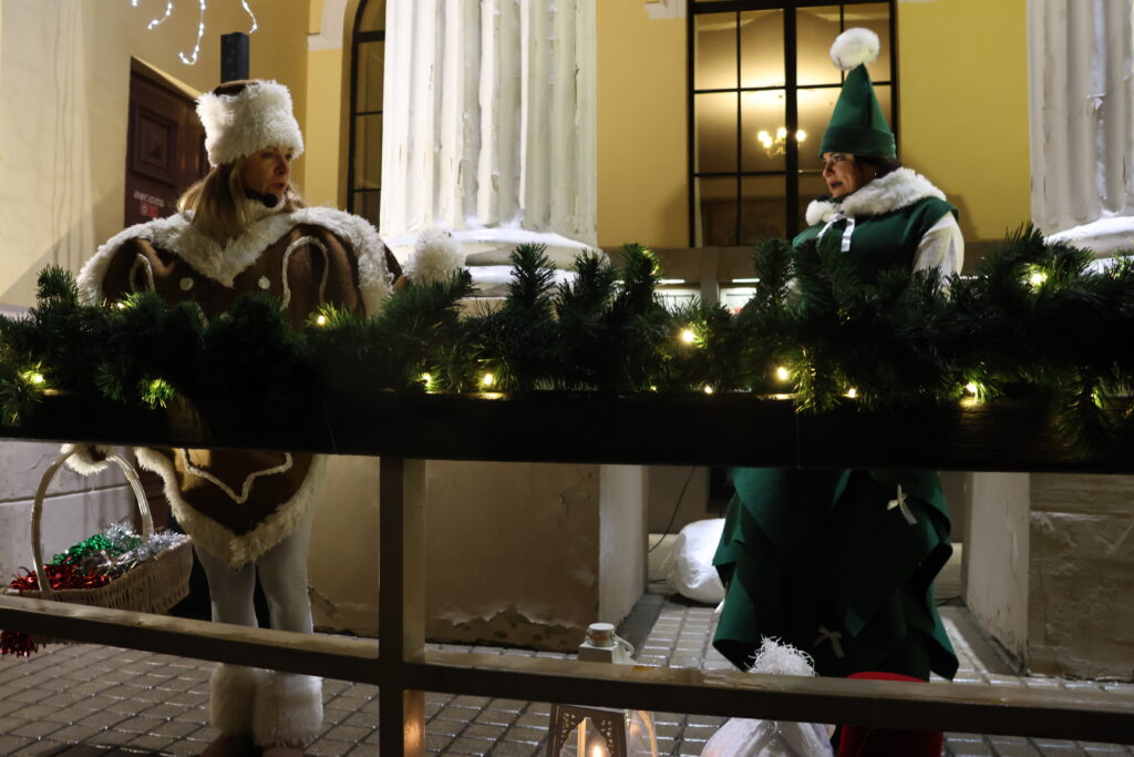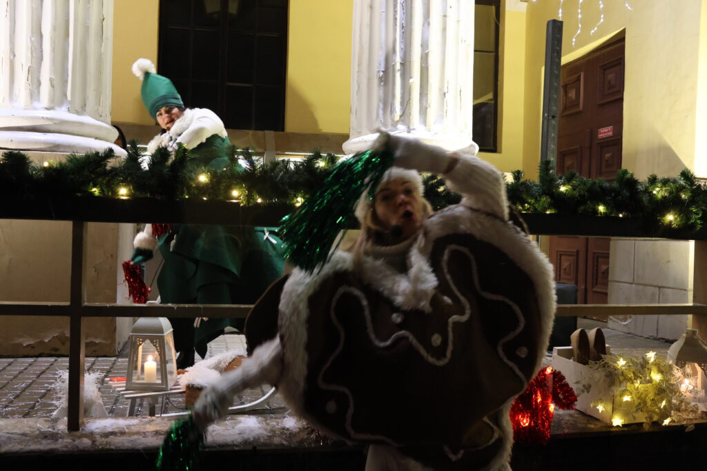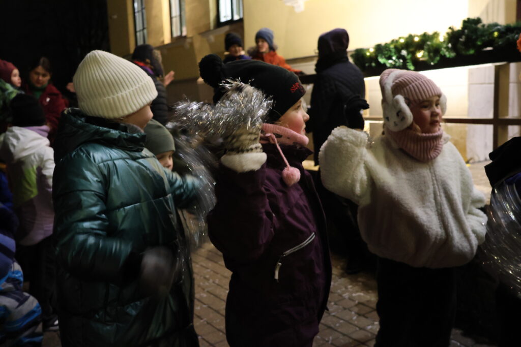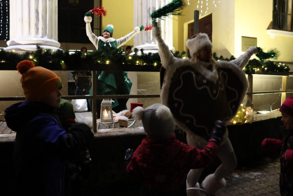Piektdienas, 28. novembra, vakarā Valkā, Lugažu laukumā, notika pilsētas galvenās egles iedegšanas pasākums kopā ar divām pasakas varonēm ‒ Niķīgo eglīti un Svētku piparkūku.