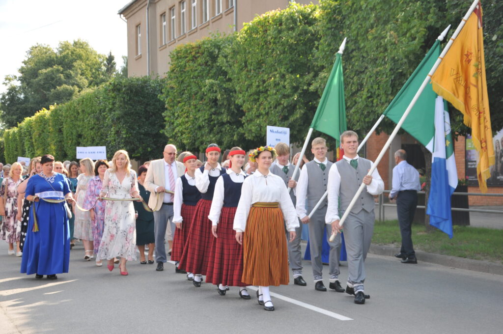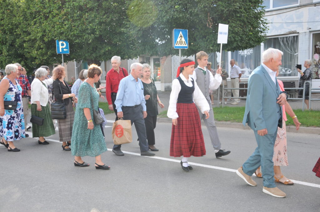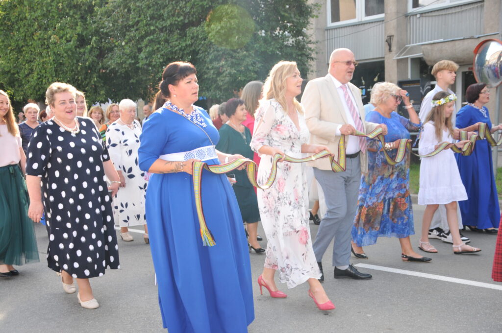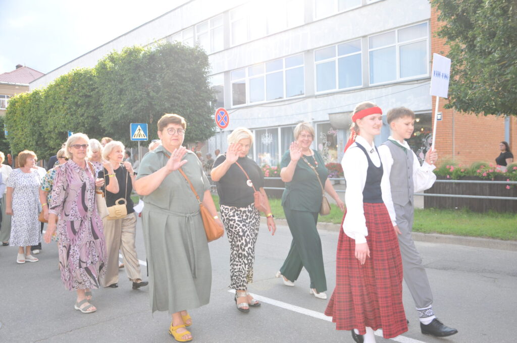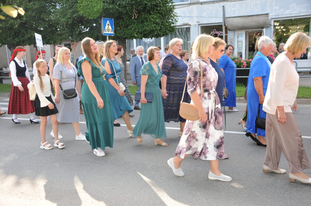 Sestdienas, 2. augusta, pievakarē, dziedot latviešu tautas dziesmas, Valkas Jāņa Cimzes ģimnāzijas 105. jubilejas svinību dalībnieki – esošie un bijušie pedagogi un absolventi – devās svētku gājienā pa Valkas pilsētas ielām.”