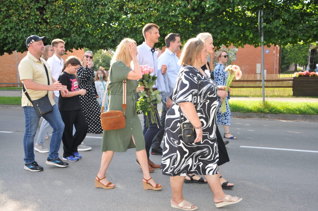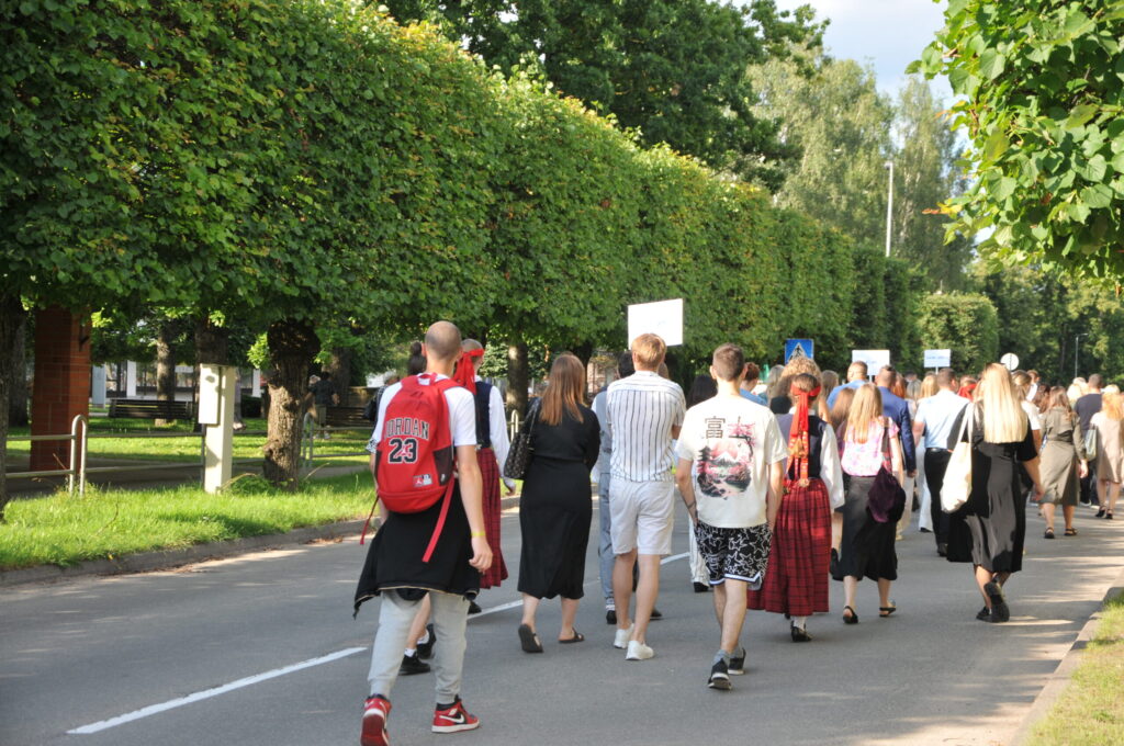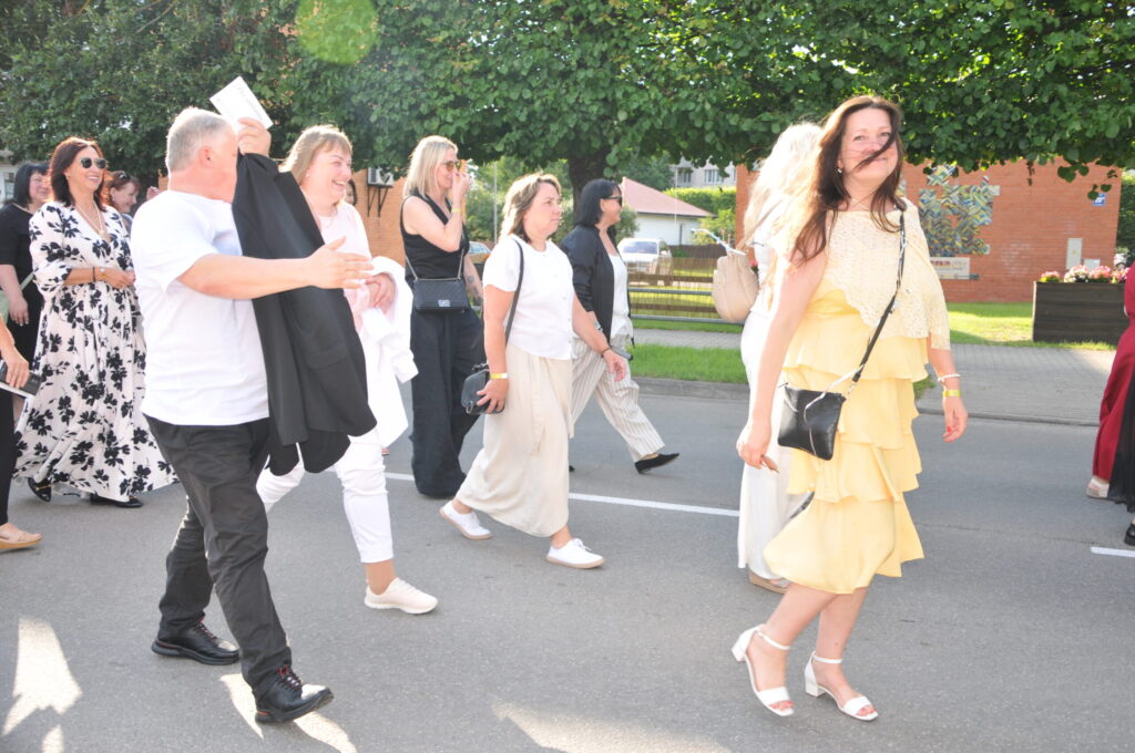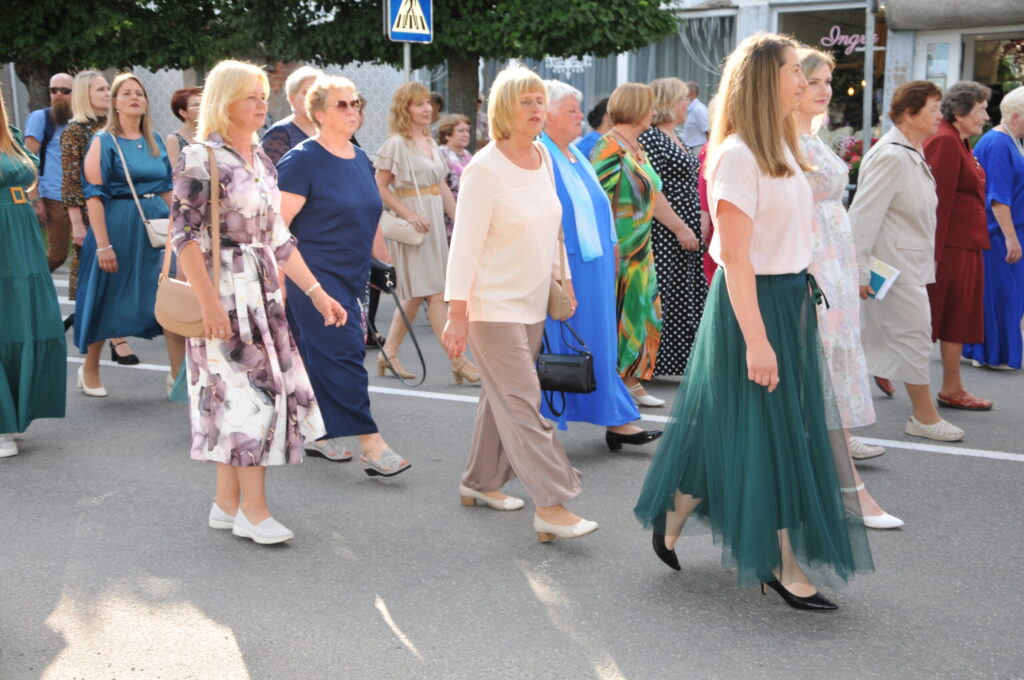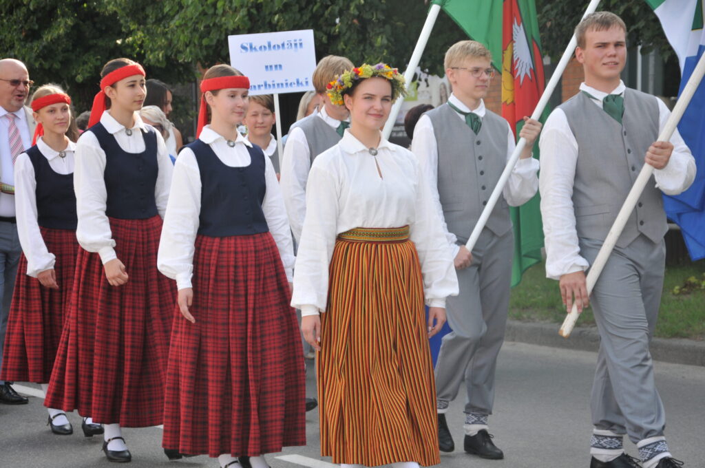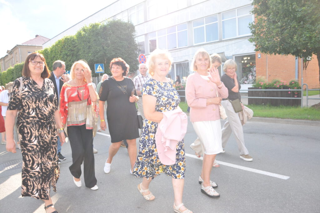 Sestdienas, 2. augusta, pievakarē, dziedot latviešu tautas dziesmas, Valkas Jāņa Cimzes ģimnāzijas 105. jubilejas svinību dalībnieki – esošie un bijušie pedagogi un absolventi – devās svētku gājienā pa Valkas pilsētas ielām.”