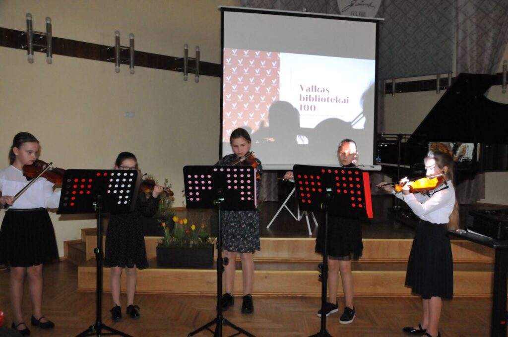 Piektdien, 21.aprīlī, J. Cimzes Valkas mūzikas skolā notika sirsnīgs un muzikāls Valkas novada centrālās bibliotēkas 100 gadu jubilejas svinību pasākums.