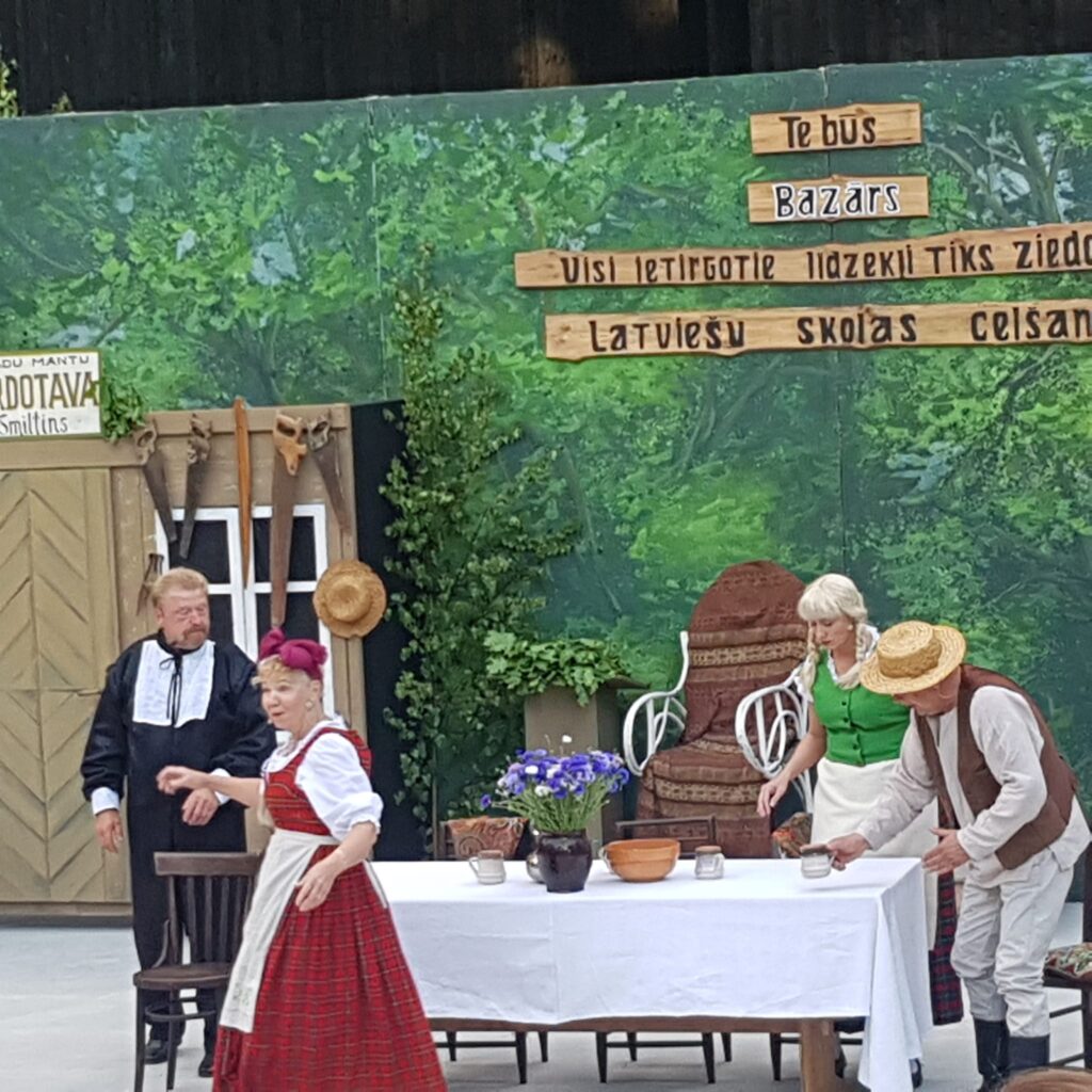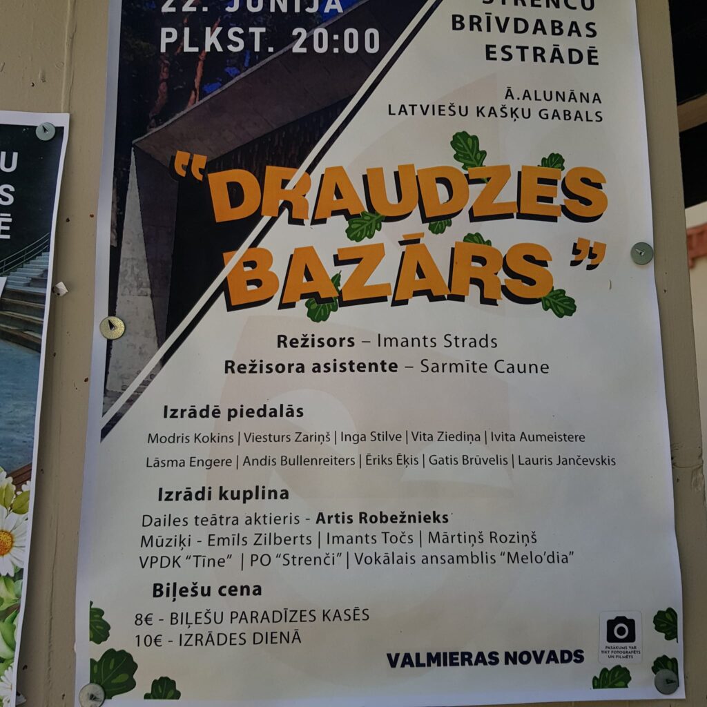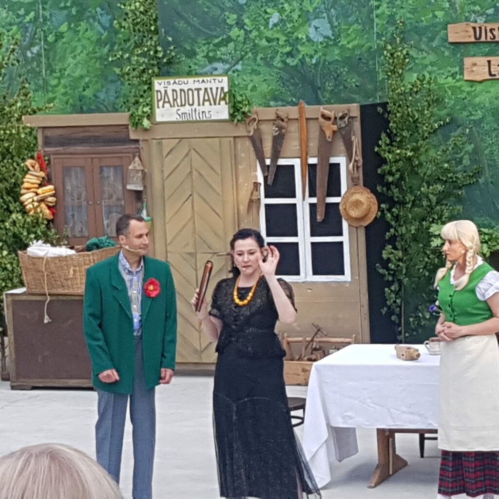 Trešdienas, 22.jūnija, vakarā jaunajā Strenču brīvdabas estrādē Valkas novada pašvaldības deputāts Viesturs Zariņš un divas pašvaldības speciālistes – Lāsma Engere un Ivita Aumeistere – piedalījās latviešu lugu meistara Ādolfa Alunāna kašķu gabala “Draudzes bazārs” iestudējuma pirmizrādē.