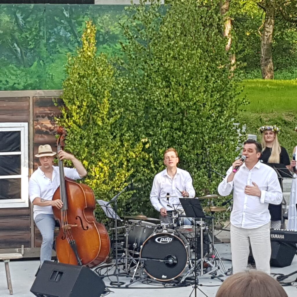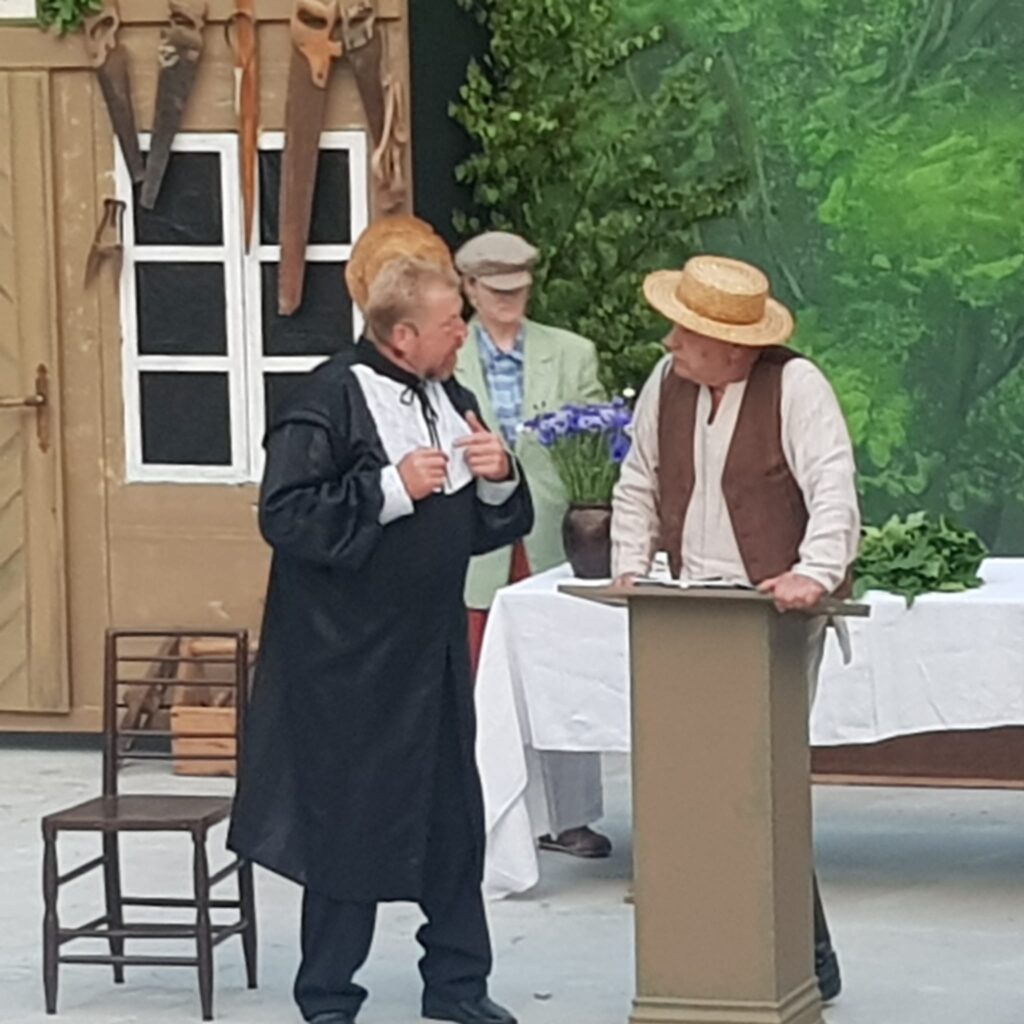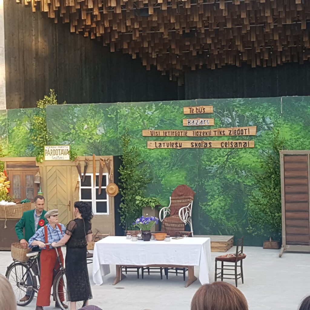 Trešdienas, 22.jūnija, vakarā jaunajā Strenču brīvdabas estrādē Valkas novada pašvaldības deputāts Viesturs Zariņš un divas pašvaldības speciālistes – Lāsma Engere un Ivita Aumeistere – piedalījās latviešu lugu meistara Ādolfa Alunāna kašķu gabala “Draudzes bazārs” iestudējuma pirmizrādē.