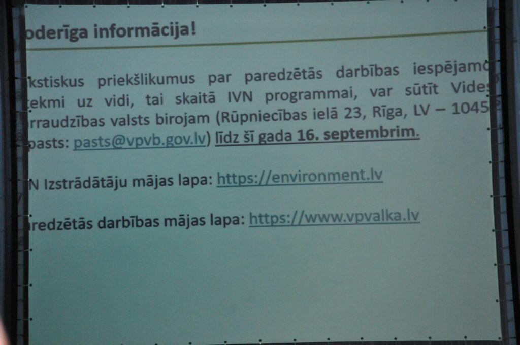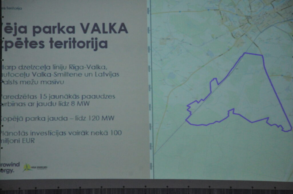 Ceturtdien, 5. septembrī, pulksten 18 Valkas pilsētas kultūras namā ieradās vairāk nekā 20 Valkas novada iedzīvotāji un Valkas novada pašvaldības priekšsēdētāja Gita Avote, viņas bijušais vietnieks, jaunais Saeimas deputāts Viesturs Zariņš, lai gandrīz divu stundu ilgā sapulcē noklausītos un diskutētu par ieceri Valkas pagasta teritorijā būvēt vēja parku “Valka”. Sapulcē piedalījās un informāciju par šīs ieceres attīstītāju un pašu ieceri izklāstīja, kā arī uz iedzīvotāju jautājumiem atbildēja SIA “EWE Neue Energien 1″ izpilddirektors Artūrs Toms Plešs. Savukārt par ietekmes uz vidi novērtējuma procedūru detalizēti izskaidroja un arī uz visnotaļ asiem jautājumiem atbildēja Estonian, Latvian&Lithuanian Environment konsultants Oskars Beikulis. Vairāk par šo tikšanos lasiet otrdien, 10. septembra, laikrakstā “Ziemeļlatvija”.