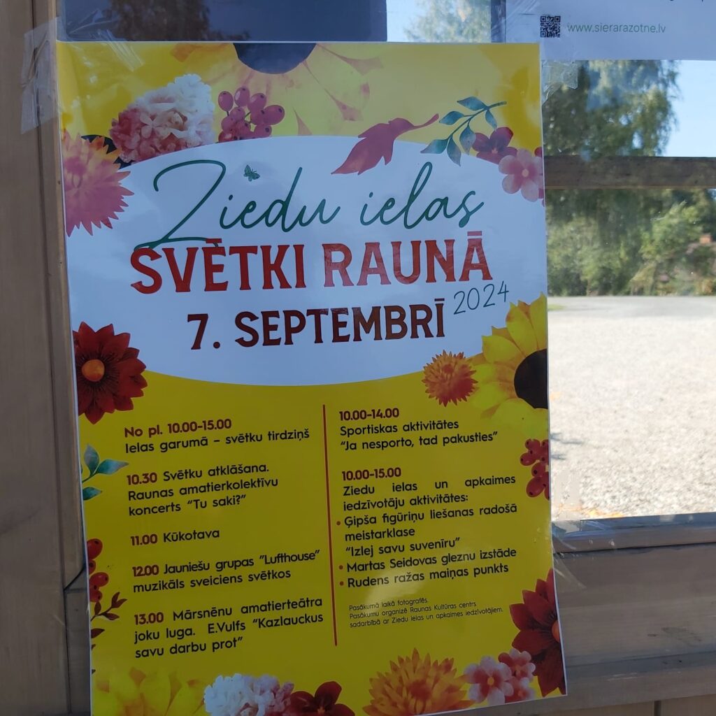 Sestdien, 7. septembrī, Raunā norisinājās Ziedu ielas svētki. Dienas garumā Ziedu ielā bija svētku tirdziņš un kūkotava. Pasākumā bija plaša kultūras programma, kurā piedalījās Raunas amatierkolektīvs ar koncertu “Tu saki?”, jauniešu grupa “Lufthous” ar muzikālu sveicienu svētkos. Svētkos bija arī sportiskas aktivitātes “Ja nesporto, tad pakusties”, radošās darbnīcās un Martas Seidovas gleznu izstāde. Bija iespēja noskatīties Mārsnēnu amatierteātra joku lugu “Kazlaucks savu darbu prot” (E.Vulfs). Darbojās rudens ražas maiņas punkts.