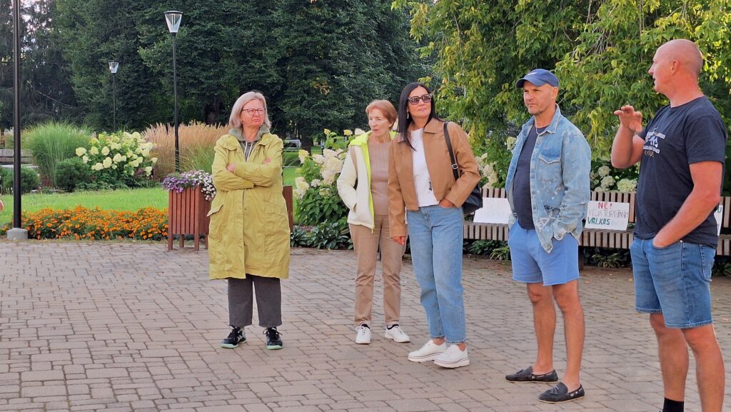 Diskusijas laikā daļa apmeklētāju devās ārā, lai piedalītos zibakcijā un iestātos pret vēja parku ierīkošanu Valkas novadā un visā Latvijā.