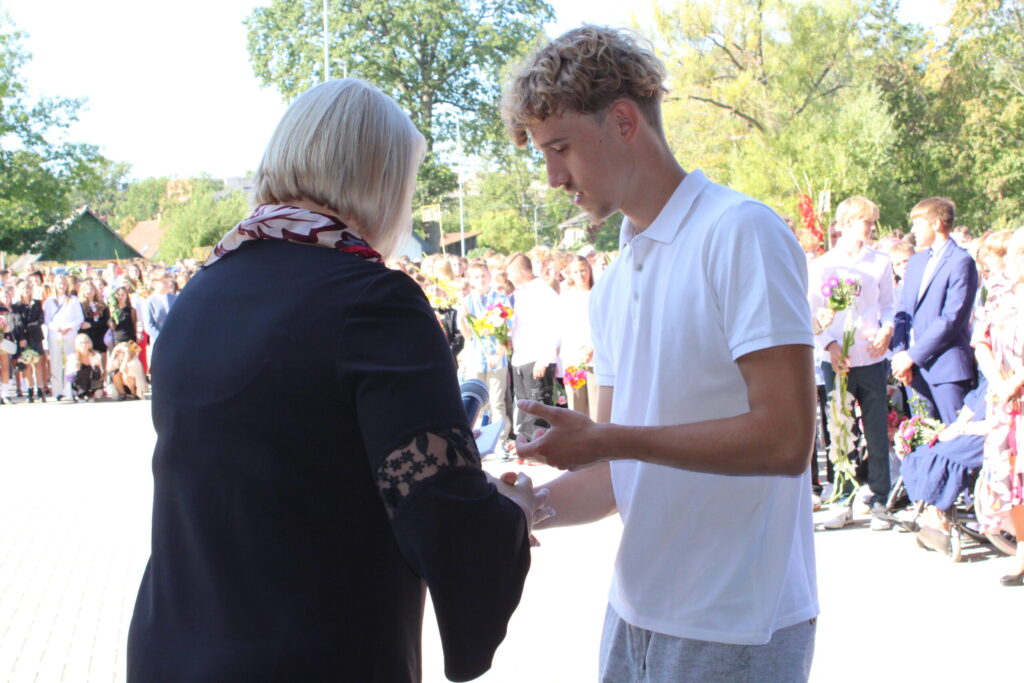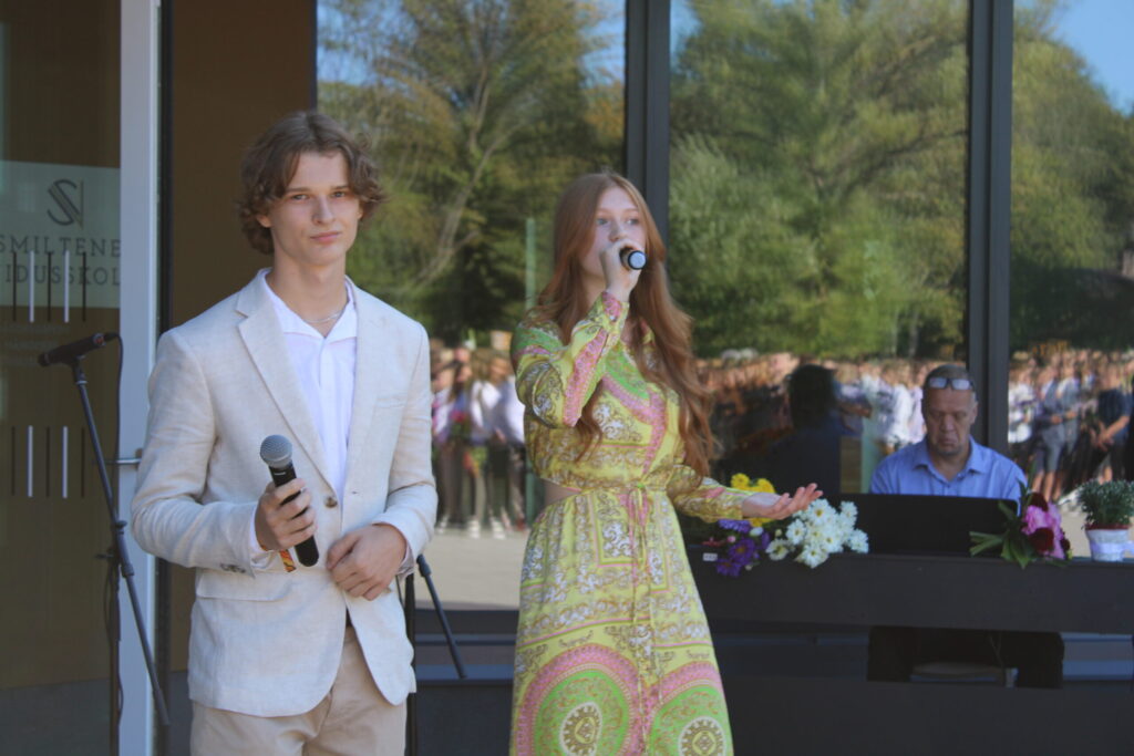 Pirmdien, 2. septembrī, Zinību dienu svinēja arī Smiltenes vidusskolā. 4. – 12. klašu skolēni un skolotāji jaunā mācību gada pirmo dienu sagaidīja pie skolas ēkas Dakteru ielā.