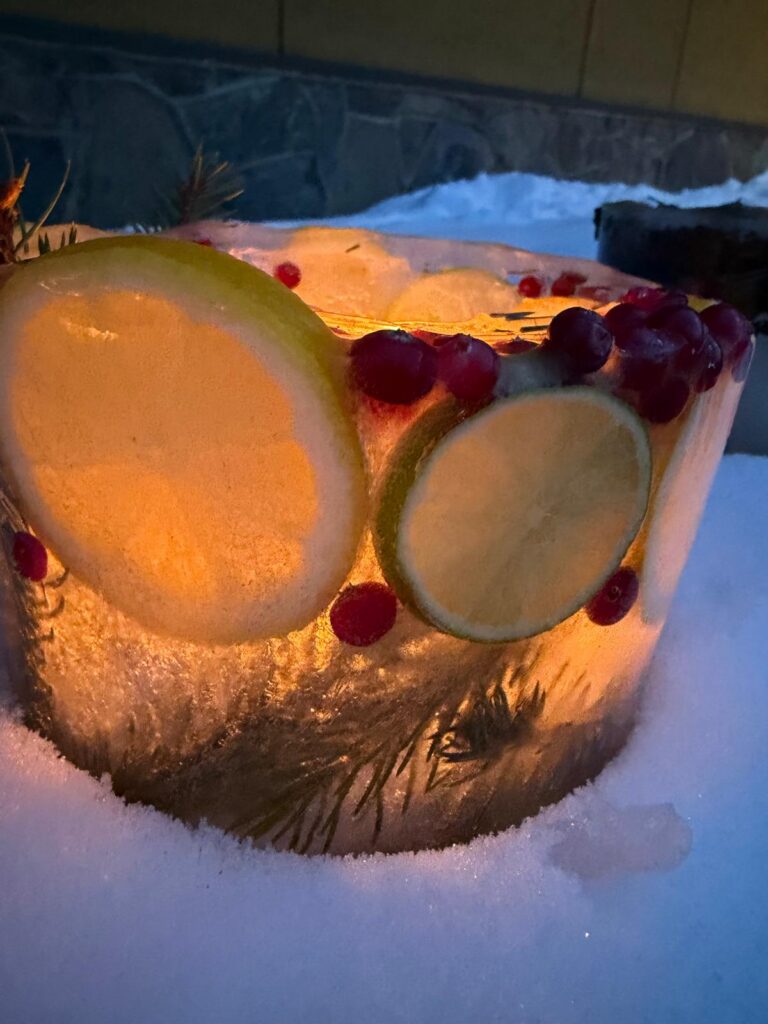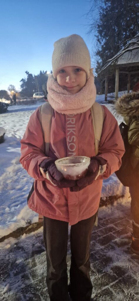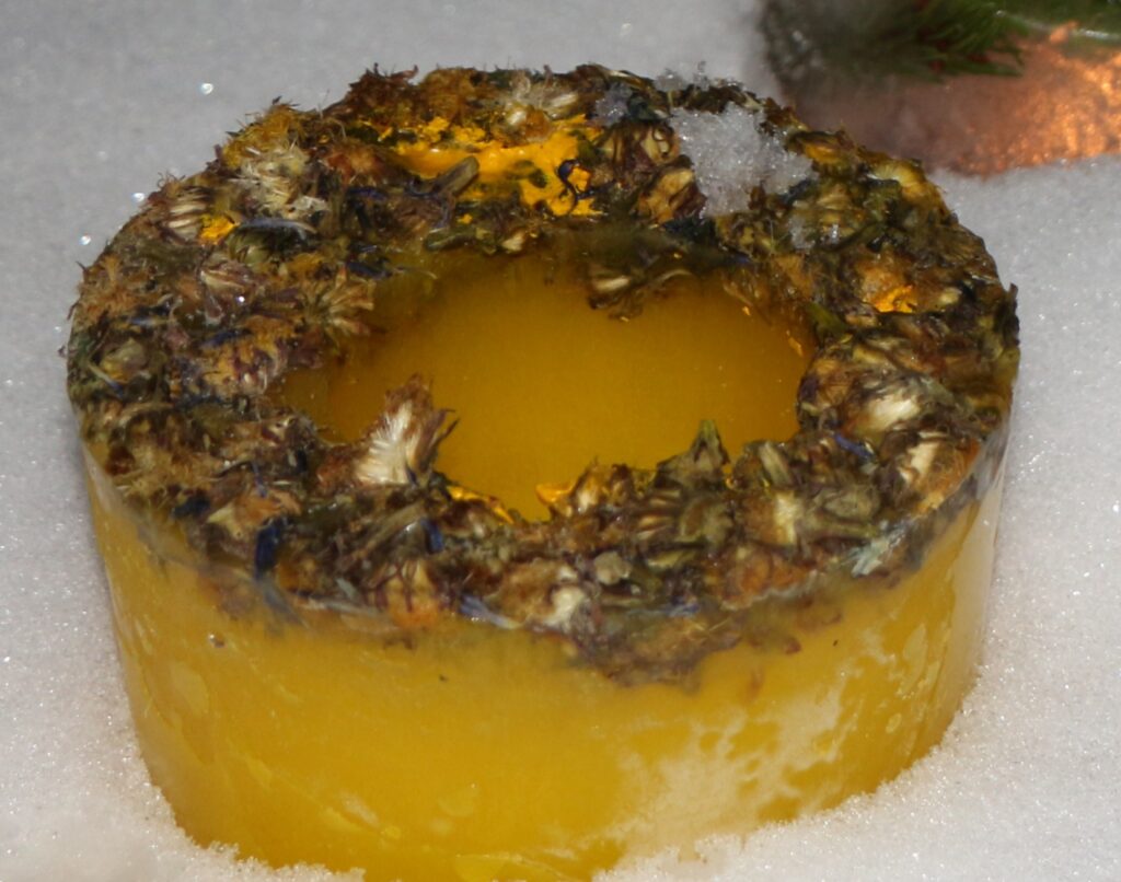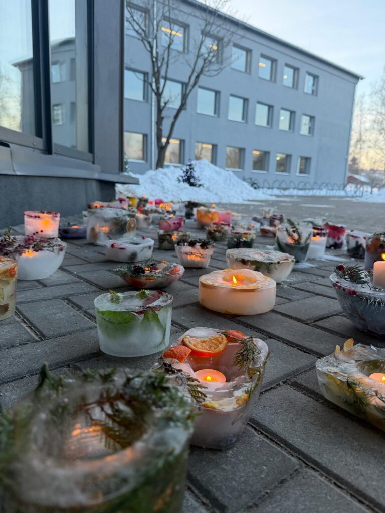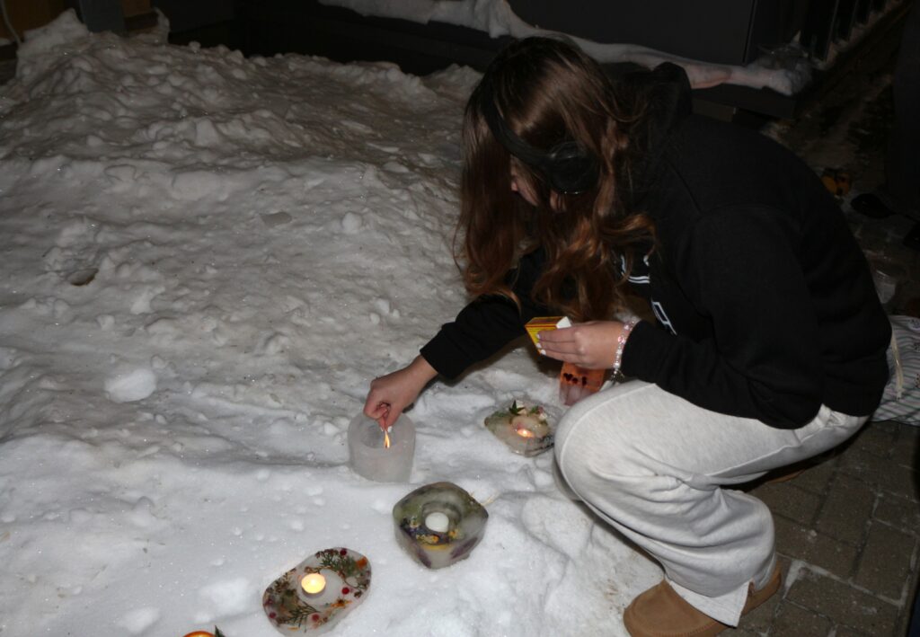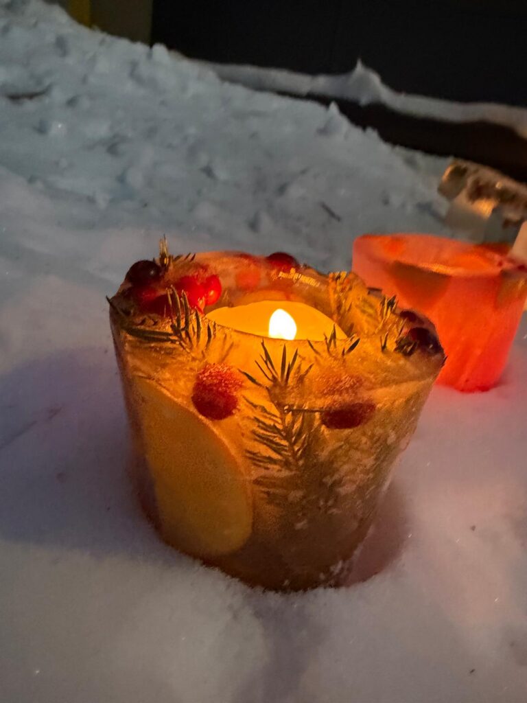 Ledus svecītēs vizuļo ogas, sūnas un koku zariņi, atgādinot par latvieša saikni ar dabu un mūsu senču gara spēku, dzīves gudrību, mūsu dziesmām, valodu, tradīcijām un dvēseles bagātību, kas turpinās bērnos un mazbērnos.