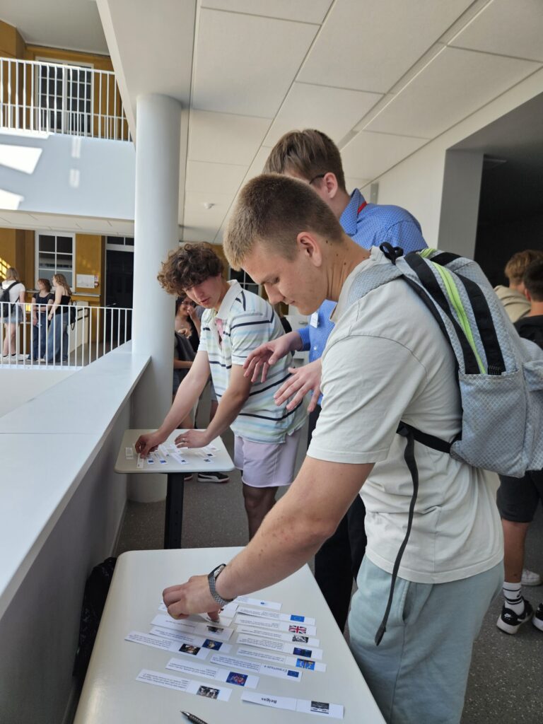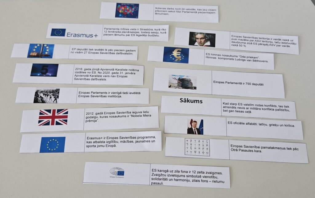 Skolēniem, izspēlējot organizatoru sagatavoto domino, pasākuma laikā tika arī dota iespēja pārbaudīt zināšanas par Eiropas Savienību, tās organizācijām un Eiropas Parlamentu.