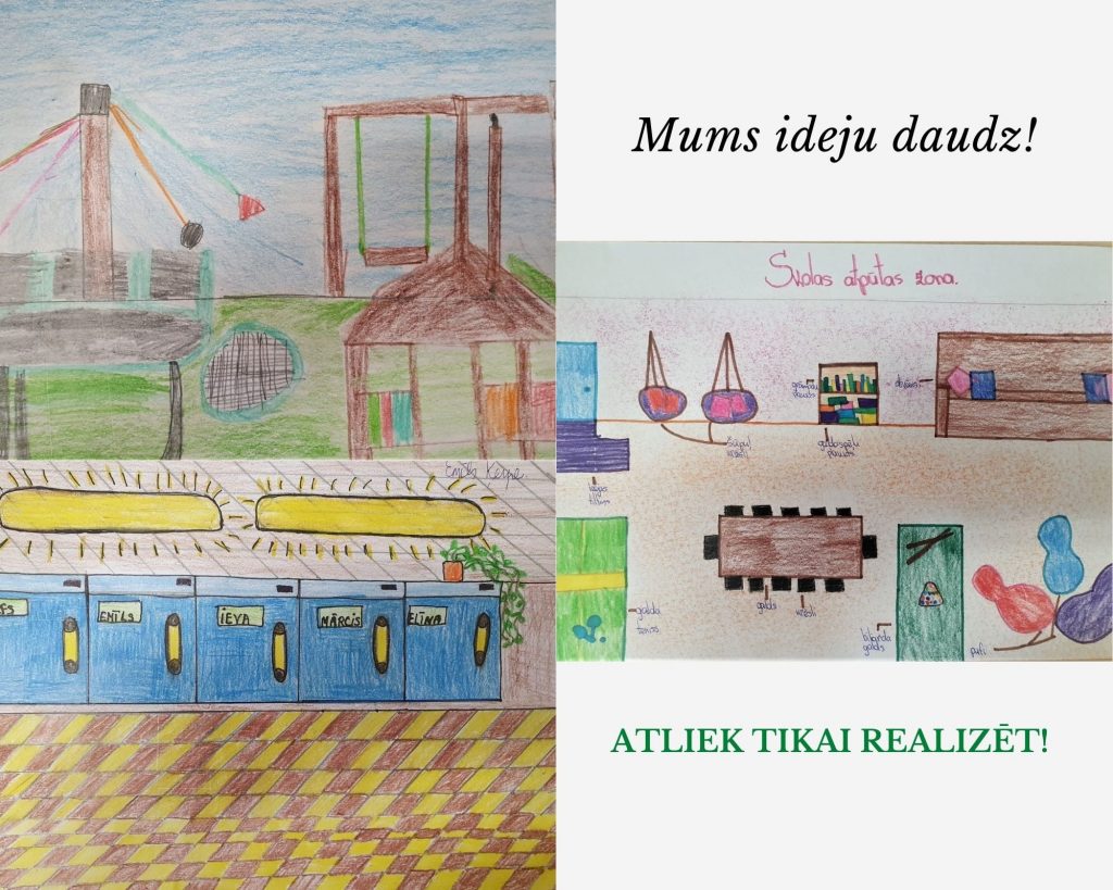 Bērni rosina ierīkot atpūtas un rotaļu laukumu pie skolas, iegādāties skapīšus katram skolēnam skolas garderobē un izveidot spēļu un rotaļu telpu skolā, kur varētu spēlēt biljardu, galda tenisu, dažādas galda spēles, pasēdēt un atpūsties uz pufiem vai dīvānā.