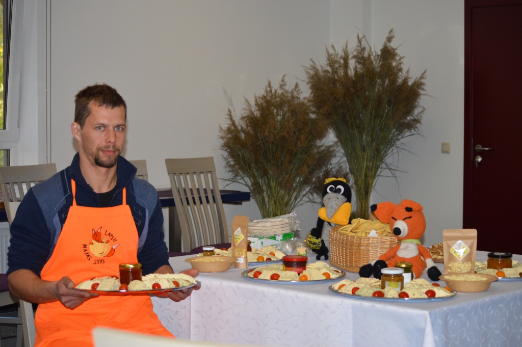 Uz “Meistara dienu” Smiltenes tehnikumā “Siera klubs” uzaicināja Smiltenes pusē, iespējams, mazāk zināmā Lapsu mājas siera ražotāju Jāni Lapsu un viņa palīdzi un draudzeni Sabīni Vasku no Ogres novada. Viņi degustācijai atveda deviņas no vairāk nekā 20 sava siera šķirnēm.