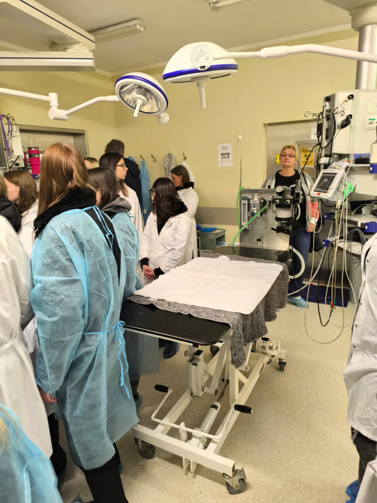 Klīnikas vadītāja Elīna Kaņka mums izrādīja klīnikas telpas un pastāstīja jauniešiem par klīnikas darbību.
