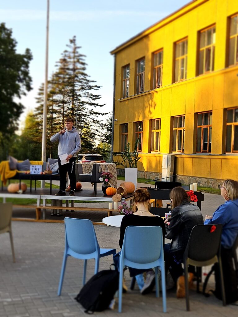 “Literārā kafejnīca” vienmēr atnāk ar kādu skaistu pārsteigumu un ilgi glabātu noslēpumu. To piedzīvojām arī šoreiz, klausoties 12.klases skolēna Dāvja Grabovska sacerēto dzeju, kā arī, baudot, kā sirdsbalsī saplūst dzeja un mūzika.