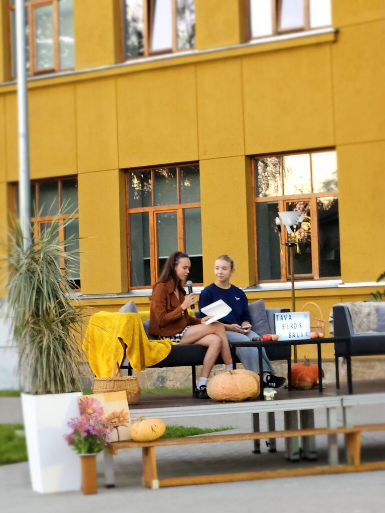 “Literārā kafejnīca” ļāva skolas pagalmā satikt sirdsbalsī Raini, Māru Zālīti, Imantu Ziedoni, Ojāru Vācieti, Knutu Skujenieku, Aleksandru Čaku, Mārtiņu Vērdiņu, Noru Ikstenu, Guntaru Raču, Ausekli un ne tikai…