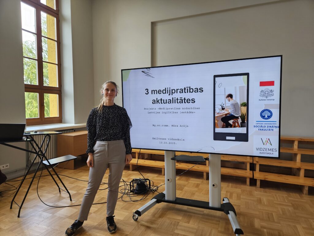 12.oktobrī Smiltenes vidusskolā notika medijvadības nodarbība “3 medijpratības aktualitātes”, ko vadīja Vidzemes Augstskolas Mediju un komunikāciju studiju virziena direktore mg.sc.comm. Māra Arāja.