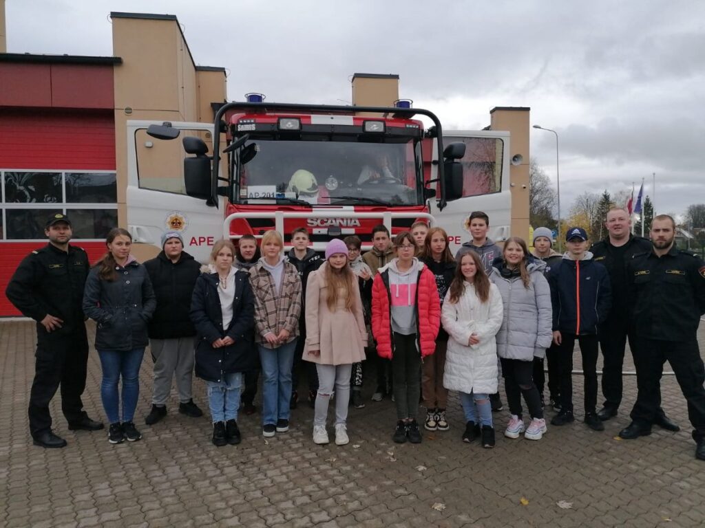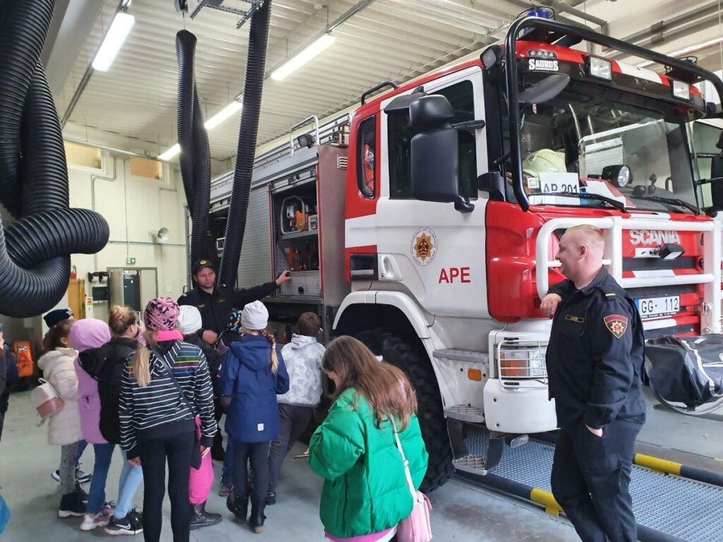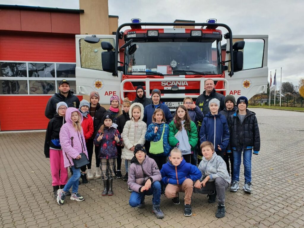 Karjeras nedēļas ietvaros mūsu skolas 4., 7. un 8. klases skolēni devās uz VUGD Apes posteni, lai iepazītu ugunsdzēsēja un glābēja profesiju. Posteņa priekšnieks M.Jurka kopā ar saviem darbiniekiem pastāstīja par depo vēsturi, parādīja ēkas telpas, rādīja dažādas fotogrāfijas no viņu darba, informēja, kā viņi saņem ziņas par nelaimes gadījumiem un kā rīkojas tālāk. Uzzināja, kā var kļūt par šīs profesijas pārstāvi, kādi ir ugunsdzēsēja un glābēja pienākumi, izpētīja viņu auto, ar ko tā aprīkota. Bija iespēja pamēģināt noturēt ūdens šļūteni, kas nemaz nebija viegli. 4.klasei gan tas īpaši patika! Vēl daži no skolēniem notestēja skābekļa aparātu.