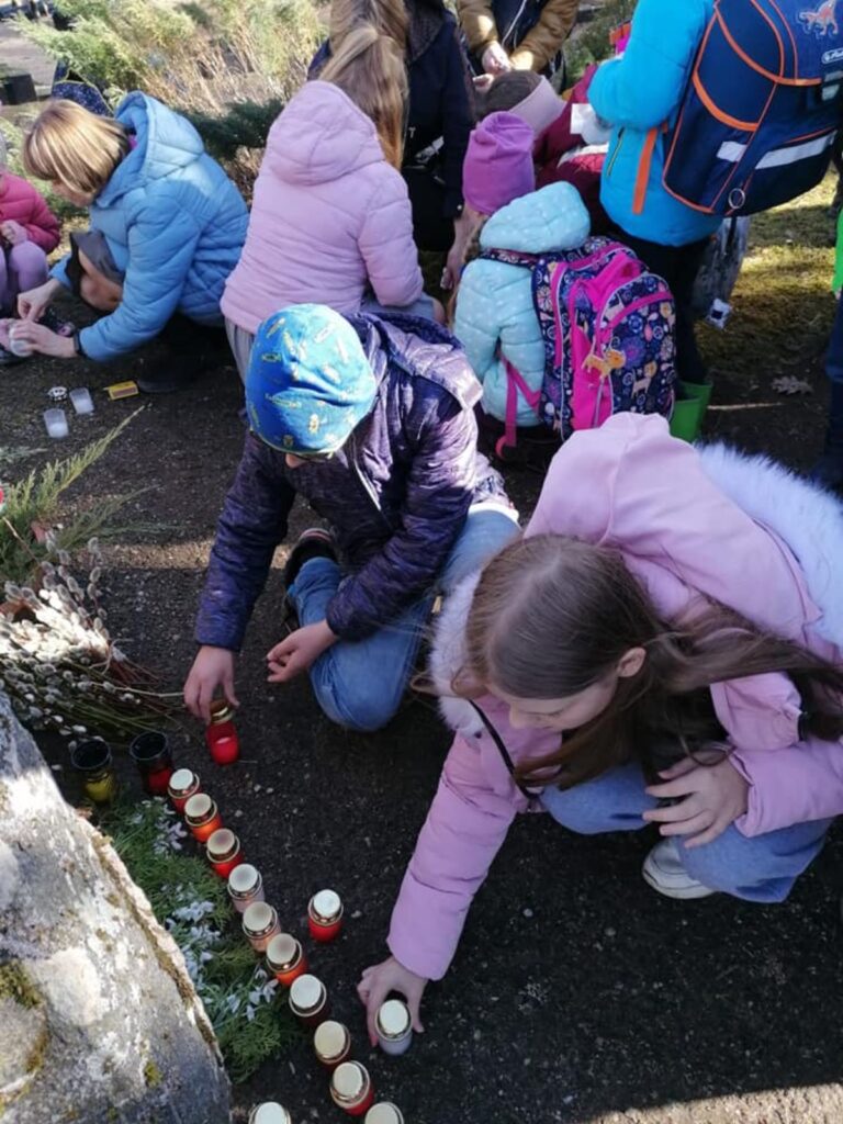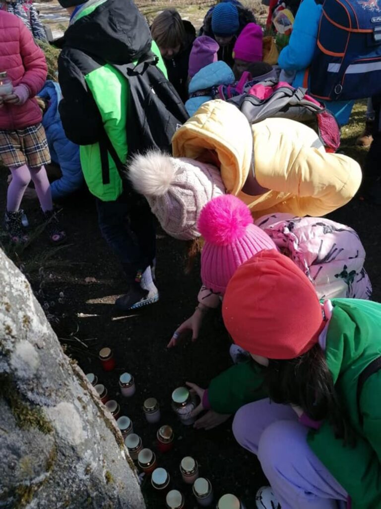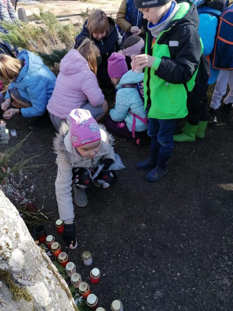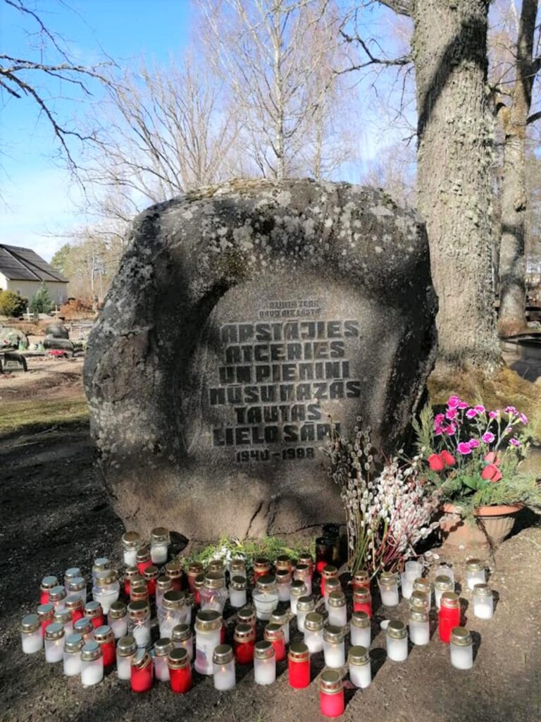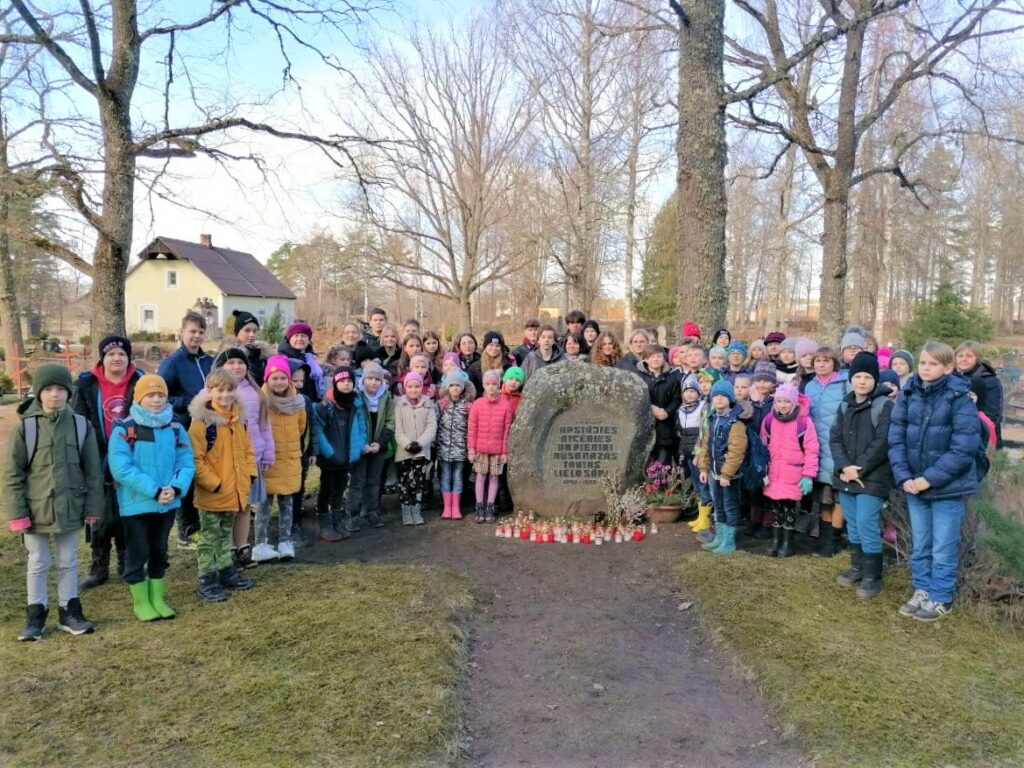 Pēc vēstures skolotājas Līgas Bukovskas uzrunas un klusuma brīža pie piemiņas akmens skolēni nolika ziedus, pūpolus un aizdedza svecītes. Mēs atceramies un pieminam ne tikai pašu traģisko notikumu, bet cilvēku mīlestību pret savu zemi – Latviju, spītu izturēt un atgriezties mājās!