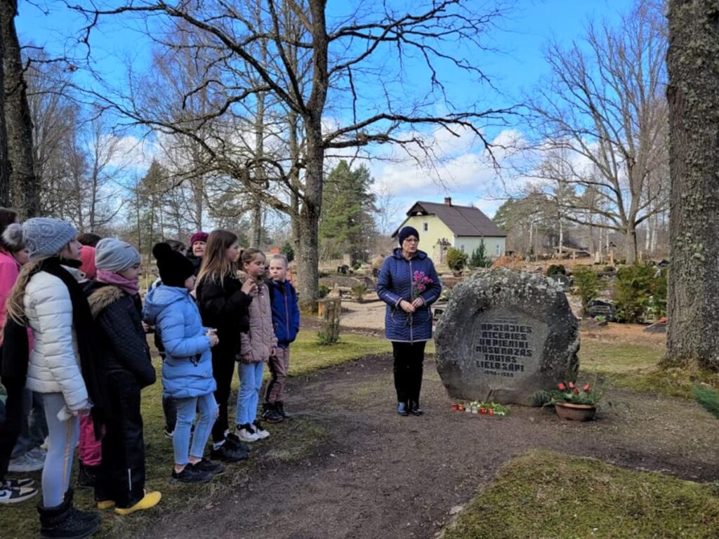 24.martā Ojāra Vācieša Gaujienas pamatskolas skolēni un skolotāji devās pie piemiņas akmens deportētajiem Gaujienas kapsētā.