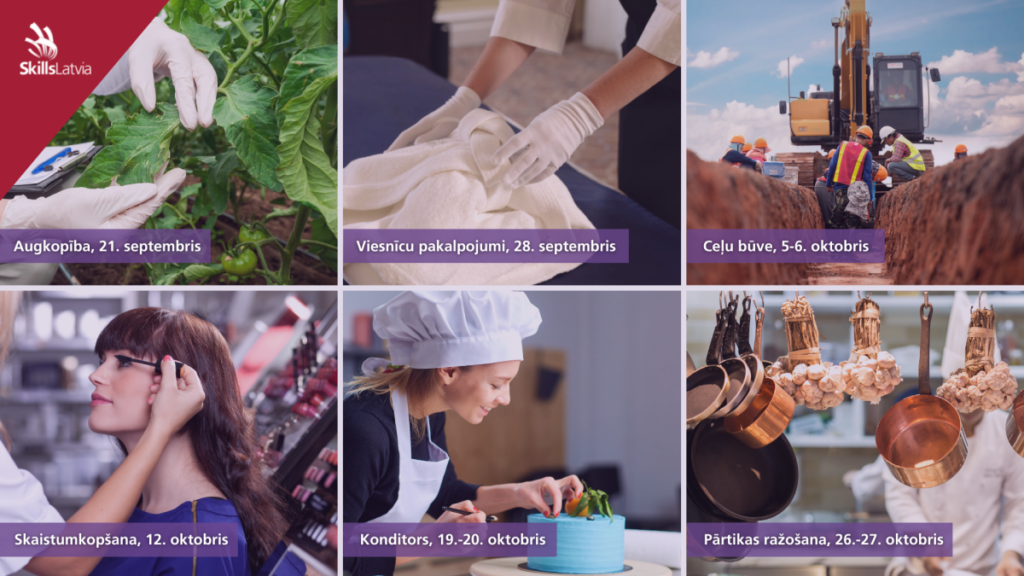 Oktobrī turpināsies trīs nozaru konkursi: 12. oktobrī Jēkabpils Agrobiznesa koledžas Barkavas struktūrvienībā norisināsies nozares prasmju konkurss Skaistumkopšana, bet no 19. līdz 20. oktobrim Liepājas Valsts tehnikumā jaunieši sacentīsies nozares prasmju konkursā Konditors. Savukārt no 26. līdz 27. oktobrim Rēzeknes tehnikumā notiks konkurss Pārtikas ražošana. Plašāka informācija par šiem konkursiem vēl sekos.