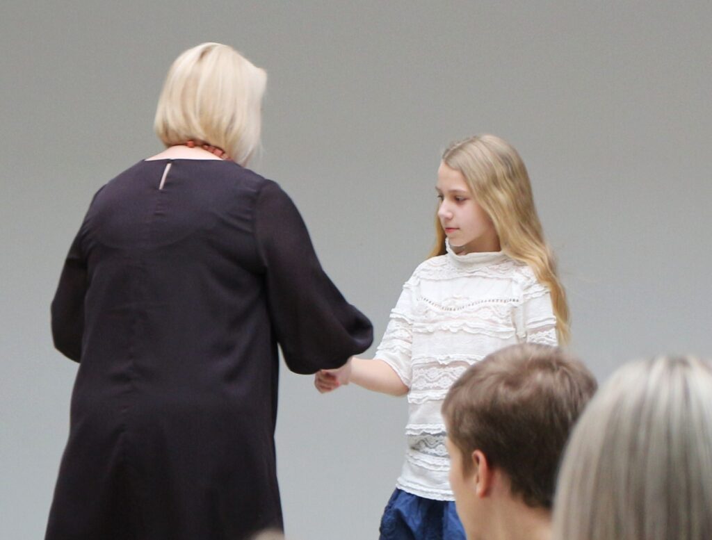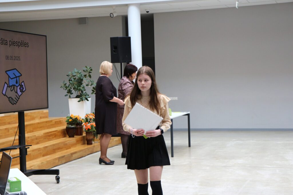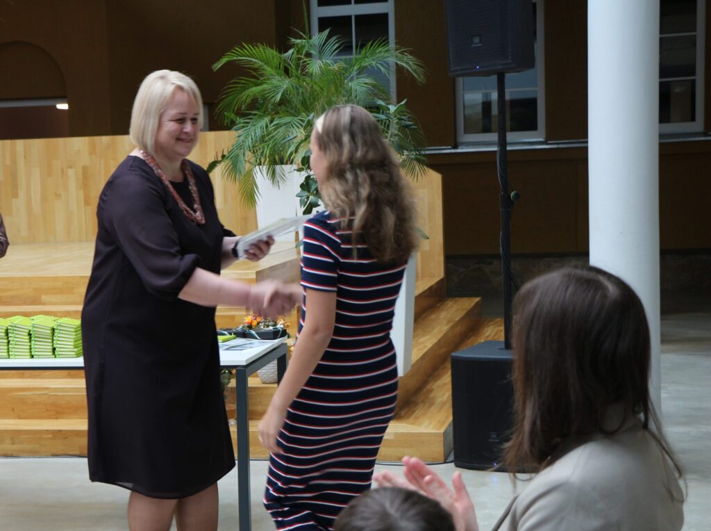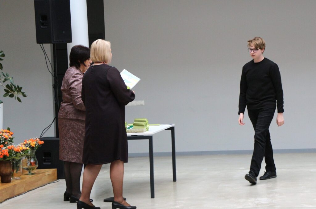 Svinīgajā pasākumā tika godinātas skolotājas, kuras par nozīmīgu ieguldījumu izglītības jomā saņēma Izglītības un zinātnes ministrijas Atzinības / Pateicības rakstus, – direktores vietniece Inese Raiskuma, skolotājas Aiga Sorokina, Antra Alksne un Tatjana Vovere.