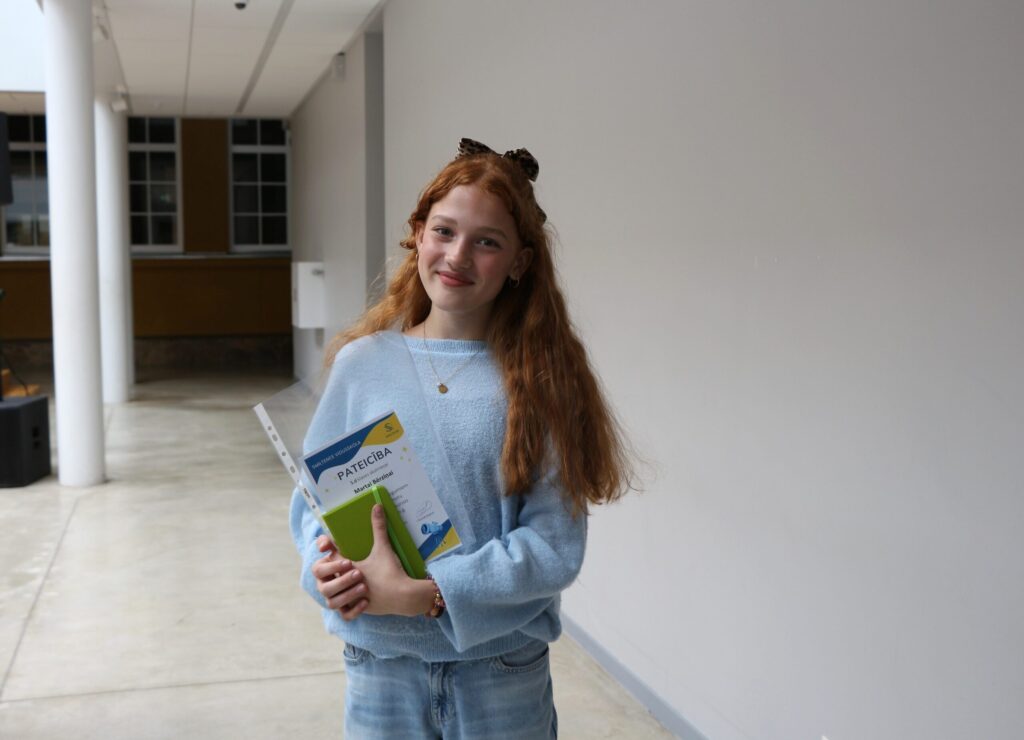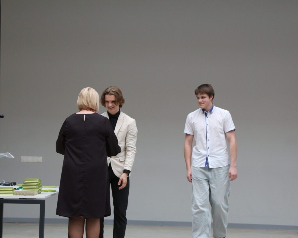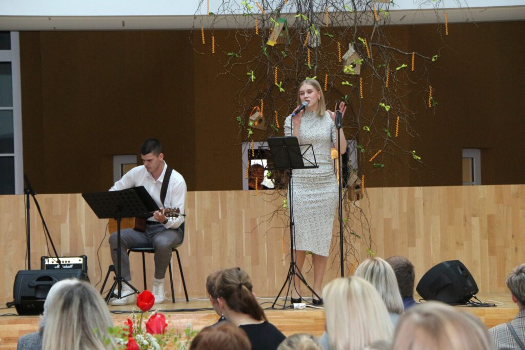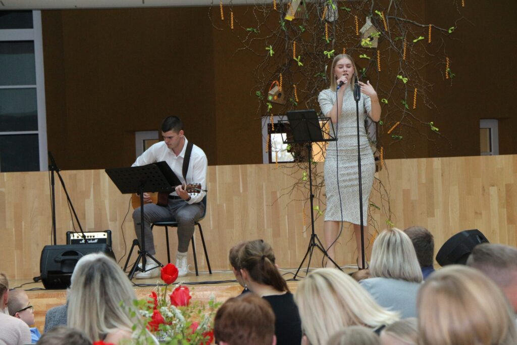 Olimpiāžu dalībniekus, viņu vecākus un skolotājus ar muzikālu sveicienu sumināja Smiltenes vidusskolas absolventi Evelīna Ance Bormane un Niks Lārmanis.