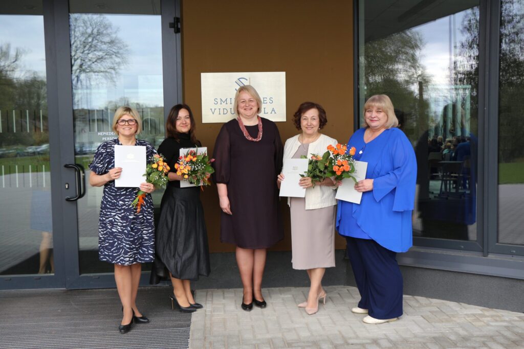 Skolotājas Solvita Posse, Eva Uldriķe, Anžela Mālkalne, Iveta Geidāne un Sanita Briede par nesavtīgo un radošo skolēnu izaugsmē ieguldīto darbu saņēma Smiltenes vidusskolas Atzinības rakstus.