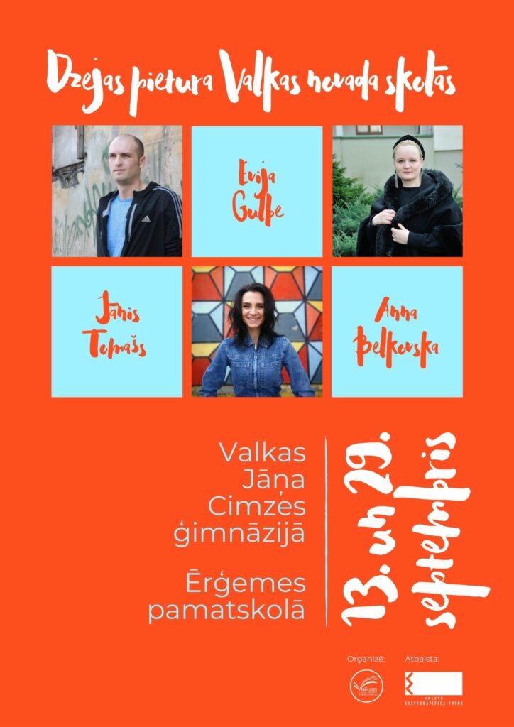 Lai popularizētu Dzejas dienu tradīciju un dzeju, kā vienu no mākslas izpausmes formām un būtisku kultūras daļu bērnu un jauniešu vidū, septembrī Valkas novada skolās notiks tikšanās ar dzejniekiem pasākumā “Dzejas pietura”. Tā laikā dzejnieki skolēnus iepazīstinās ar jaunāko savā daiļradē un aktuālo dzejas pasaulē. Neilgi pēc skolas sākšanās – 13. septembrī Valkas Jāņa Cimzes ģimnāzijā un Ērģemes pamatskolā viesosies dzejnieki Jānis Tomašs un Anna Belkovska.