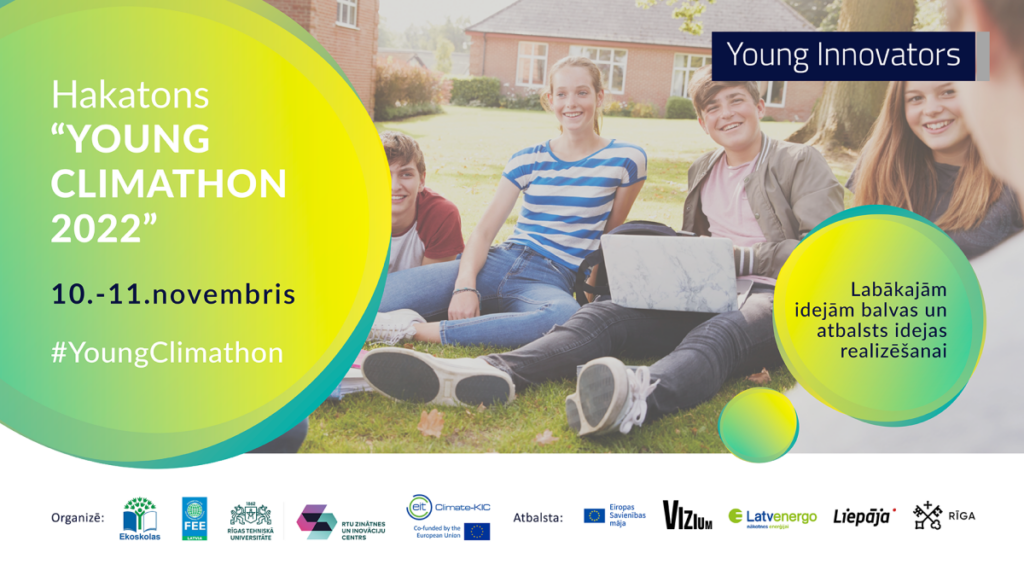 10.un 11. novembrī notiks hakatons «Young Climathon 2022», kurā Latvijas ekoskolu skolēni meklēs un piedāvās risinājumus aktuālām klimata un vides problēmām pilsētvidē. Pirms hakatona – 19. oktobrī un 2. novembrī – ikviens interesents aicināts piedalīties pasākumus, iepazīstot ideācijas noslēpumus, zaļās enerģijas un pilsētu tēmas.